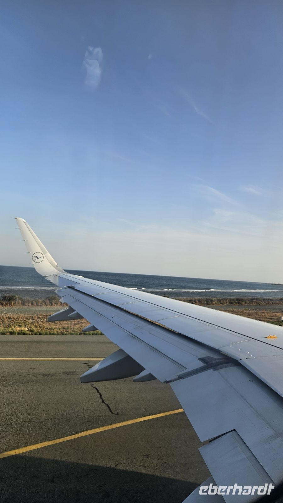 Gegen Mittag brachte der Transfer uns pünktlich zum Flughafen, wo eine Mitarbeiterin bereits auf uns wartete, um beim Check-in behilflich zu sein. Wir passierten zügig die Visa- und Sicherheitskontrolle, sodass wir frühzeitig am Gate ankamen. Alle war an Bord, und das Flugzeug startete pünktlich, zehn Minuten vor der geplanten Zeit.