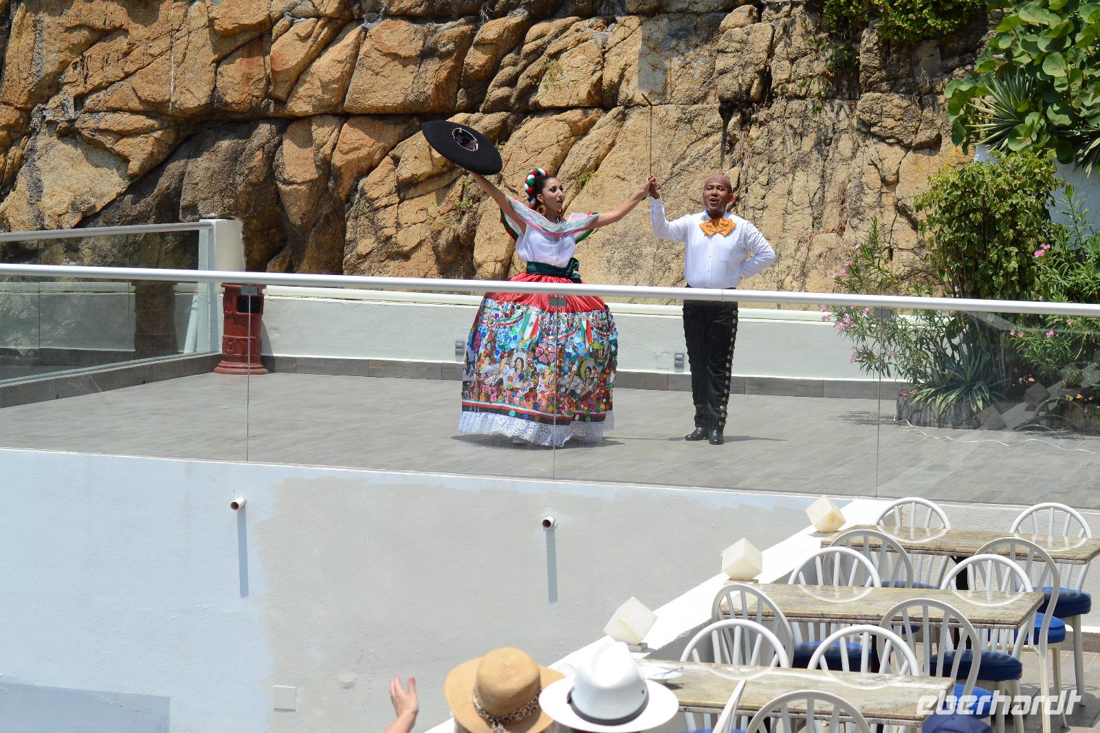 Am Morgen trafen sich fast alle Gäste am Treffpunt und wir gingen gemeinsam zum Pier. Dort erwartete uns der Bus sowie die Reiseleiterin des heutigen Tages. Die Schweizer Gästeführerin erzählte uns viel über das Leben vor Ort in Mexiko. Acapulco ist ein bekannter mexikanischer Badeort an der Pazifikküste. Die Bucht an den Bergen der Sierra Madre del Sur wird von den in den 1960er Jahren gebauten Hochhäusern umrandet. Der erste Foto Stopp führte uns zu einem Restaurant mit einem tollen Blick auf die Bucht du Strand von Acapulco. Weiter ging die Rundfahrt durch das Diamanten Viertel mit Villen der besser Betuchten und vorbei an der bekannten Filmszene aus Tarzan - die schwarze Lagune. Nun stand der Höhepunkt des Ausfluges an. Die Show der Klippenspringer! Die Sportler springen dabei von Felsen aus einer Höhe von mehr als 30 Meter und sind dabei auf die Gegebenheiten der freien Natur und dem Wetter angewiesen. Seit 1997 finden jährliche Wettbewerbe mit den spektakulärsten Figuren statt. Ziel ist es dabei möglichst spritzerfrei aufzutauchen. Diesen riskanten Sport betreiben vorwiegend Männer, welche aber keine geborenen Leistungssportler sind, sondern keinen gelernten Beruf besitzen und auf die Einnahmen und Zusprüche der Touristen angewiesen sind. Auf dem Weg dorthin hielten wir noch an einem Souvenir Geschäft mit Silberschmuck und einer tollen Parkanlage. Mit einem Margarita oder einer Limonade erfrischt fuhren wir weiter in das Hotel Mirador. Von den Terrassen aus beobachteten wir die atemberaubenden Sprünge der Klippenspringer und im Anschluss die mexikanische Tänzershow. Am frühen Nachmittag erreichten wir unser Schiff die Norgwegian Star und ließen den Nachmittag in der Sonne ausklingen.