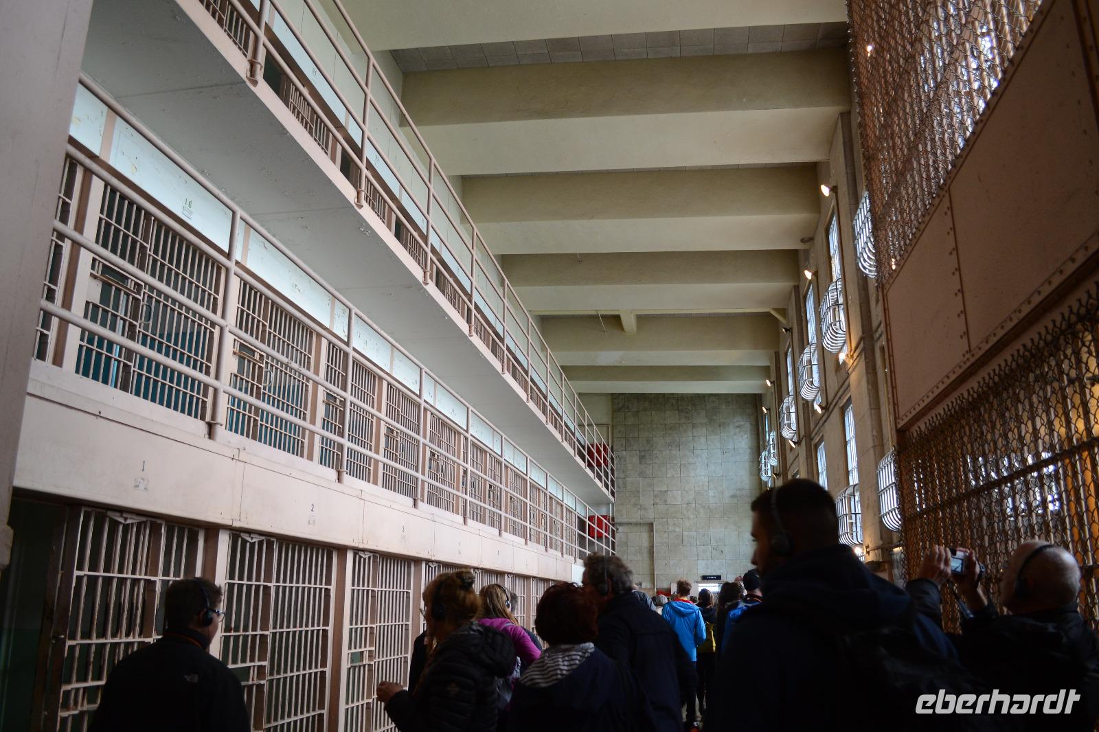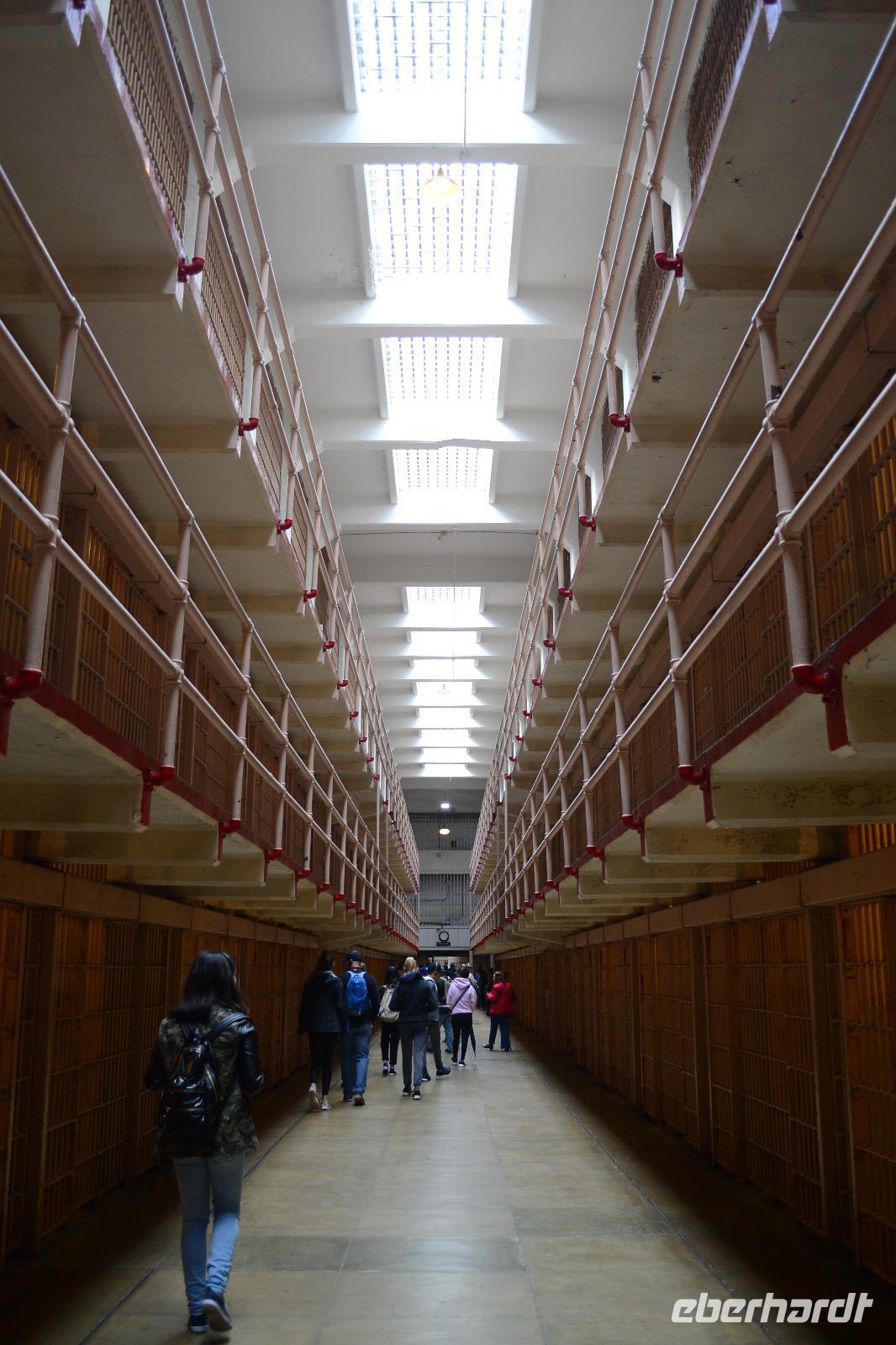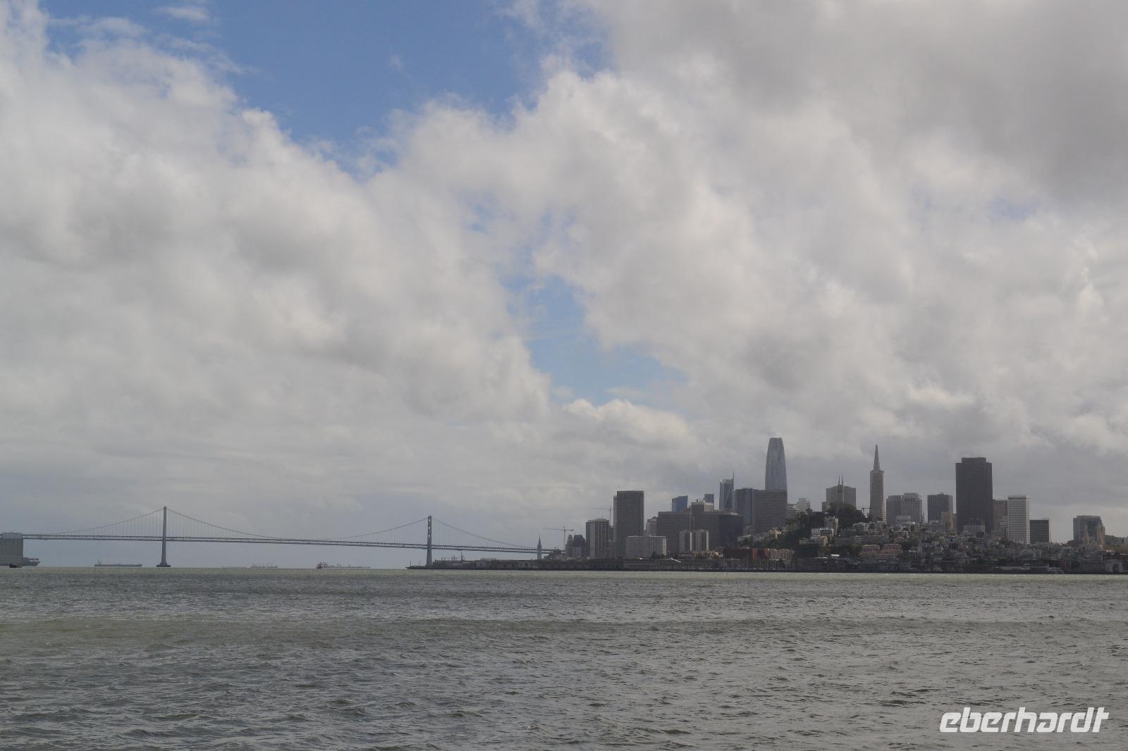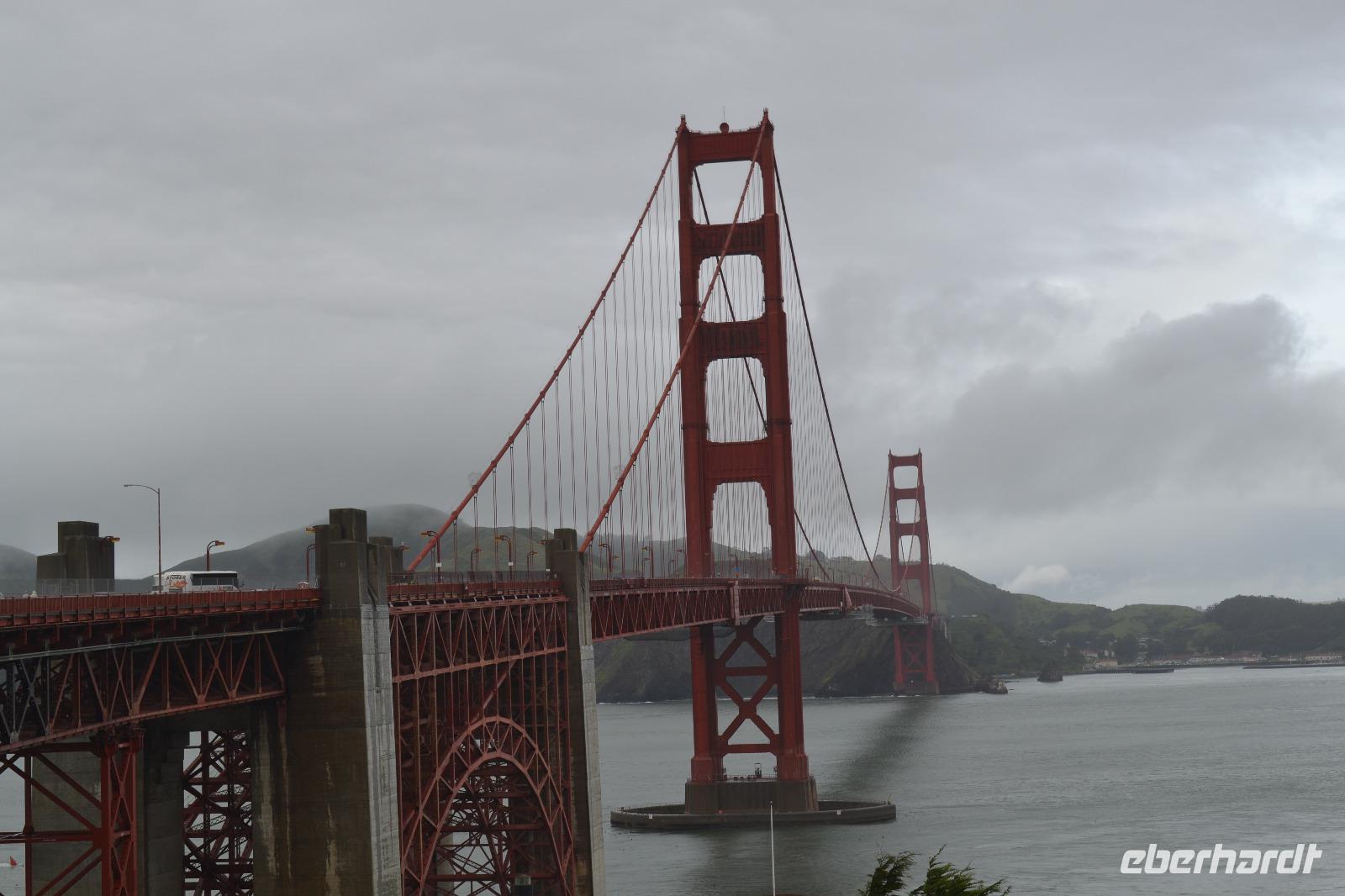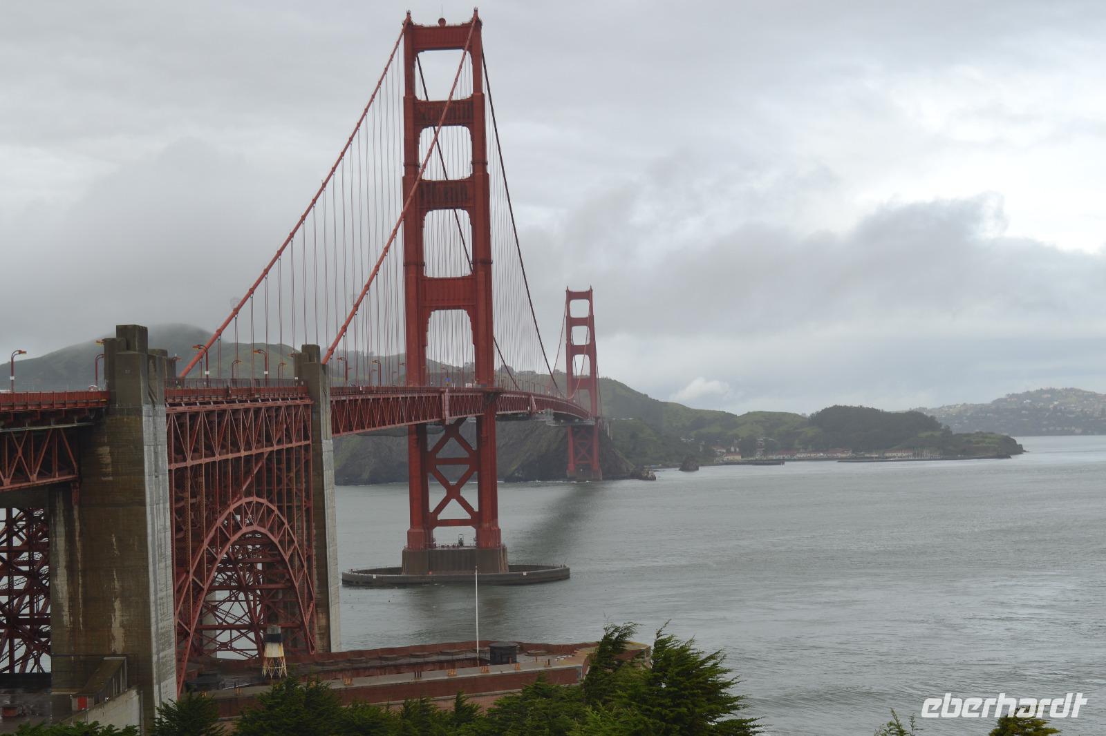 Nach dem ersten stärkenden Frühstück in Kalifornien begannen wir den heutigen Ausflug mit einem kurzen Spaziergang zu der nur wenige Meter entfernten Station der Cable Car. Nachdem uns die erste Bahn nicht mitnehmen wollte probierten wir es nun mit der zweiten. Ob sitzend auf den Bänken oder stehend an den Außenplätzen- jeder von uns genoss die typische Cable Car Fahrt entlang der California Street. Nach ca. zwanzig Minuten verließen wir das Verkehrsmittel, welches auch heute noch im Alltag auf den Verbindungsstraßen Hyde und Taylor Street genutzt wird. Von Down Town aus fuhren wir zunächst mit dem Bus zum Rathaus der Stadt. In unmittelbarere Nähe des Rathauses befinden sich die alte und neue Bibliothek, das chinesische Museum moderner Kunst und das von Chris geliebte Steueramt. Um uns einen gesamten Überblick der Stadt zu verschaffen fuhren wir zu dem Aussichtspunkt „Twin Peak". Auf 2 von 21 Hügeln rund um die Stadt hatte man eine tolle Sicht. Nun konnten wir die visuelle Trennung der Market Street in den Teil Soma und Noma nachvollziehen. Die Golden Gate Bridge verschwand leider fast vollständig in einem Meer aus Wolken. Doch unser nächster Fotostopp führte uns näher heran. Eine reichliche Stunde knipsten wir die schönsten Bilder aus unterschiedlichen Perspektiven auf die Golden Gate Bridge. Für viele Touristen ist die Brücke das Wahrzeichen der Bay Area und neben der Freiheitsstatue ein Symbol der USA. Für unsere Mittagspause fuhren wir mit dem Bus an den Hafen zum Pier 33. Dort stärkten wir uns für den Ausflug zur Gefängnisinsel Alcatraz. Nach ca. 20 Minuten Fährfahrt erreichten wir die Insel. Der abgeschiedene Standort wurde in der zweiten Hälfte des 19. Jahrhunderts zunächst als ein Gefängnis für kriegsgefangene Konföderierte genutzt. 1934 bis 1963 fungierte es als eines der bekanntesten und berüchtigtsten Hochsicherheitsgefängnisse der Vereinigten Staaten. Jeder Gast wurde mit einem Audiogeräte ausgestattet, welche uns auf Deutsch die erlebten Geschichten näher brachten. Durch authentische Mitschnitte und Vorfälle konnte man sich das Gefängnis zu Lebzeiten vorstellen. Nach ca. 1 Stunde Führung durch die Anlage konnte man sich ein Buch eines ehemaligen Häftlings als Andenken live und eigenhändig signiert mitnehmen. Den Nachmittag verbrachten wir am berühmten Pier 39 dem ehemaligen Bootsanleger. Ob ein Bummel durch die Geschäfte der Fisherman's Wharf, Beobachtung der Seelöwen oder Fahrt zur Lomard Street - jeder genoss die Freizeit. Am Abend kehrten wir in das Restaurant Hana Zen mit einem tollen Blick auf den Sonnenuntergang hinter der Golden Gate Bridge ein.