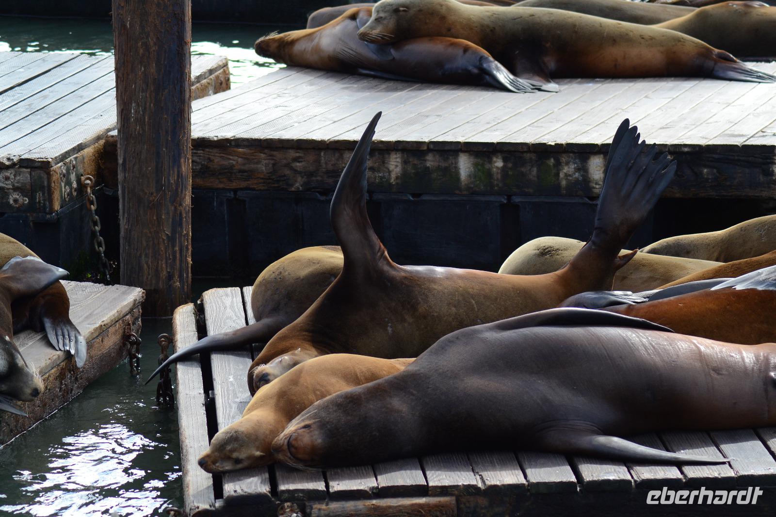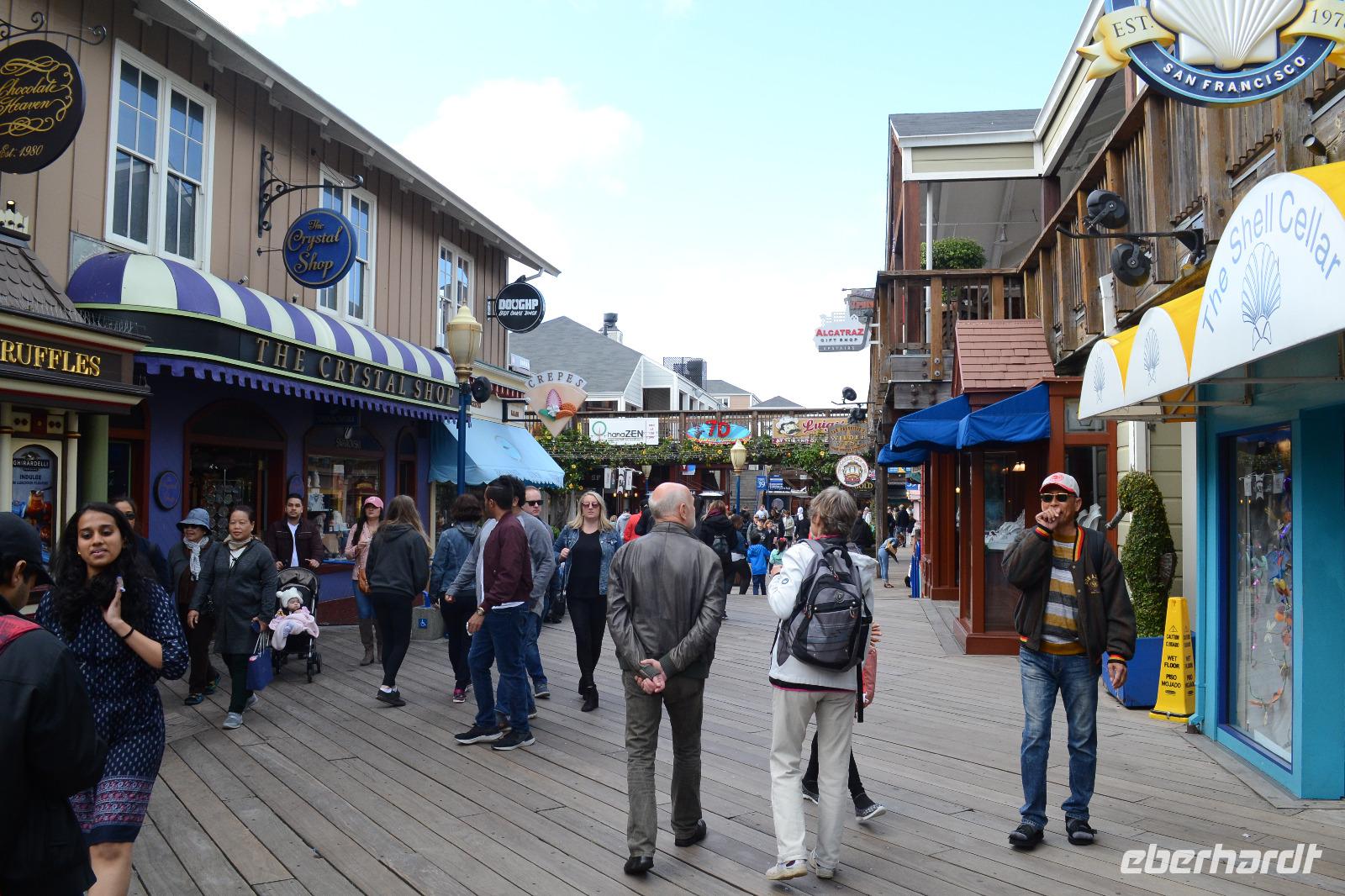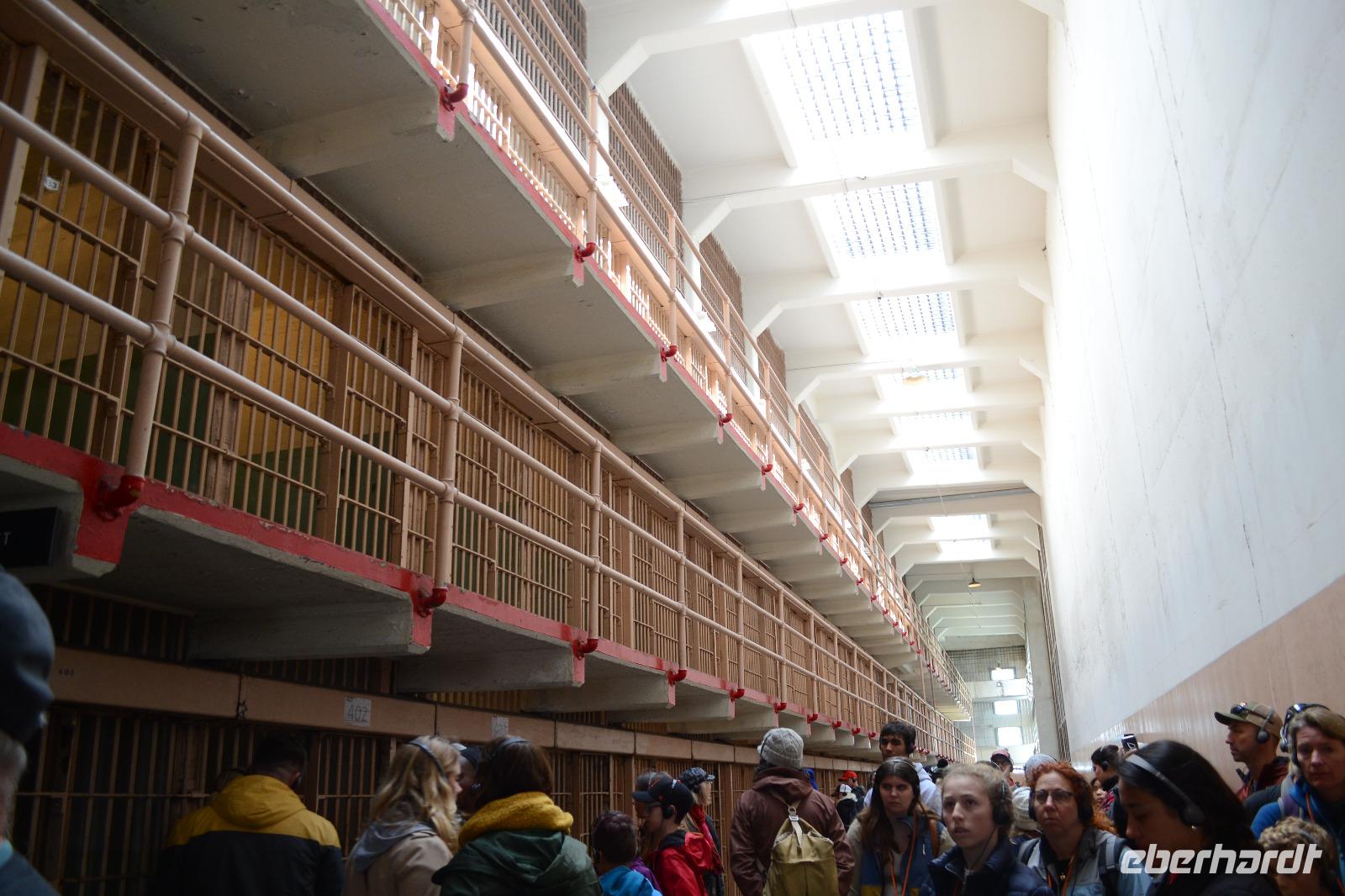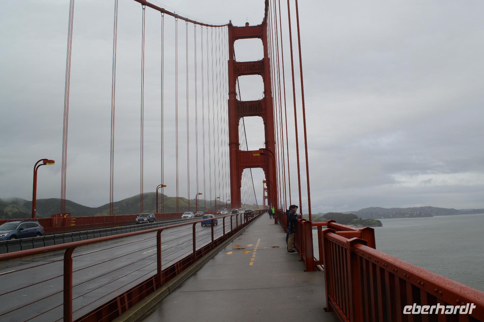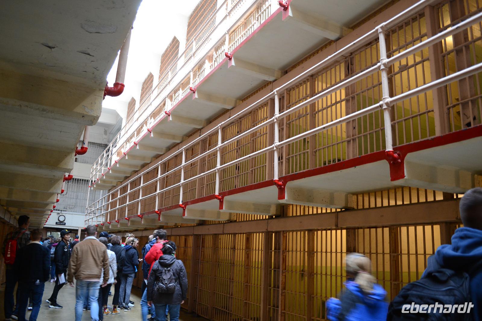 Nach dem ersten stärkenden Frühstück in Kalifornien begannen wir den heutigen Ausflug mit einem kurzen Spaziergang zu der nur wenige Meter entfernten Station der Cable Car. Nachdem uns die erste Bahn nicht mitnehmen wollte probierten wir es nun mit der zweiten. Ob sitzend auf den Bänken oder stehend an den Außenplätzen- jeder von uns genoss die typische Cable Car Fahrt entlang der California Street. Nach ca. zwanzig Minuten verließen wir das Verkehrsmittel, welches auch heute noch im Alltag auf den Verbindungsstraßen Hyde und Taylor Street genutzt wird. Von Down Town aus fuhren wir zunächst mit dem Bus zum Rathaus der Stadt. In unmittelbarere Nähe des Rathauses befinden sich die alte und neue Bibliothek, das chinesische Museum moderner Kunst und das von Chris geliebte Steueramt. Um uns einen gesamten Überblick der Stadt zu verschaffen fuhren wir zu dem Aussichtspunkt „Twin Peak". Auf 2 von 21 Hügeln rund um die Stadt hatte man eine tolle Sicht. Nun konnten wir die visuelle Trennung der Market Street in den Teil Soma und Noma nachvollziehen. Die Golden Gate Bridge verschwand leider fast vollständig in einem Meer aus Wolken. Doch unser nächster Fotostopp führte uns näher heran. Eine reichliche Stunde knipsten wir die schönsten Bilder aus unterschiedlichen Perspektiven auf die Golden Gate Bridge. Für viele Touristen ist die Brücke das Wahrzeichen der Bay Area und neben der Freiheitsstatue ein Symbol der USA. Für unsere Mittagspause fuhren wir mit dem Bus an den Hafen zum Pier 33. Dort stärkten wir uns für den Ausflug zur Gefängnisinsel Alcatraz. Nach ca. 20 Minuten Fährfahrt erreichten wir die Insel. Der abgeschiedene Standort wurde in der zweiten Hälfte des 19. Jahrhunderts zunächst als ein Gefängnis für kriegsgefangene Konföderierte genutzt. 1934 bis 1963 fungierte es als eines der bekanntesten und berüchtigtsten Hochsicherheitsgefängnisse der Vereinigten Staaten. Jeder Gast wurde mit einem Audiogeräte ausgestattet, welche uns auf Deutsch die erlebten Geschichten näher brachten. Durch authentische Mitschnitte und Vorfälle konnte man sich das Gefängnis zu Lebzeiten vorstellen. Nach ca. 1 Stunde Führung durch die Anlage konnte man sich ein Buch eines ehemaligen Häftlings als Andenken live und eigenhändig signiert mitnehmen. Den Nachmittag verbrachten wir am berühmten Pier 39 dem ehemaligen Bootsanleger. Ob ein Bummel durch die Geschäfte der Fisherman's Wharf, Beobachtung der Seelöwen oder Fahrt zur Lomard Street - jeder genoss die Freizeit. Am Abend kehrten wir in das Restaurant Hana Zen mit einem tollen Blick auf den Sonnenuntergang hinter der Golden Gate Bridge ein.