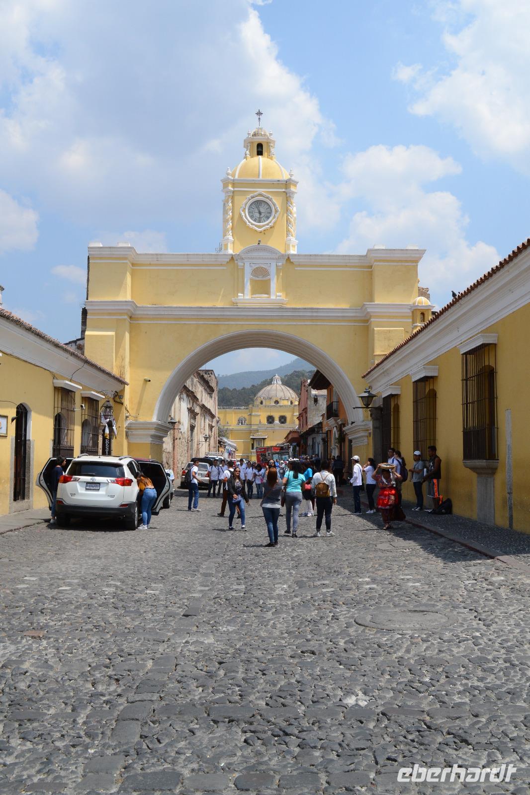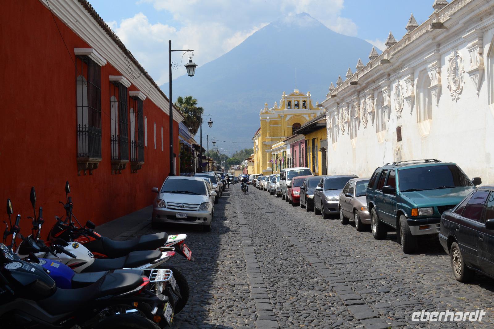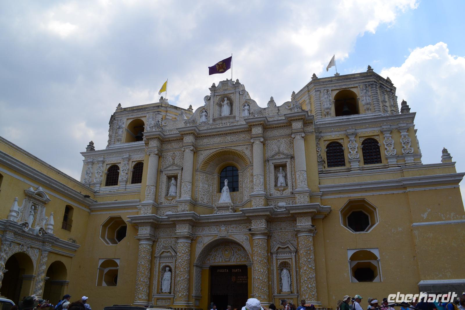 Wir verließen das mexikanische Festland und erkundeten heute Guatemala. Zunächst führte uns der Weg zu den Bussen entlang einer Reihe Souvenir Geschäfte. Uns begrüße die zweite Laura. Wir fuhren über holprige Wege vorbei an den drei wichtigsten Vulkanen des Landes Volcán de Aqua, Volcán de Fuego und Acatenango ca. 1,5 Stunden nach Antigua. Hinter den grauen Mauern tauchten wir ein in das Bunte Treiben der Stadt. Nach einer kurzen Toilettenpause trafen wir uns am Hauptplatz und Brunnen der Stadt und begannen von dort unseren kleinen Spaziergang. Zunächst gingen wir durch den Torbogen zu der Kathedrale San José. Die Bischofskirche war dem Apostel Jakobus geweiht. Im Anschluss führte Laura uns zu dem Museo de Arte Colonial. Leider konnten wir nur auf einem begrenzten Raum Fotos machen und einen Eindruck gewinnen. Wenige Tage zu vor wurde aus dem Museum eine wichtige Statue entwendet. Nur wenige Meter entfernt befand sich das Jade Museum. Der Schmuckstein stellt einen wichtigen Teil der Maya Kultur dar. Unterwegs dorthin gingen uns zwei Gäste der Gruppe verloren, welche wir später bei einem Glas Bier im Restaurant wieder trafen. Nach einer kurzen Einführung im Jade Museum durch einen deutschsprachigen Mitarbeiter durften wir uns im Showroom die Schmuckstücke und kleinen Kunstwerke, sowie die Geschichte näher ansehen. Viele Gäste nutzen die Chance des freien WLAN. Nach einer kurzen Freizeit stärkten wir uns bei einem traditionellen Mittagessen in einem hübsch bepflanzten Innenhof bei Live Musik. Uns wurden Spezialitäten, wie Bohnenhumus, Tortilla oder frittierte Bananen angeboten. Nach 4 Stunden Aufenthalt in der Stadt stand die Rückfahrt zum Hafen bevor. Auf dem Weg kamen wir erneut entlang des Ground Zero, das Gebiet des im Jahr 2016 stattgefunden Vulkanausbruchs. Am Nachmittag trafen alle Gäste auf dem Schiff ein und wir legten pünktlich 17 Uhr vom Hafen ab. Den Abend verbrachten wir individuell bei einem leckeren Abendessen.