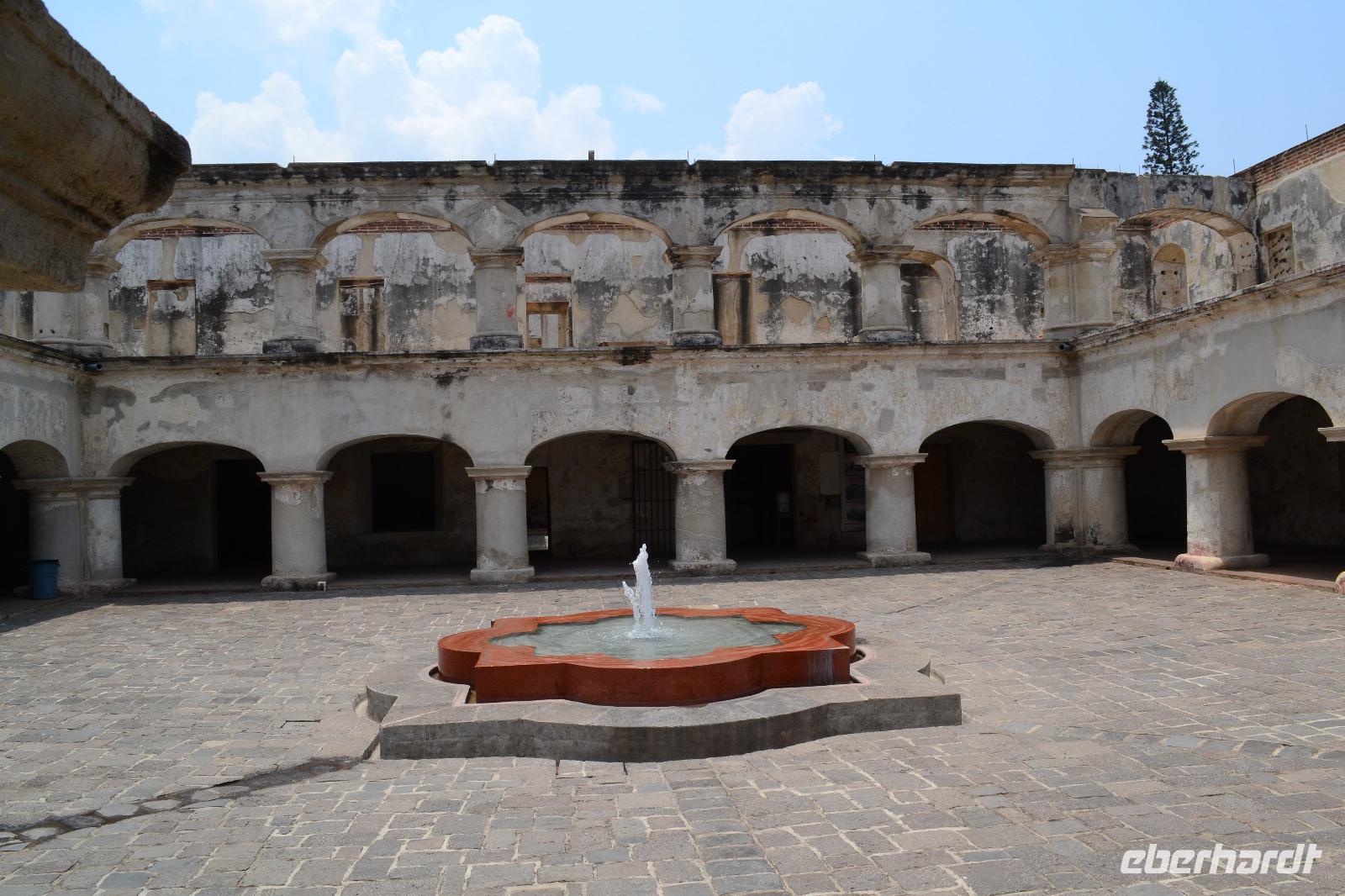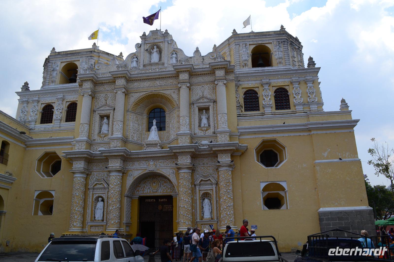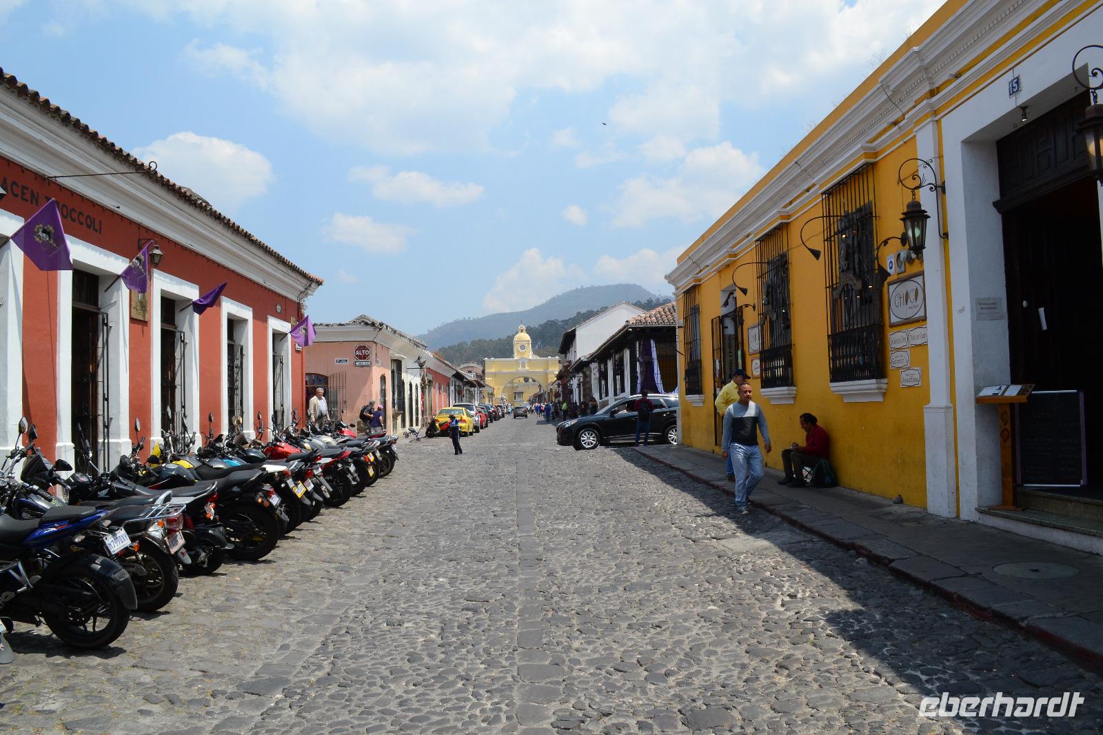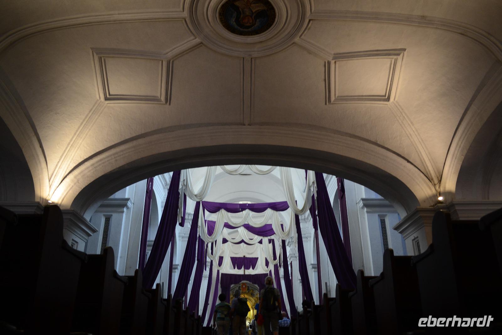 Wir verließen das mexikanische Festland und erkundeten heute Guatemala. Zunächst führte uns der Weg zu den Bussen entlang einer Reihe Souvenir Geschäfte. Uns begrüße die zweite Laura. Wir fuhren über holprige Wege vorbei an den drei wichtigsten Vulkanen des Landes Volcán de Aqua, Volcán de Fuego und Acatenango ca. 1,5 Stunden nach Antigua. Hinter den grauen Mauern tauchten wir ein in das Bunte Treiben der Stadt. Nach einer kurzen Toilettenpause trafen wir uns am Hauptplatz und Brunnen der Stadt und begannen von dort unseren kleinen Spaziergang. Zunächst gingen wir durch den Torbogen zu der Kathedrale San José. Die Bischofskirche war dem Apostel Jakobus geweiht. Im Anschluss führte Laura uns zu dem Museo de Arte Colonial. Leider konnten wir nur auf einem begrenzten Raum Fotos machen und einen Eindruck gewinnen. Wenige Tage zu vor wurde aus dem Museum eine wichtige Statue entwendet. Nur wenige Meter entfernt befand sich das Jade Museum. Der Schmuckstein stellt einen wichtigen Teil der Maya Kultur dar. Unterwegs dorthin gingen uns zwei Gäste der Gruppe verloren, welche wir später bei einem Glas Bier im Restaurant wieder trafen. Nach einer kurzen Einführung im Jade Museum durch einen deutschsprachigen Mitarbeiter durften wir uns im Showroom die Schmuckstücke und kleinen Kunstwerke, sowie die Geschichte näher ansehen. Viele Gäste nutzen die Chance des freien WLAN. Nach einer kurzen Freizeit stärkten wir uns bei einem traditionellen Mittagessen in einem hübsch bepflanzten Innenhof bei Live Musik. Uns wurden Spezialitäten, wie Bohnenhumus, Tortilla oder frittierte Bananen angeboten. Nach 4 Stunden Aufenthalt in der Stadt stand die Rückfahrt zum Hafen bevor. Auf dem Weg kamen wir erneut entlang des Ground Zero, das Gebiet des im Jahr 2016 stattgefunden Vulkanausbruchs. Am Nachmittag trafen alle Gäste auf dem Schiff ein und wir legten pünktlich 17 Uhr vom Hafen ab. Den Abend verbrachten wir individuell bei einem leckeren Abendessen.
