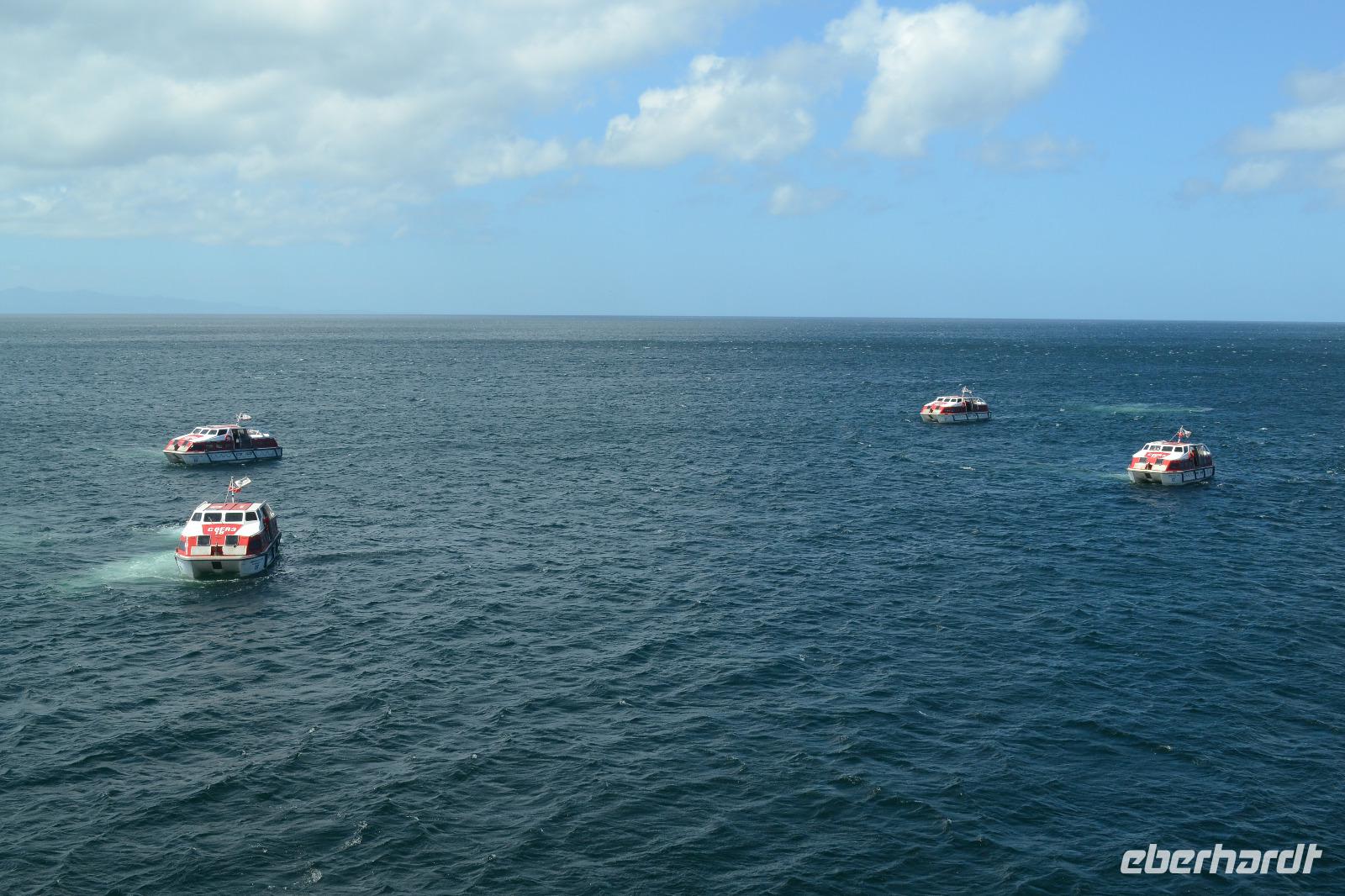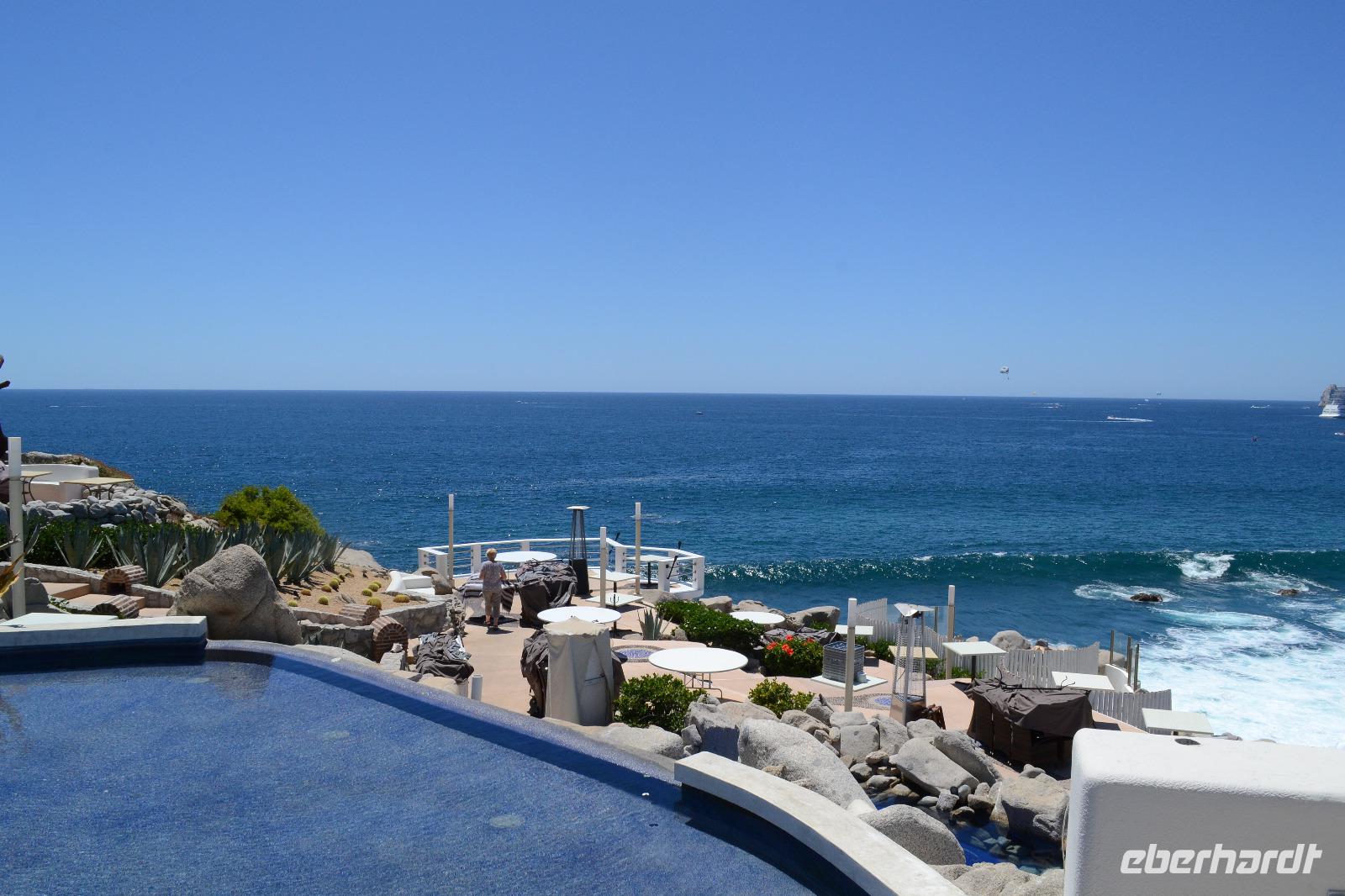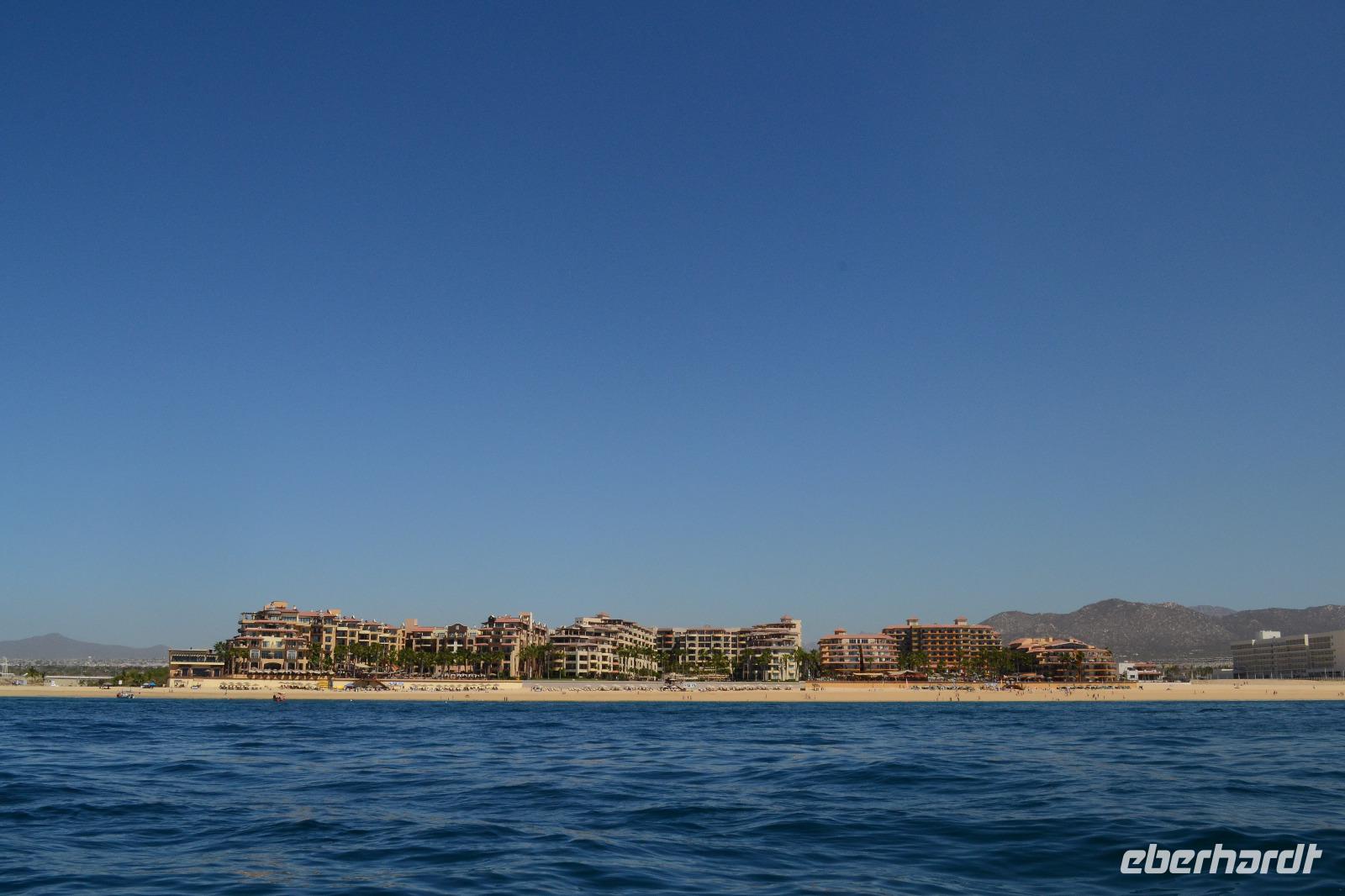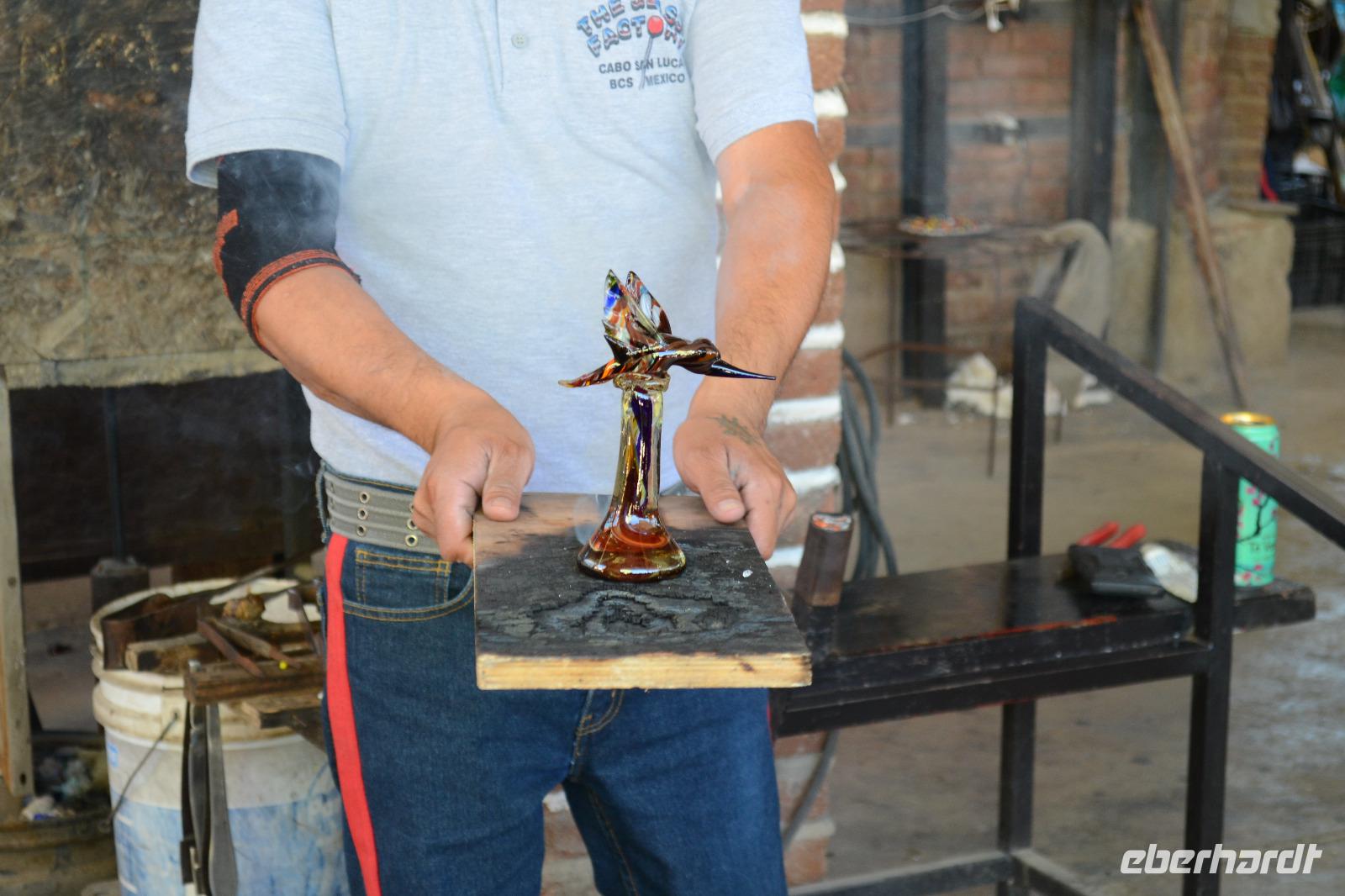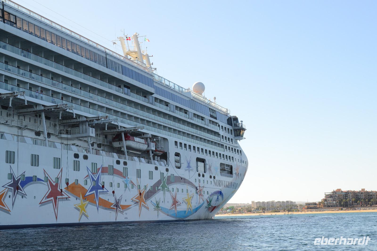 Der erste Tenderhafen wurde heute in Cabo San Lucas angelaufen. Der kleine Ort liegt an der Südspitze der Baja California Halbinsel Mexikos. Es lagen zwei weitere Schiffe auf Reede neben uns. Wir trafen uns mit Laura an der Rezeption und gingen gemeinsam zu den Tenderbooten auf Deck 4, welche uns innerhalb von 10 Minuten an Land brachten. Ein Teil der Gruppe bummelte auf eigenen Faust entlang der Hafenpromenade und genoss ein Bad im Meer. Der andere Teil unternahm einen Ausflug zu den Baja Highlights. Unser deutsch sprachiger Reiseleiter Memo führte uns zunächst in eine Glasbläserei. Dort erhielten wir eine Vorführung in die Kunst des Glases. Wir bestaunten die schnelle, jedoch präzise Arbeit und das kreieren einer Glasfigur. Weiter ging die Busfahrt zu einem Hotel mit traumhaften Blick auf die Bucht von Cabo San Lucas. Zur Erfrischung wurde uns ein kühles Getränk gereicht. Die Halbinsel verfügt über die schönsten Buchten und paradiesische Strände. Der letzte Stopp mit einer kleinen Freizeit führte uns nach San José del Cabo. Ein typisches Künstler Örtchen mit vielen Kunsthändlern und kleinen romantischen Cafés. Am Nachmittag tenderten alle Gäste zurück zum Schiff.