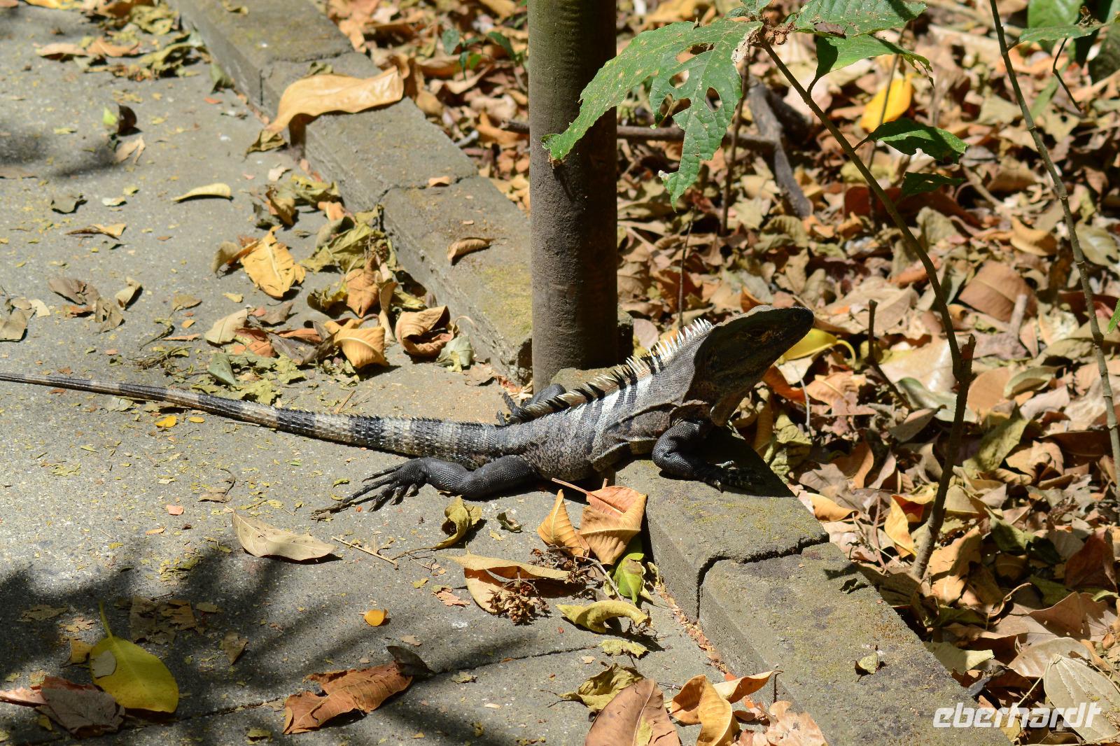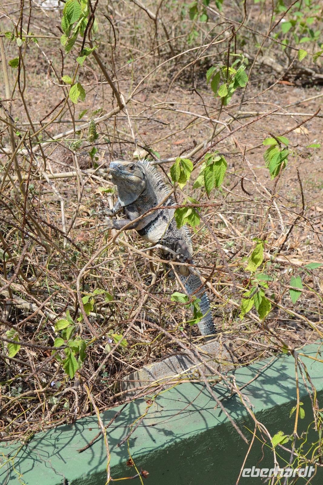 Wir trafen uns alle zu unserem heutigen Eberhardt-Ausflug an der Rezeption und verließen nach einer verspäteten Freigabe des Schiffes die Norwegian Star. Nur wenige Gehminuten entfernt nahm uns bereits die liebe Reiseleiterin Ursula in Empfang. Zunächst fuhren wir ca. eine Stunde mit dem Bus zum Carara Nationalpark. Auf der Fahrt erklärte uns Ursula an Hand einer Karte des Landes viel zur Struktur und Geschichte. Am Park angekommen legten wir uns erst einmal eine Schicht Mücken- und Sonnenspray auf, da es heute wahnsinnig warm war. Der Spaziergang durch den Wald kam uns gerade recht, denn die schattigen Plätzchen waren sehr angenehm. Knapp zwei Stunden Wanderung entlang des ausgewiesenen Weges und wilden Trampelpfaden mit Informationen zu Flora und Fauna lagen vor uns. Wir durften die verschiedensten Arten von Leguanen bewundern und auch die neugierigen Kapuzinaaffen wollten sich uns präsentieren. Die Fülle an Pflanzenarten und Baumriesen waren das meist fotografierte Motiv während des Vormittags. Im Anschluss an die Naturerkundungen stoppten wir am Tarcoles Fluss. In diesem Gewässer tummelten sich eine Vielzahl an Krokodilen und Vogelarten. Wir stärkten uns beim Mittagessen an dem Buffet mit Reis, Bohnen, Gemüse und Hähnchen bzw. Rindfleisch. Am Ende des schönen Ausfluges unternahmen wir noch eine kleine Orientierungsfahrt durch die Straßen von Puntarenas, mit Zwischenstopps an dem Leuchtturm und tollen Gewächsen. Auf Wiedersehen, Costa Rica!