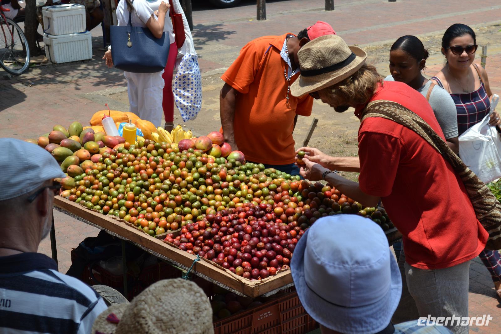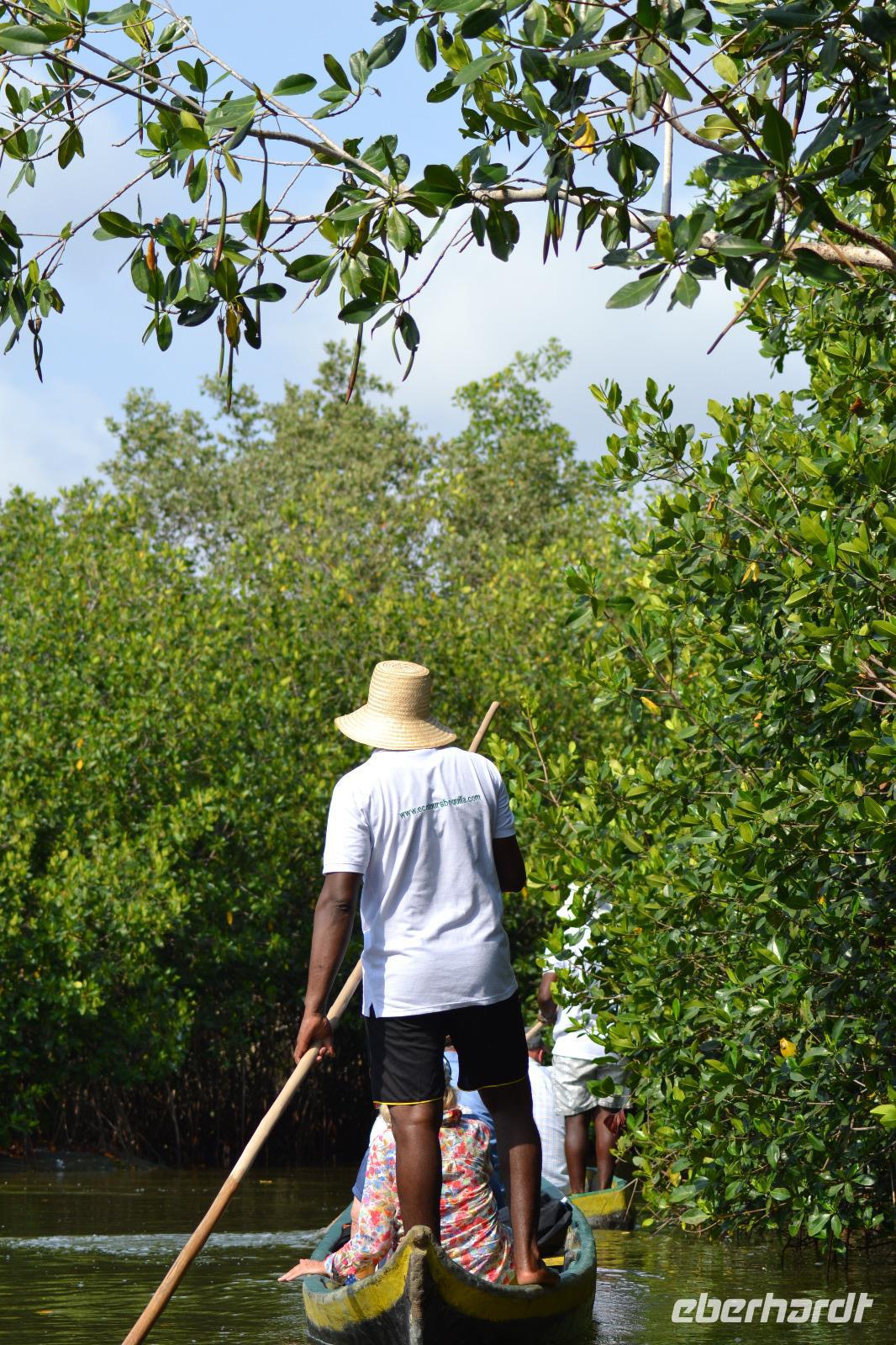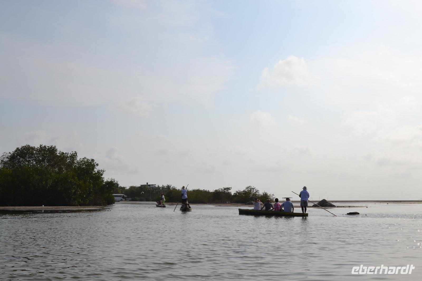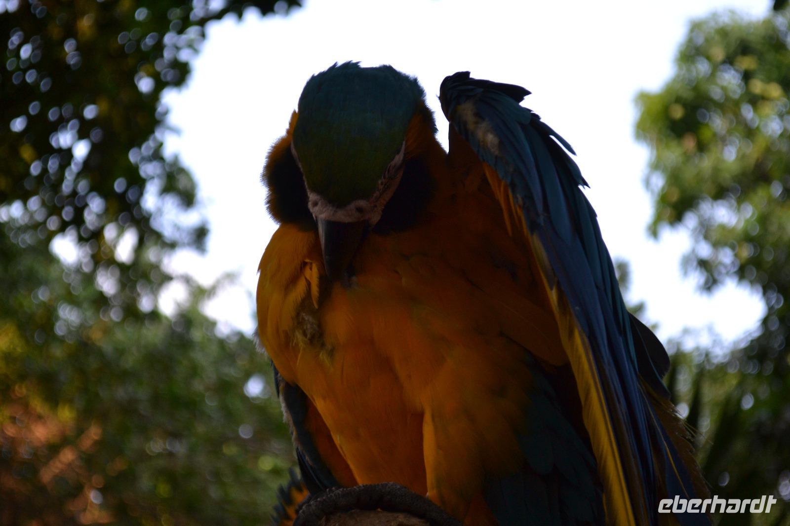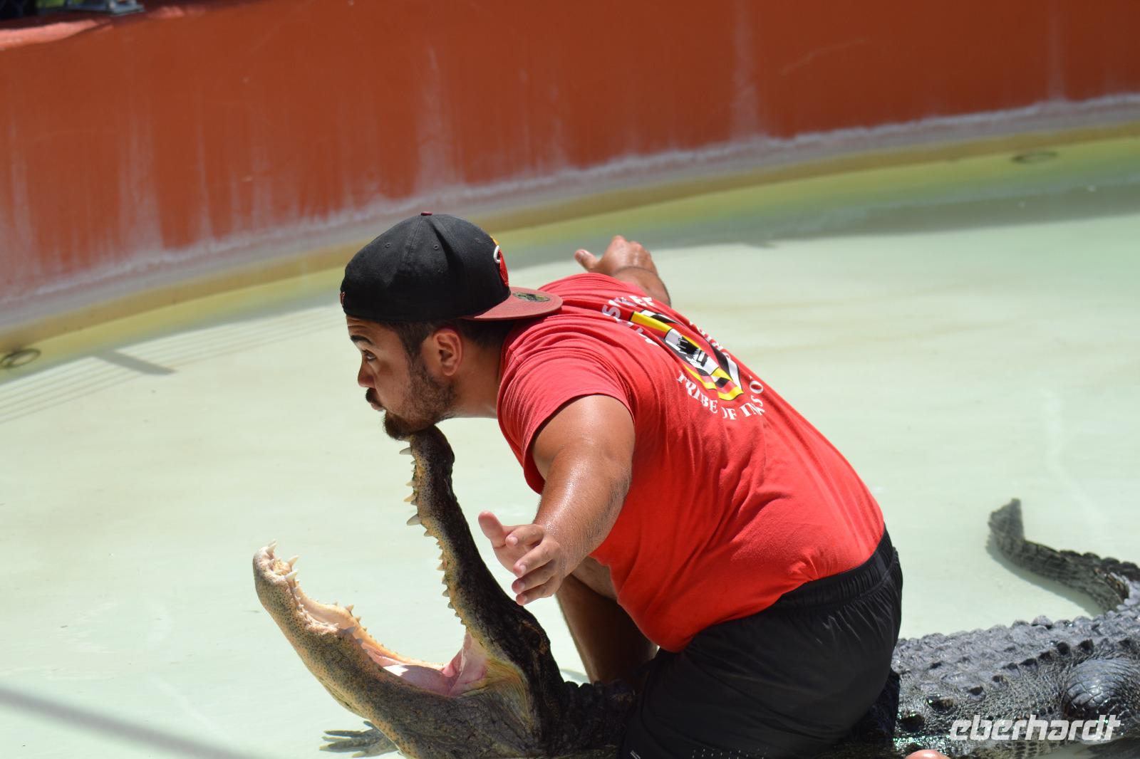 Unser letzter Hafen bevor wir in Miami einlaufen würden. Wir trafen uns am gewohnten Treffpunkt um 10 Uhr und verließen gemeinsam das Schiff. Schnell stellten wir fest, dass es heute wohl der heißeste Tag der Kreuzfahrt werden würde. Beim Verlassen des Hafenterminals durchquerten wir eine tolle kleine Zooanlage, welche uns Laura bereits an den Tagen zuvor ankündigte. Wir hießen unsere heutigen Reiseleiter Markus Willkommen. Der erste Besichtigungspunkt des Tages war das Castillo de San Felipe de Barajas. Oberhalb von Cartagena thront die beeindruckende Festung. Sie wurde bereits kurz nach der Gründung der Stadt gebaut und sollte die neue Kolonialhafenstadt, auf Grund des Gold- und Silberreichtums vor Angriffen der Piraten und Freibeuter schützen. Der höchste Punkt ragt stolze 41 Meter über den Meeresspiegel hinaus. Wir deckten uns mit ausreichend Wasser ein und erklommen die relativ steilen Wege. Markus erläuterte uns die verschiedenen Verteidigungsstrategien und Maßnahmen und zeigte uns das Tunnelsystem der Anlage. Diese dienten einerseits zum Schutz der Soldaten bei einem plötzlichen auftauchen und anderseits bildeten sie ein unterirdisches Labyrinth, in dem sich Eindringlinge verirren sollten. Von dem Bauwerk aus hatte man eine tolle Sicht auf die Altstadt, Stadtmauer und die neue Bürohäuser der Stadt. Anschließend fuhren wir weiter zu einem Altstadtspaziergang. Zunächst verkosteten wir an einem kleinen Obststand an der Straße ein paar typische Früchte wie kleine Pflaumenartige Cirudella. Weiter ging es zum Blumenmarkt der Stadt, wobei man untypischerweise mehr Kunstblumen als frische erstehen konnte. Doch das liegt an den Temperaturen und der Haltbarkeit in der Region. Wir erfrischten uns bei einem gepressten Lulu-Saft in mitten der Einheimischen und staunten nicht schlecht über die Männer mit Ihren Schreibmaschinen am Straßenrand. Da eine Vielzahl der Bürger von Cartagena nie erlernten ein offizielles Dokument zu schreiben übernehmen die Männer diese Arbeit gegen eine kleine Bezahlung. Nach kurzer Zeit erreichten wir das Eingangstor mit Uhrturm, sowie den Plaza de la Coaches. Bevor wir unser heutiges Restaurant für das Mittagessen erreichten, verteilte Markus ein paar typische Süßigkeiten und Gebäcke Kolumbiens. Die Altstadt bezauberte uns durch die zahlreichen kleinen Gassen und hübschen Häusern geschmückt mit Holzbalkonen und Blumen. Die Portionen und lokalen Beilagen wie Kochbananen trafen nicht alle Geschmäcker. Doch die Abkühlung, Ruhepause und Stärkung tat uns gut und wir schlenderten weiter zu unserem Bus. Dabei passierten wir die wunderschöne Santa Catalina Kathedrale und einen kleinen Park. Der Bus fuhr uns über eine Sandstraße entlang der Küste zu dem kleinen Fischerdorf la Boquilla. Nach einer kurzen Einweisung bestiegen wir unsere 6 Kanus und wurden von jeweils einem jungen Mann auf dem Kanu durch die dichten Mangroven Tunnel und Landschaften gefahren. In diesem Teil leben hauptsächlich afrikanisch Stämmige Einwohner. Entlang der Gewässer sahen wir die 3 unterschiedlichen Mangrovenarten rot, weiß und grün mit Austern am Stamm kleben. In der Natur leben eine Vielzahl an Vogelarten unter anderem der Graue und weiße Raijer. Auf dem Rückweg demonstrierte uns ein Fischer seine Technik zum Fang von Krebsen. Einen erwischte er beim ersten Versuch und seine restlichen Fänge präsentierte er uns in einer Drahtbox. Da derzeit Trockenzeit in Kolumbien herrscht sind nur wenige Teile der Gewässer für die Kanus befahrbar. Die Einheimischen verabschiedeten uns mit einer frischen Kokosnuss. Pünktlich 17 Uhr kehrten wir zum Hafen zurück und verabschiedeten uns von Markus. Es verblieben noch ein paar letzte Minuten in der kolumbianischen Hafenstadt zum Fotografieren der Tiere im kleinen Zoogelände vor dem Hafen. Hätten wir zu diesem Zeitpunkt geahnt, dass das Schiff fast eine Stunde später ablegen würde, hätten wir uns mehr Zeit gelassen. Jedoch wollten wir die anschließenden zwei Seetage und Fahrt nach Miami nicht verpassen.