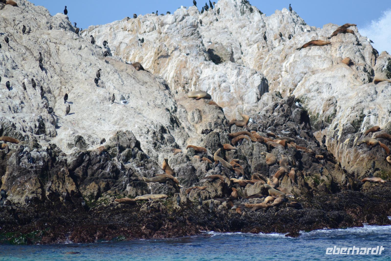 Heute hieß es Abschied nehmen von San Francisco! Unser erster Stopp führte uns in den malerischen Ort Monterey Bay. Nach der zwei Stündigen Fahrt genossen wir einen Spaziergang durch das kleine Örtchen mit traumhaften Blick auf das Meer. Anschließend fuhren wir weiter auf dem 17-Miles-Drive. Wir wussten gar nicht wo wir als erstes hinsehen sollten! Rechts und Links entlang der Straßen befanden sich traumhafte Villen von namenhaften Persönlichkeiten, wie beispielsweise Madonna, Familie Busch, Versace und viele Golfplätze. Die Landschaft erstreckte sich entlang der traumhaften Küste. Eine der Hauptattraktionen der Strecke ist die „einsame Zypresse", die auf einem Felsen im Meer gewachsen ist. Chris rief einen Wettbewerb für das schönste Bild des Baumes aus. Am Pebble Beach konnte man Seelöwen auf dem Felsen, Erdhörnchen zwischen den Steinen und die putzigen Jay Birds mit einem ungewöhnlichen Zwitschern beobachten. Nun war es an der Zeit für eine Mittagspause, welche wir in dem beschaulichen Ort Carmel-by-the-Sea einlegten. Die gepflegte Umgebung und hübschen Häuschen luden zum Verweilen ein. Nach der kurzen Pause verließen wir den 17-Miles Drive und befuhren den Highway Number 1 nach Santa Maria. Mit einer kurzen Kaffee- und Toilettenpause an der Autobahn trafen wir 17.30 Uhr in unserem Hotel neben einem kleinen Flugplatz ein. Nach dem langen Tag im Bus aßen wir individuell in dem Restaurant des Hotels und fielen in unsere Betten.