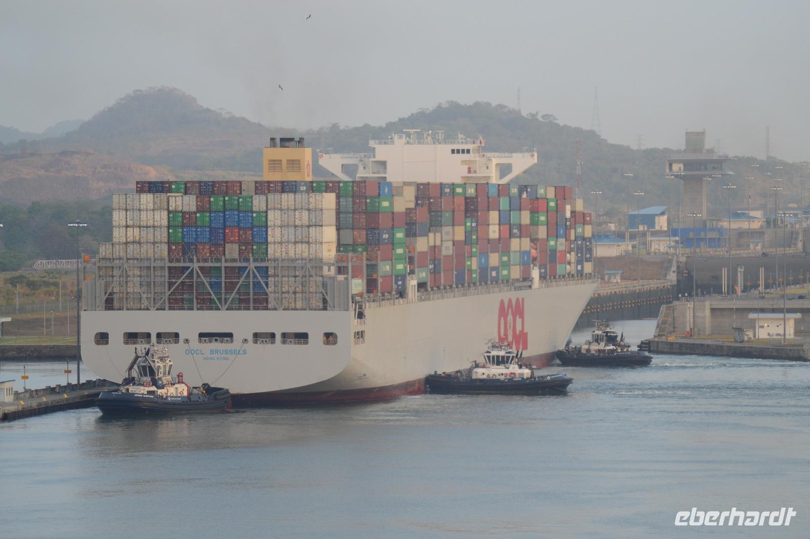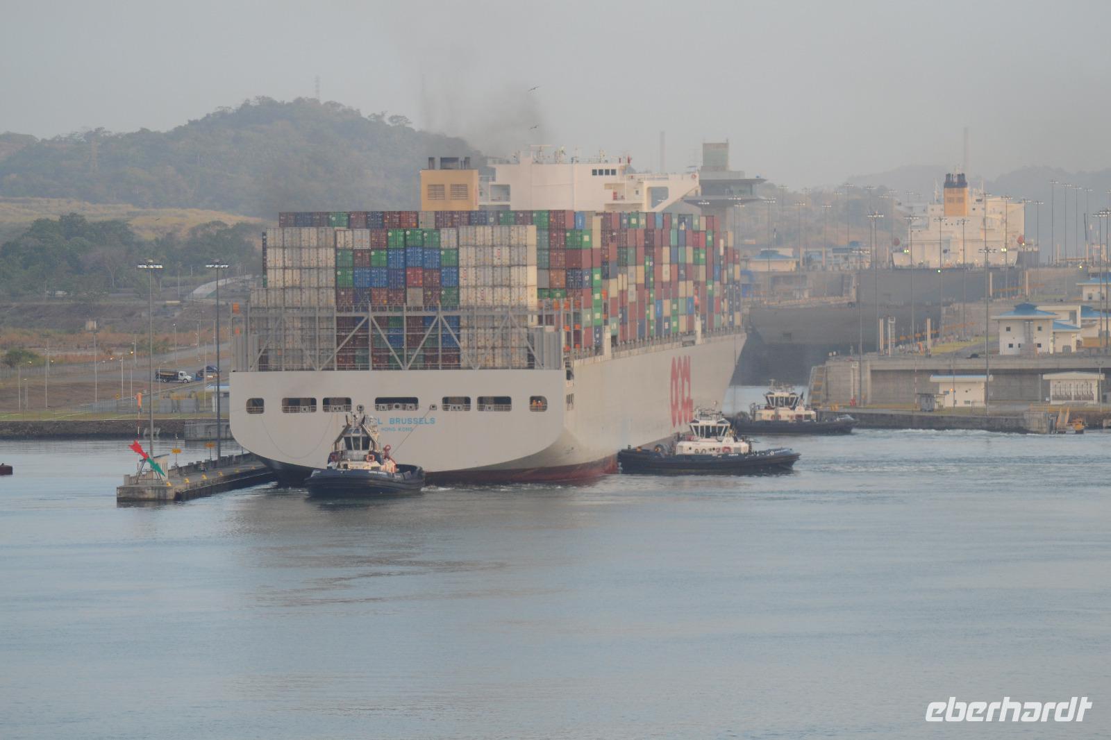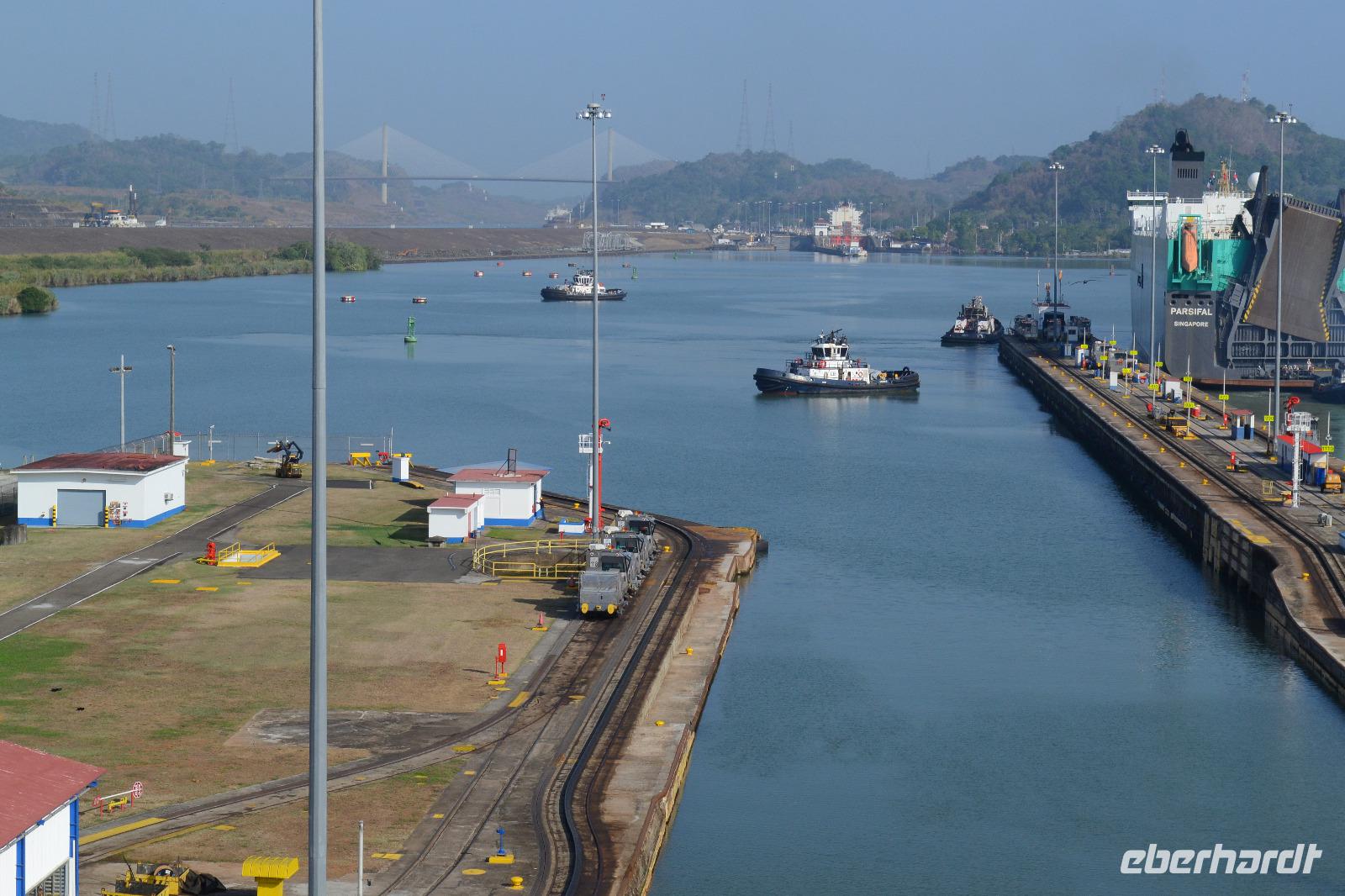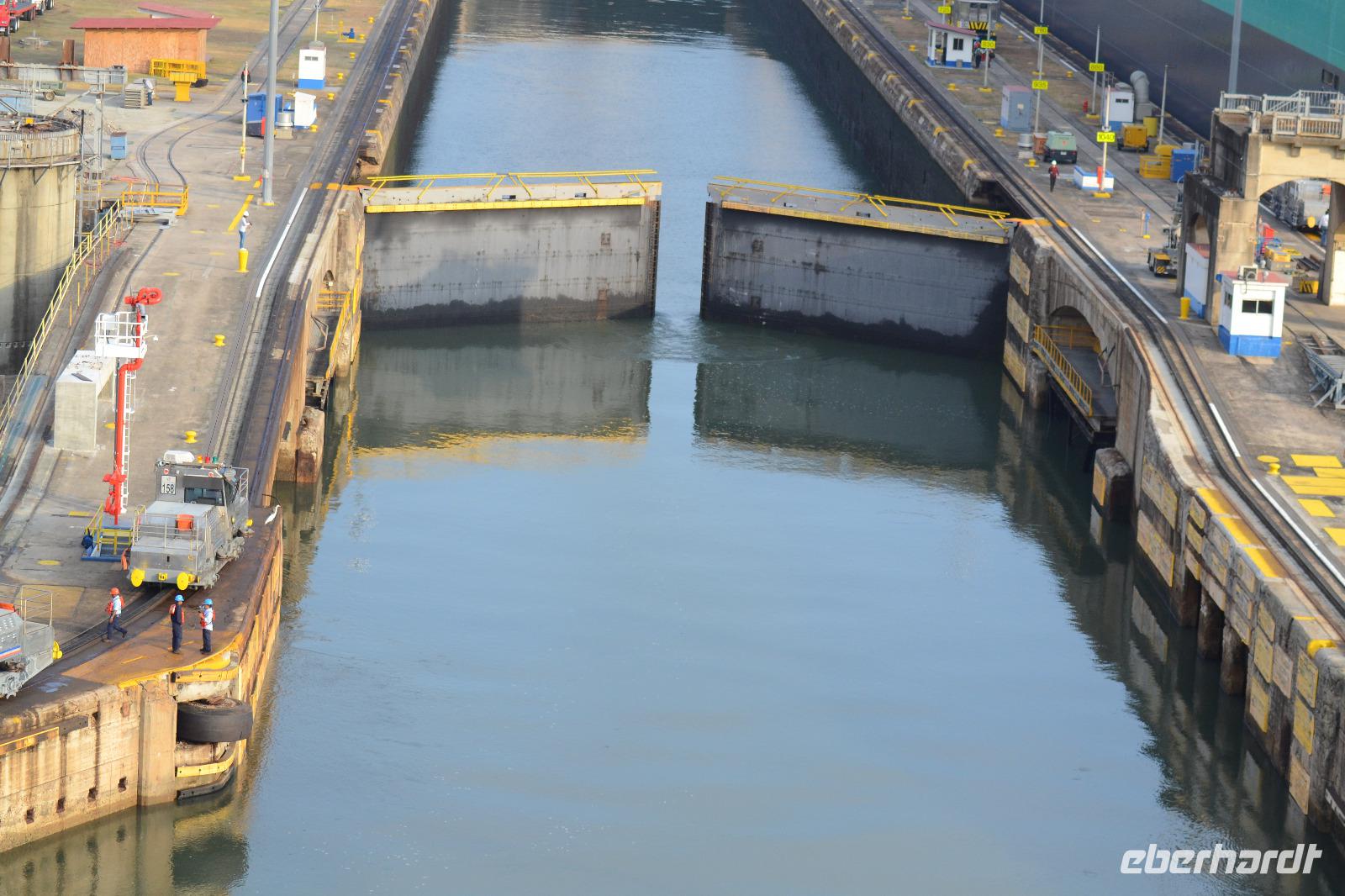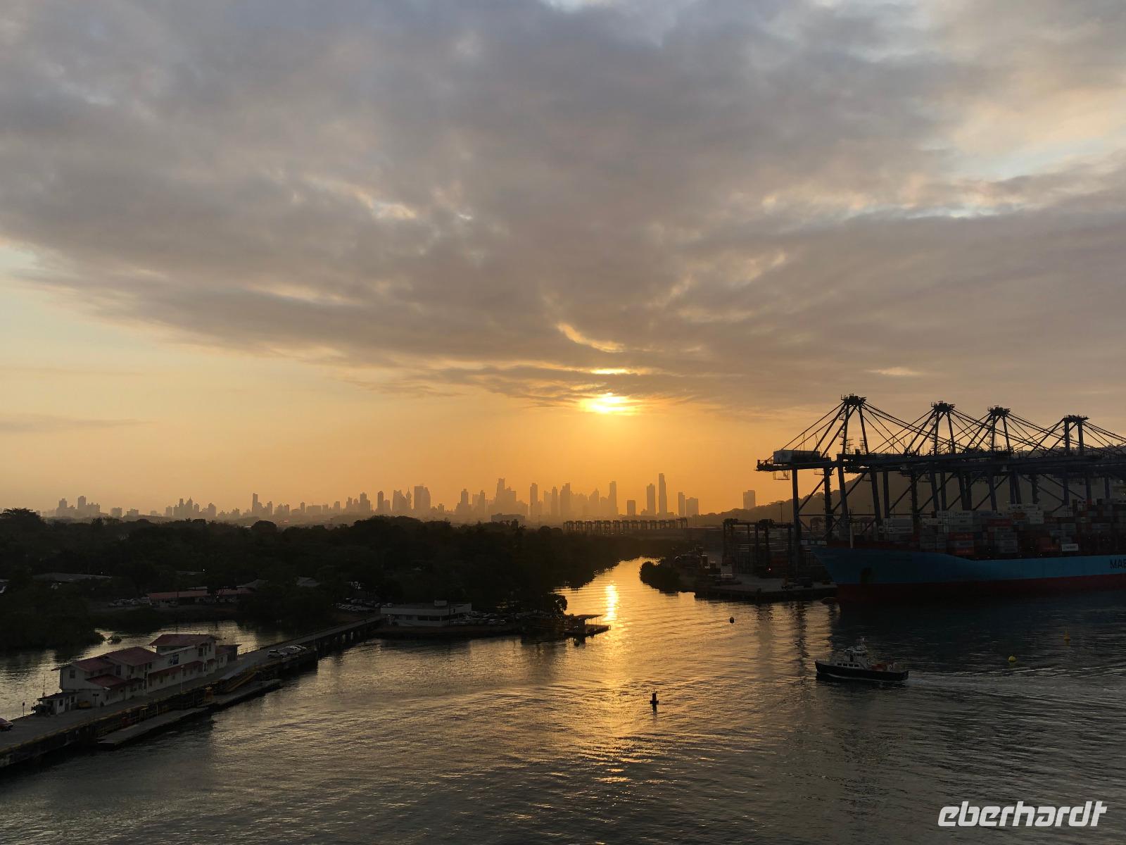 Endlich war der Tag gekommen auf welchen wir uns vor Reiseantritt freuten. In den frühen Morgenstunden gegen 5:45 Uhr lief unser Schiff bei Panama City in den Panamakanal ein. Ca. eine Stunde später stand die Durchquerung der Miraflores und Pedro Miguell Schleuse an. Es dauerte einige Zeit bis sich die Becken genug füllten, um mit dem großen Schiff in Millimeterarbeit entlang der Schleusenwände zu fahren. Bei der weiteren Fahrt genossen wir die facettenreiche Landschaft welche sich anfangs von einer kargen Hügel-und Terrassenlandschaft in eine grüne karibische Seenlandschaft verwandelte. Wir erhielten einige Erklärungen zum aktuellen Standort durch eine Englische Reiseleiterin über die öffentlichen Lautsprecher.