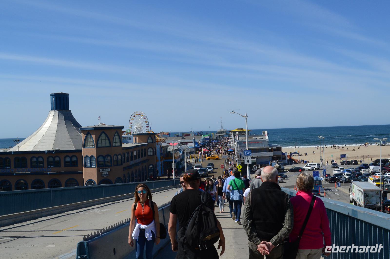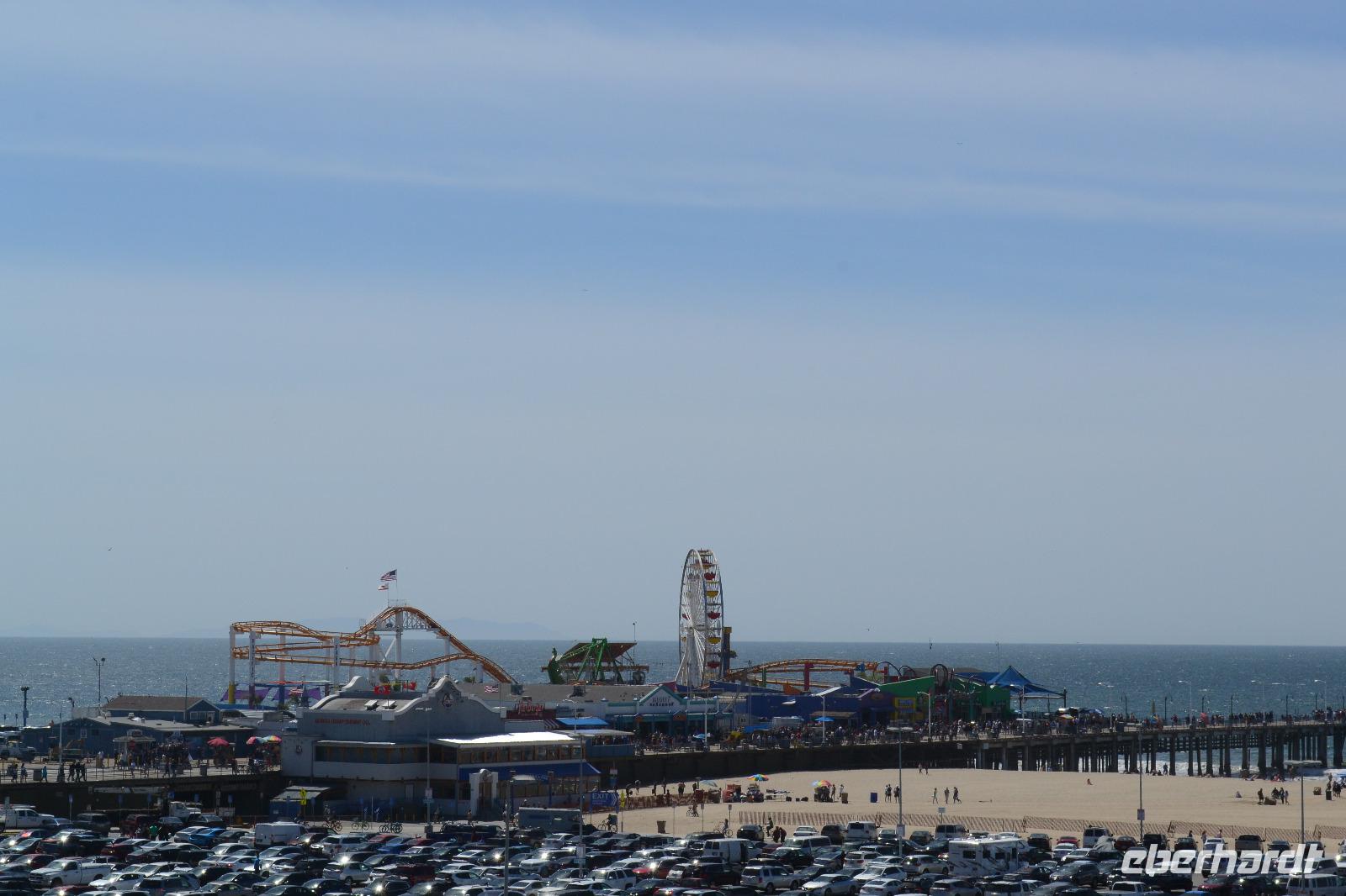 Um heute so viel wie möglich von Los Angeles und Umgebung zu sehen reisten wir bereits 7.30 Uhr weiter Richtung Süden. Die Stadt ist mit 17 Millionen Einwohner rein theoretisch die größte Stadt der USA. Doch durch die Unterteilung in verschiedenen Countys (Bundesländer) ist die Stadt gesplittet und kann nicht mehr als Ganzes betrachtet werden. Somit ist und bleibt New York die größte Stadt innerhalb eines Countys, der USA. Los Angeles zählt insgesamt 86 verschiedene Städte, wobei wir einige heute kennen lernten. Zunächst legten wir einen Fotostopp oberhalb von Santa Barbara ein um einen Blick auf die Stadt und die Bohrinsel zu erhaschen. Weiter ging es vorbei an Prominenten Villen am Strand von Malibu gelegen. Wir erhielten einen kleinen Einblick in das Haus von Sängerin Cher. Nur 15 weitere Minuten entfernt hatten erreichten wir den berühmten Santa Monica Pier und hatten ein wenig Freizeit für einen Besuch des kleinen Rummels oder Spaziergang entlang der Promenade. Um die Mittagszeit fuhren wir weiter nach Beverly Hills. Bekannt aus zahlreichen Filmen und Serien mit der gehobenen Einkaufsstraße Rodeo-Drive, sowie Wohnort zahlreicher Hollywood-Stars. So stellte man sich das Leben der Schönen und Reichen vor! Unser vorletzter Stopp der Stadtrundfahrt führte uns zu dem wohl bekanntesten Wahrzeichen der Stadt, nach Hollywood. Jeder von uns machte das Foto des Schriftzuges in den Hügeln des Millionär Viertels Bel Air. Die Buchstaben sind die Überreste eines eigentlich zum Verkauf angebotenen Landes der Familie Whitley namens Hollywood. Uns blieben zwei Stunden Freizeit um die Sterne des Walk of Fame abzulaufen, einen Blick auf das Dolby Theater zu werfen oder die Hand und Fußabdrücke auf dem Boden vor dem Chinese Theater zu bestaunen. Nach den zahlreichen Eindrücken der Weltmetropole wollte uns Reiseleiter Chris den Ursprung der Stadt nicht vorenthalten. Zwischen Finanzcenter und bekannten Firmen und Filmstudios wie Fox Studios befand sich eine kleine Kapelle und ein mexikanischer Platz. Dort lagen auf nur wenigen Quadratmeter die Anfänge der heutigen Millionenstadt. Mitten in Downtown lag unser Hotel für die heutige Nacht. Das Millennium Biltmore Hotel war Kulisse bekannter Serien und Filme. Beverly Hills Cop, Ghostbusters und zahlreiche Oscarverleihungen in den 1930er Jahren sind nur einige Produktionen.