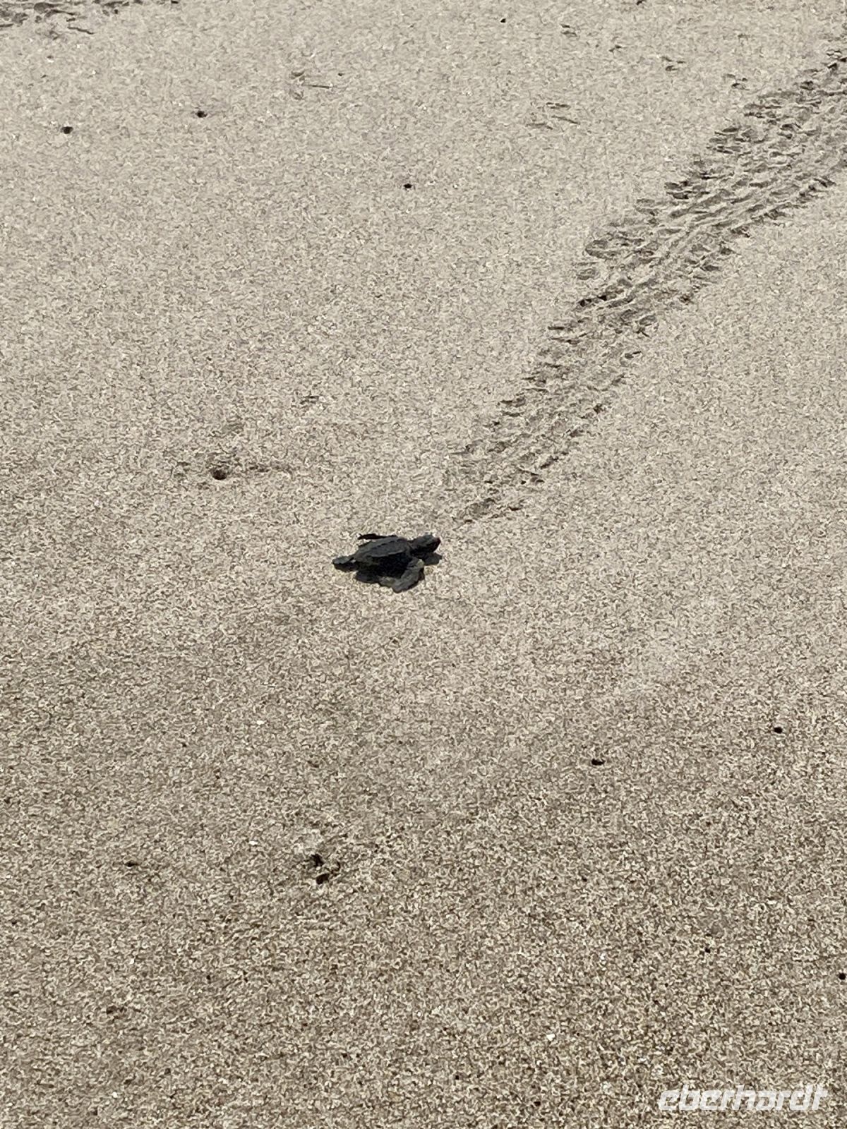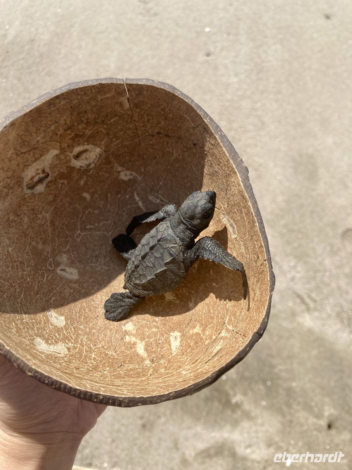 Wir lernten viel über die Schildkröten und ihren Lebenszyklus. Die Eier haben eine weiche Hülle ähnlich wie Pergamentpapier und die Größe und Form variieren je nach Art. Nachdem die Mutter ihre Eier gelegt hat, vergräbt sie sie sorgfältig im Sand, um sie zu schützen. 99% der Schildkröten sind Weibchen. Männchen sind weiter unten im Sand zu finden, wo es kühler ist. Ungefähr 100 Eier pro Nest gibt es. Die Schildkröten verlassen das Nest und Ei nach circa 45-60 Tagen.Wir hatten das einzigartige Erlebnis, einem Schildkrötenbaby einen Namen zu geben und es dann in den Sand zu setzen, wo es ins Meer schwamm. Es war eine unvergessliche und berührende Erfahrung, die uns die Bedeutung des Schutzes dieser faszinierenden Meeresbewohner näher brachte. In 12-15 Jahren kommen die Schildkröten genau an den Platz zurück, wo sie ausgesetzt wurden.