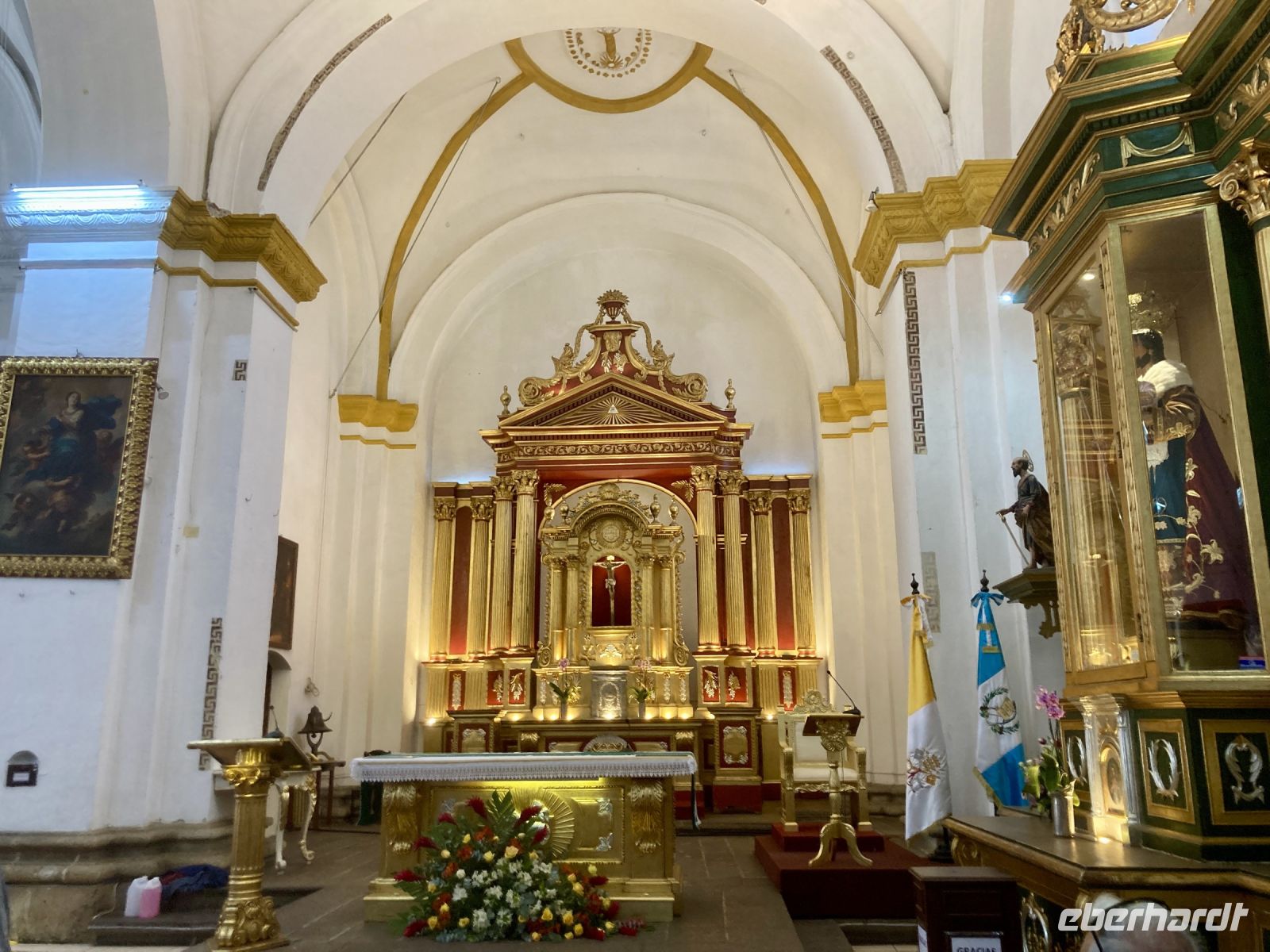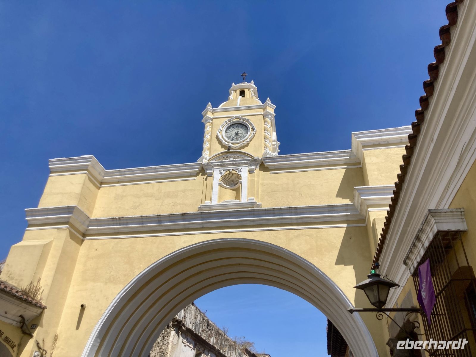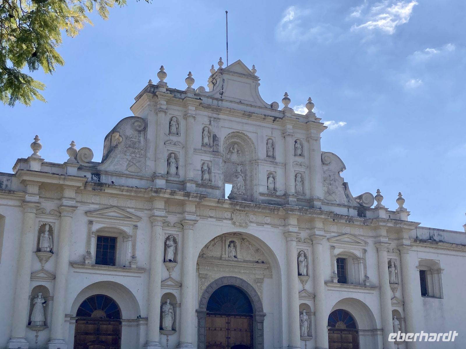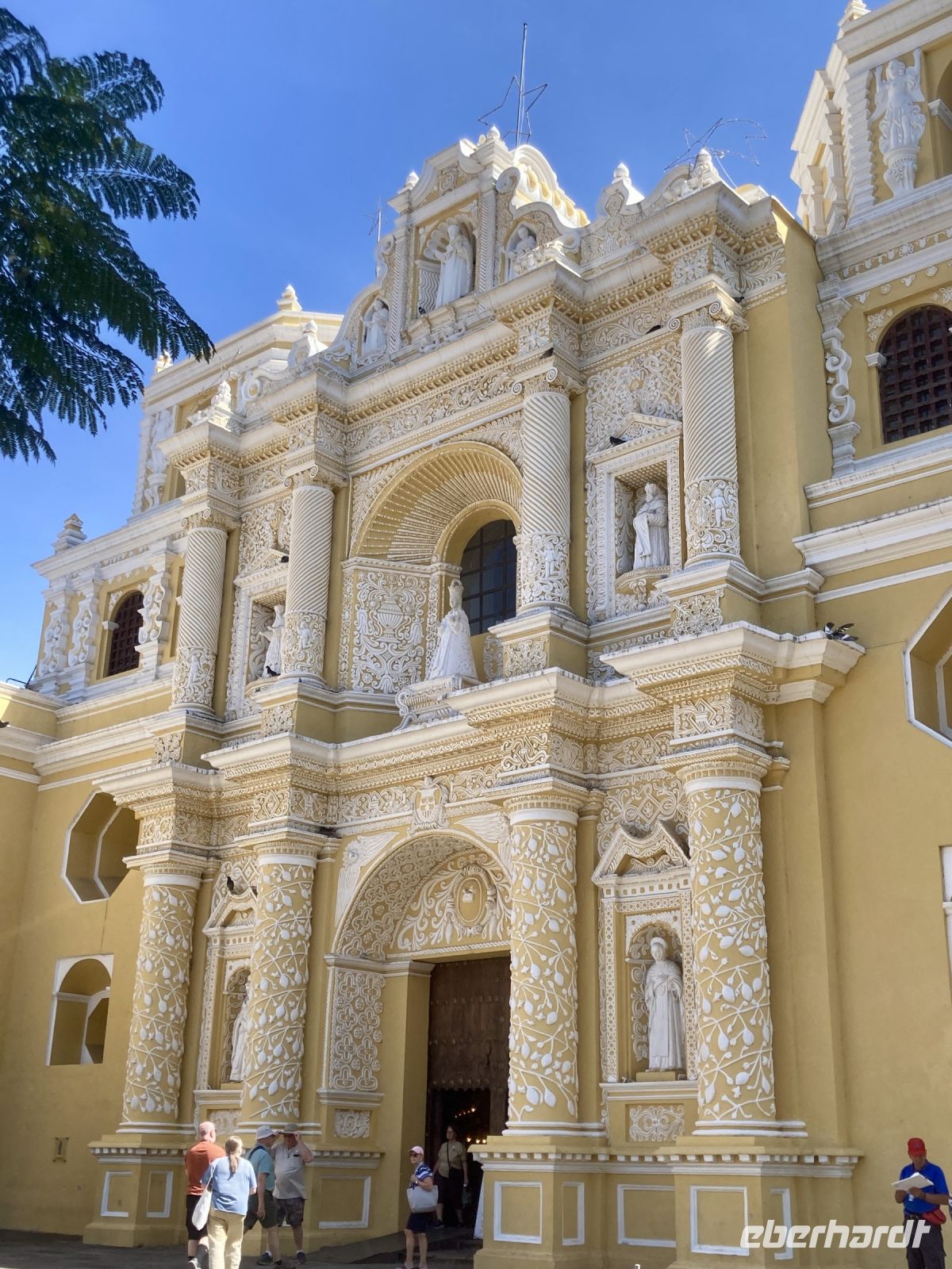 Unser erster Stopp war in Antigua, einer Stadt, die im Jahr 1553 gegründet wurde. Früher war Kaffee eine wichtige Einnahmequelle, aber 1773 wurde die Stadt durch ein Erdbeben zerstört. Wir hatten die Gelegenheit, den Vulkan Agua y Fuego zu sehen und besuchten eine Kolonialkirche, die das Erdbeben überstanden hat.