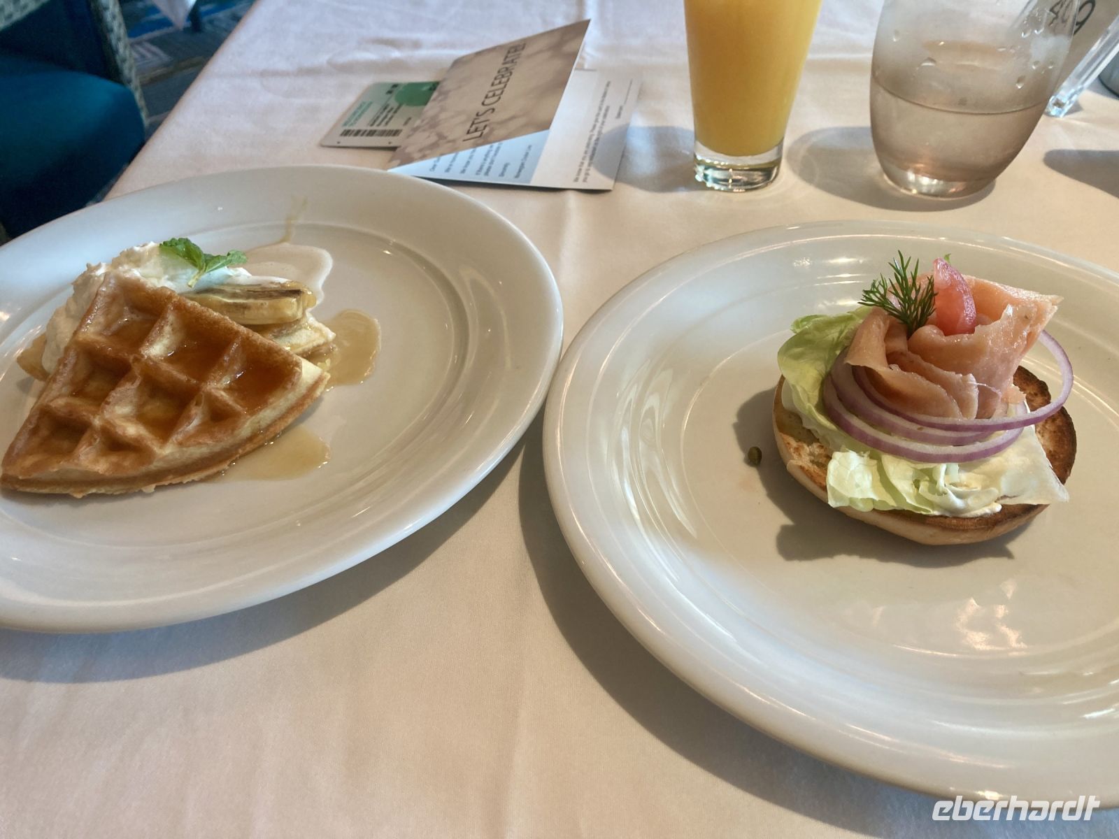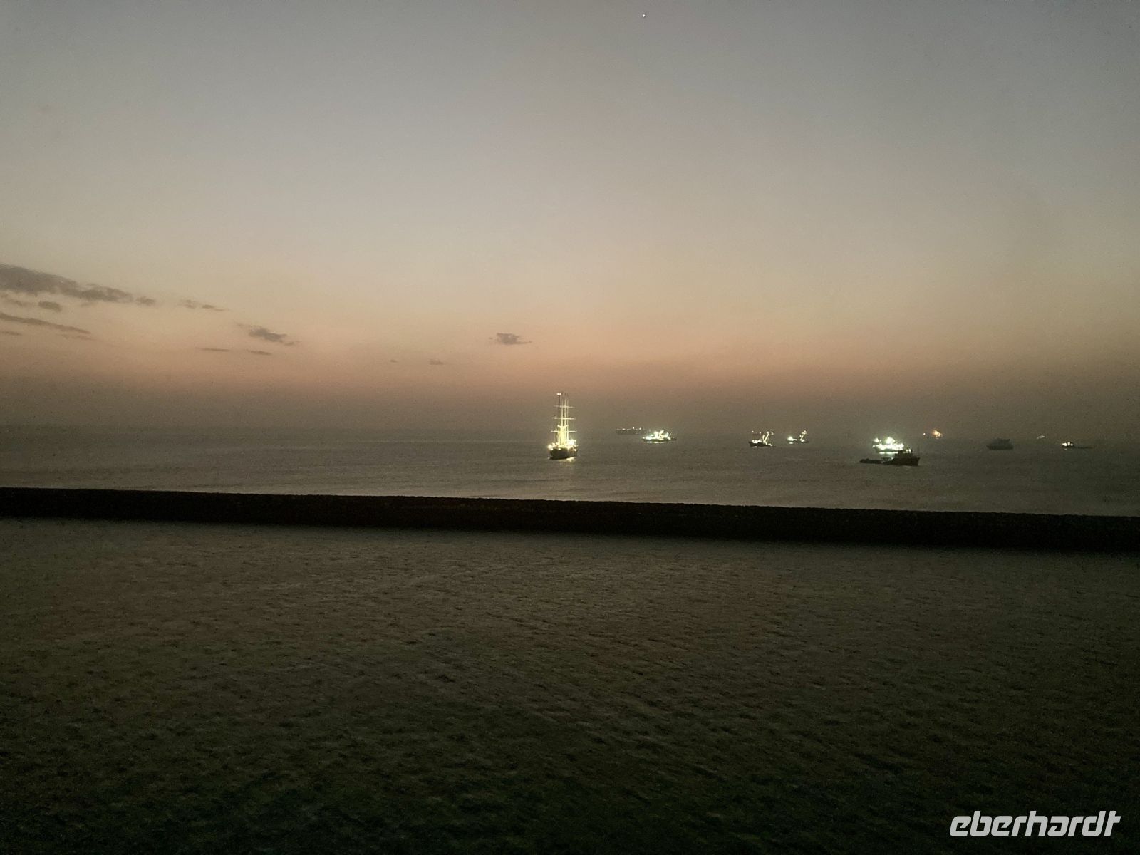 Am Abend aßen wir im Buffetrestaurant Garden Café, wo jeder Gast seine Mahlzeiten selbst auswählen und zusammenstellen kann. Das Essen war köstlich und die Auswahl riesig. Anschließend besuchten wir die Observation Lounge, von der aus man eine atemberaubende Aussicht auf das Meer hat.