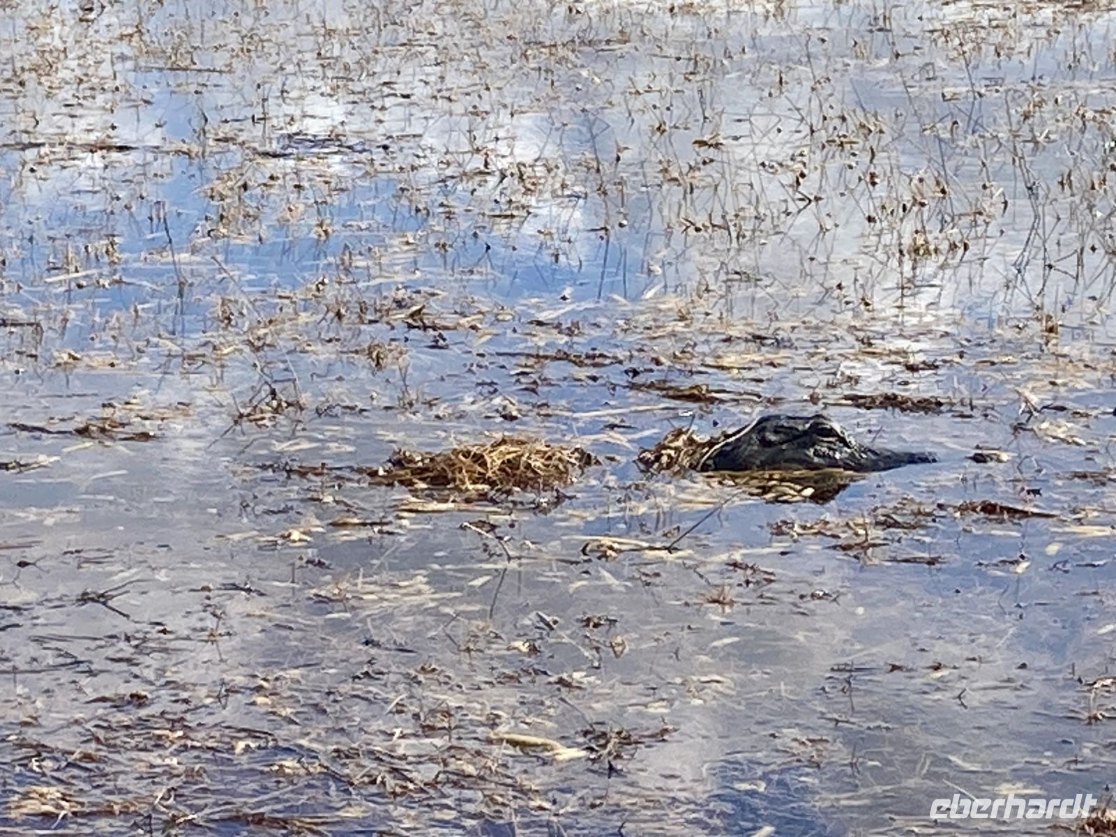 Während unserer Weiterfahrt konnten wir einen schwarzen Stoffzaun sehen, der dazu dient, die Frösche zu schützen. Wir lernten auch, dass Alligatoren in der Lage sind, Schildkrötenpanzer zu knacken. Interessanterweise sind die Everglades der einzige Ort, an dem Alligatoren und Krokodile in unmittelbarer Nähe leben. Wir erfuhren außerdem, dass Alligatoren mit geöffnetem Maul schlafen können und Monate oder sogar Jahre ohne Nahrung auskommen können. Der Name "Everglades" leitet sich vom Ausdruck "everywhere Glades" ab.