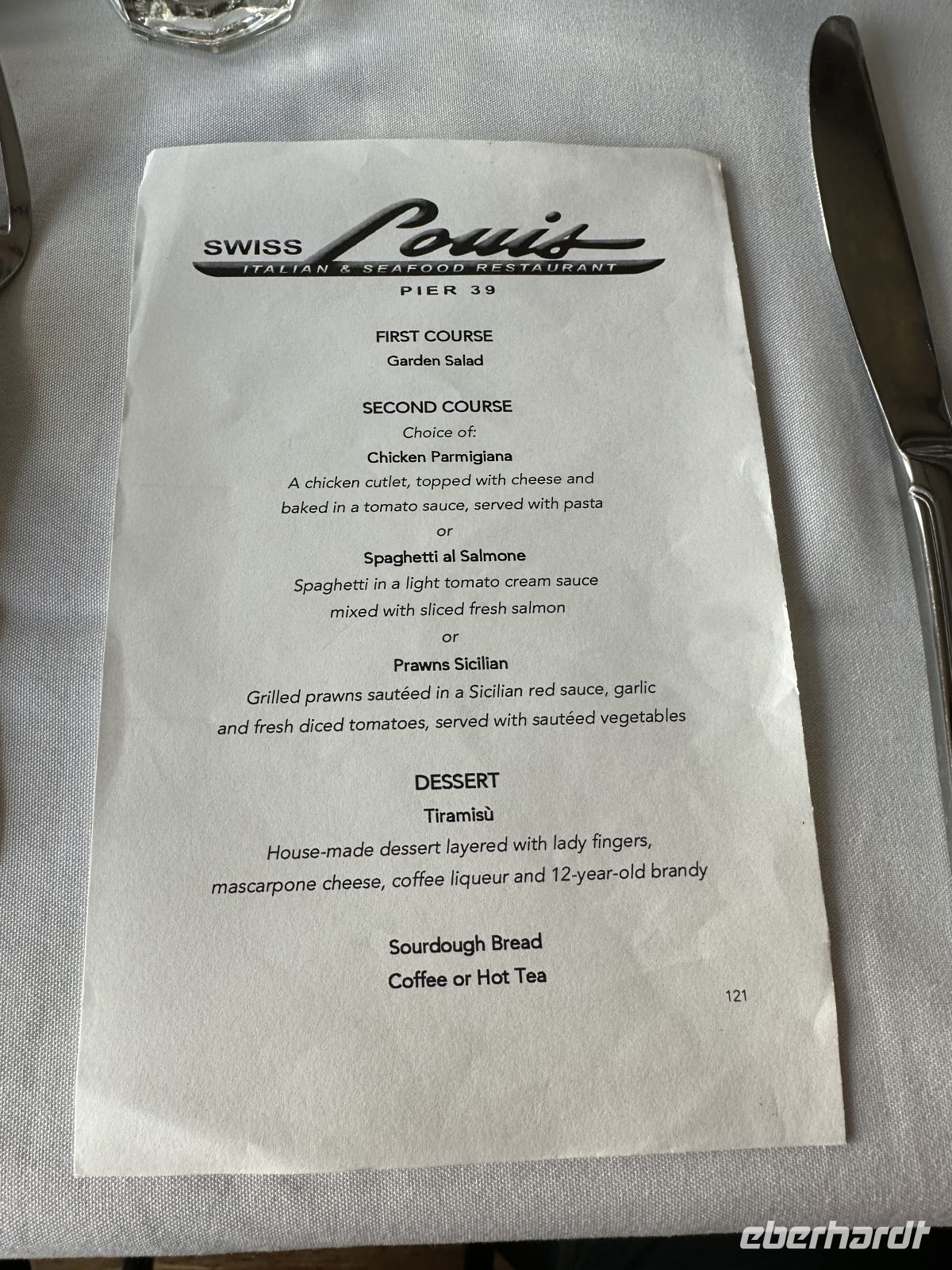 Nun ist es Zeit, bei Swiss Louis, einem italienischen Seafoodrestaurant, einzukehren. Zur Auswahl stehen Fleisch- Fisch- und vegetarische Gerichte. Die Bedienung ist schnell und freundlich, das Essen sehr gut und sehr viel. Bevor wir zum Hotel zurückfahren, gönnen wir uns die Zeit für einen weiteren Bummel durch die Geschäfte.