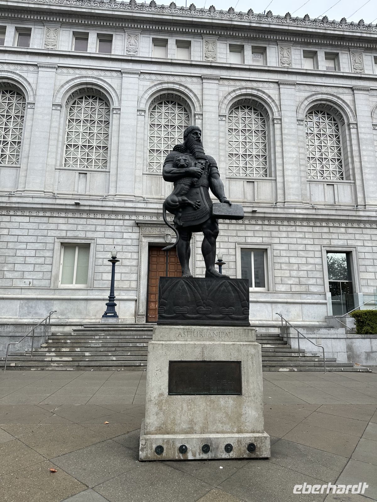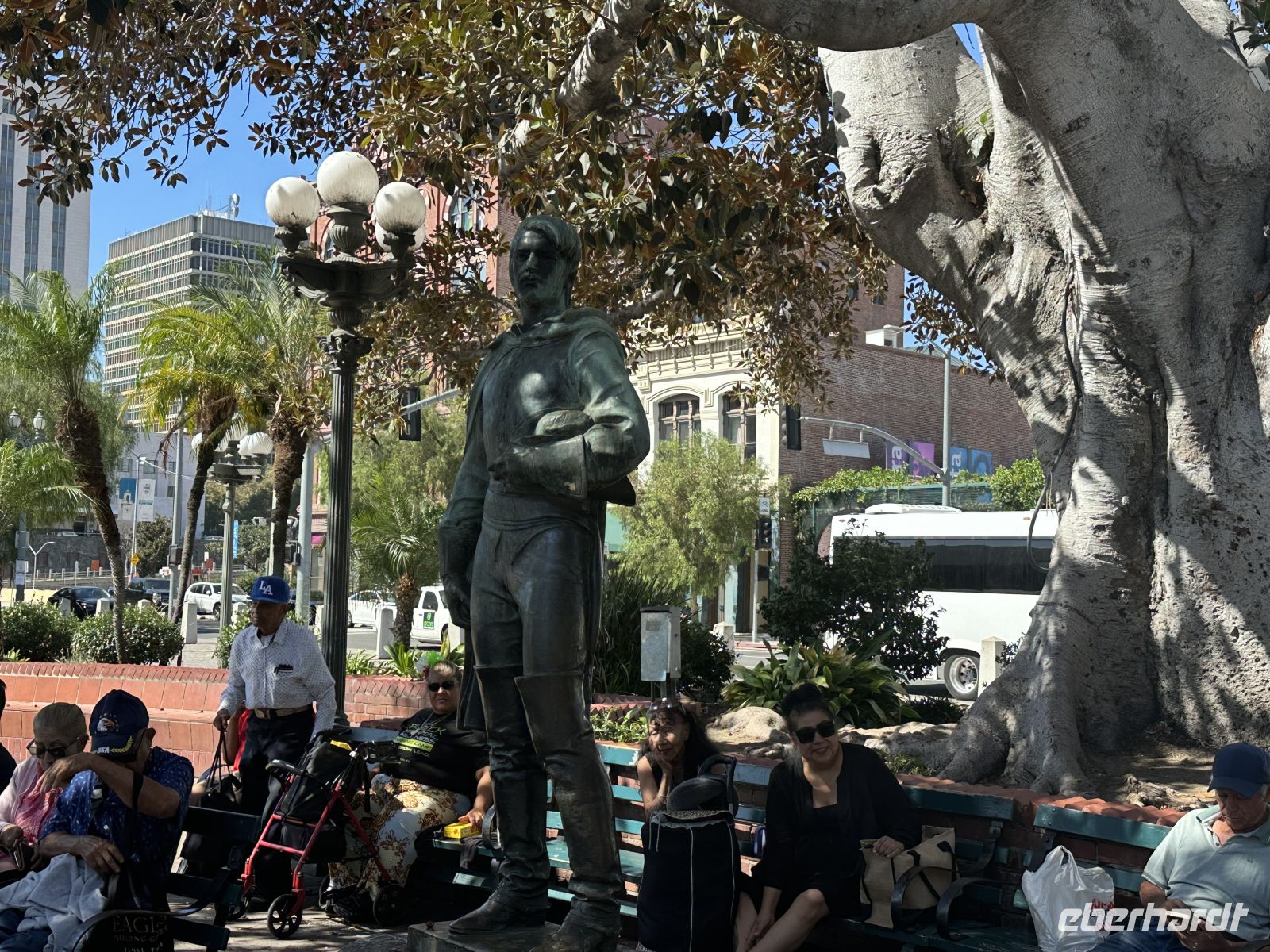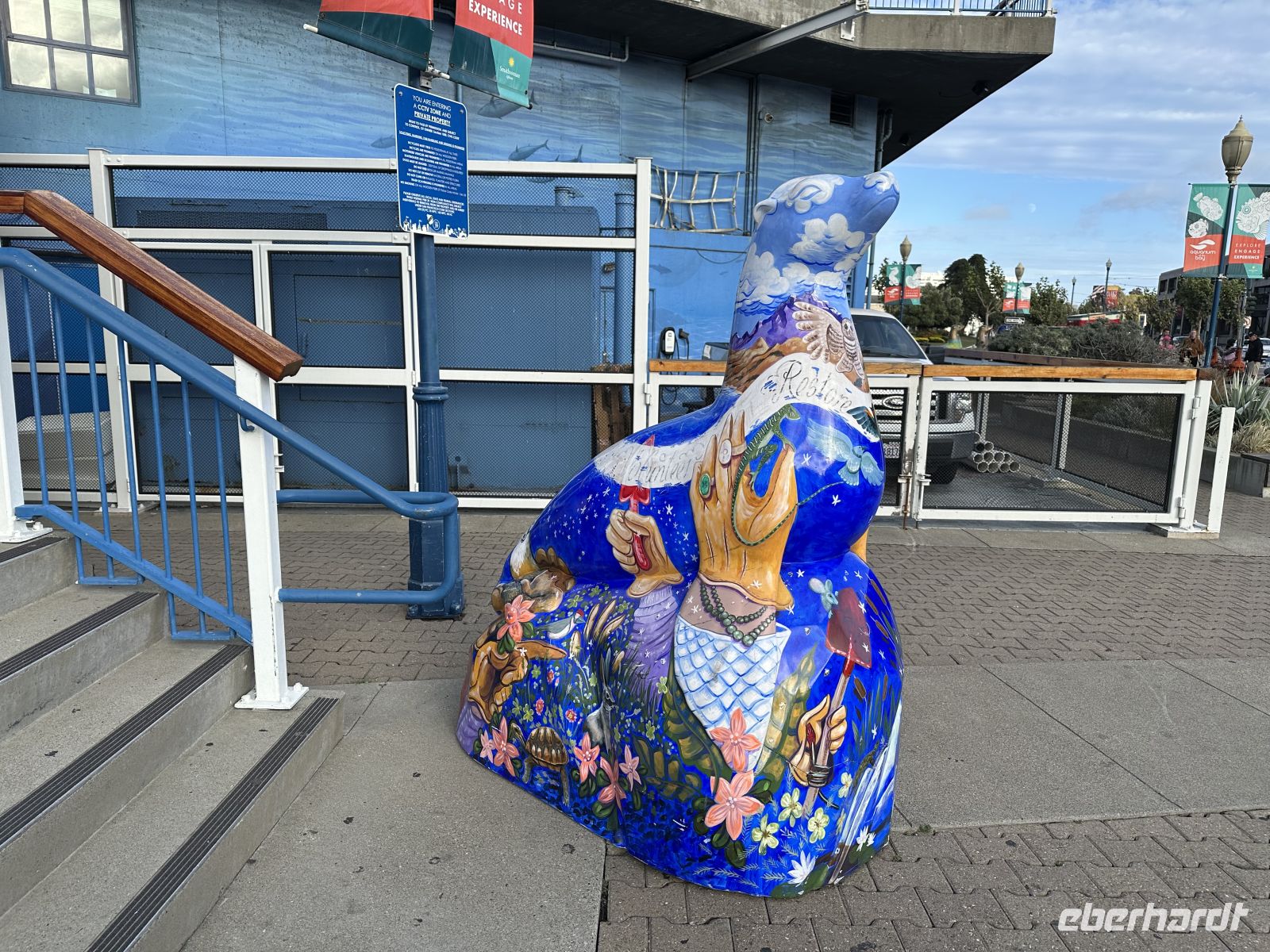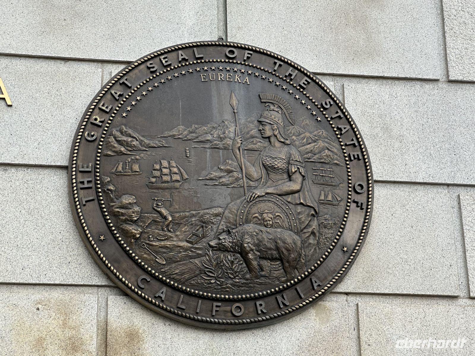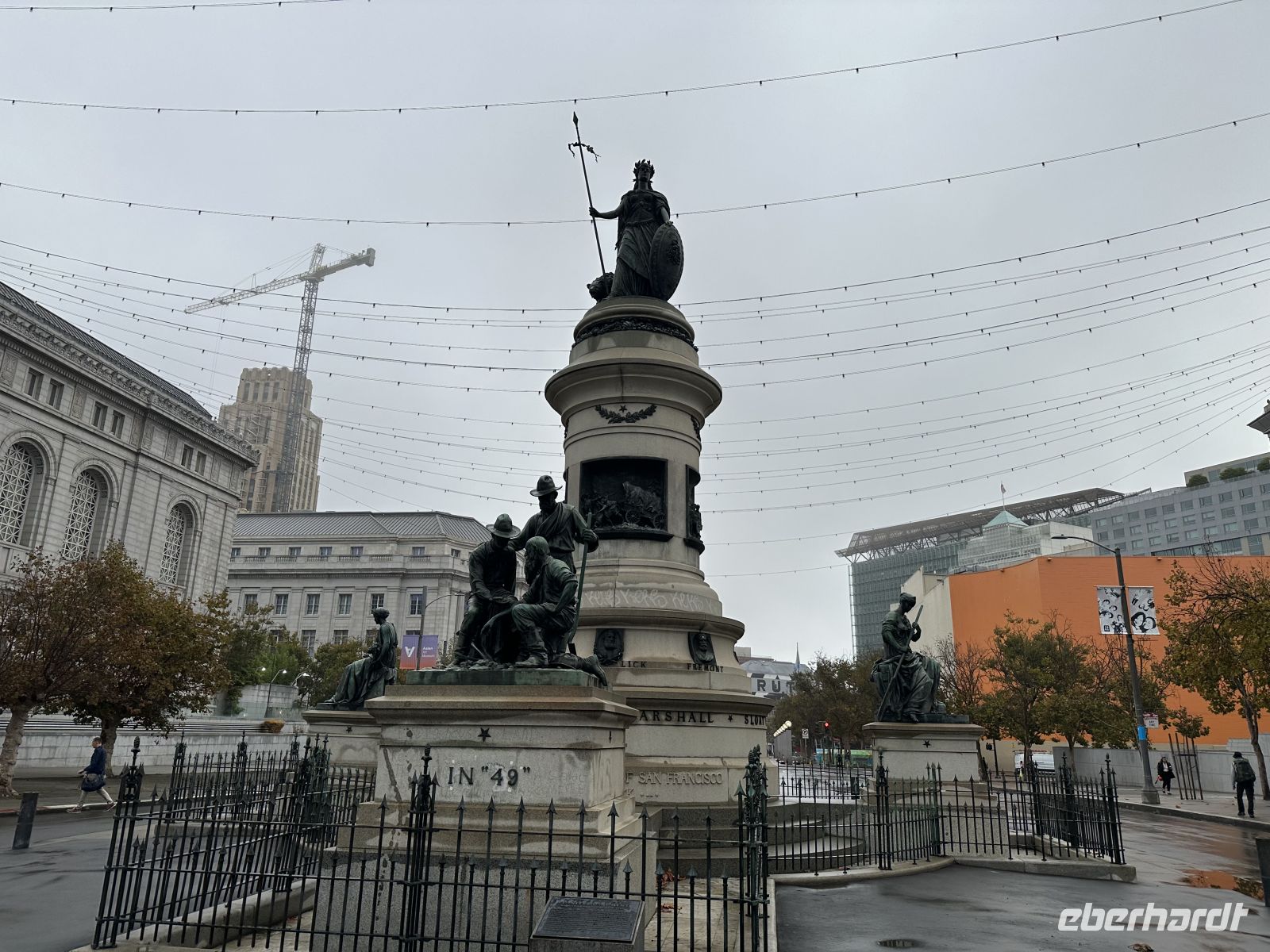 Den ersten Fotostopp unserer Stadtrundfahrt legen wir am Rathaus ein. Dieses Gebäude erinnert an europäische Prachtbauten. Sein unbestrittenes Highlight ist die gigantische goldene Kuppel. Sie ist von so beeindruckender Größe und Höhe, dass sie sogar das Kapitol in Washington D.C. überragt. Der goldglänzende Bau thront majestätisch über dem Civic Center Plaza und ist ein tolles Fotomotiv. Ganz in der Nähe befindet sich auch das Cannery Row Monument, was wir uns zuerst anschauen. Das Monument zeigt neun Bronzefiguren, die wichtige historische und fiktive Charaktere darstellen. Außerdem gibt es Figuren, die einen chinesischen Fischer und Konservenfabrikarbeiter darstellen. Sie würdigen die vielen Menschen aus verschiedenen Kulturen, die in der Sardinenindustrie arbeiteten, bevor diese zusammenbrach. Eine Gruppe von vier Bronzefiguren, die wie Kartenspieler oder Herumtreiber dargestellt sind eine Anspielung auf die "freundlichen Faulenzer" aus Steinbecks Roman. Zusätzlich zu den neun Hauptfiguren sind 13 bronzene Frösche im Sockel versteckt, eine weitere Anspielung auf eine Anekdote aus Steinbecks Roman. Wir kehren zurück zum Bus und setzen unsere Stadtbesichtigung fort.