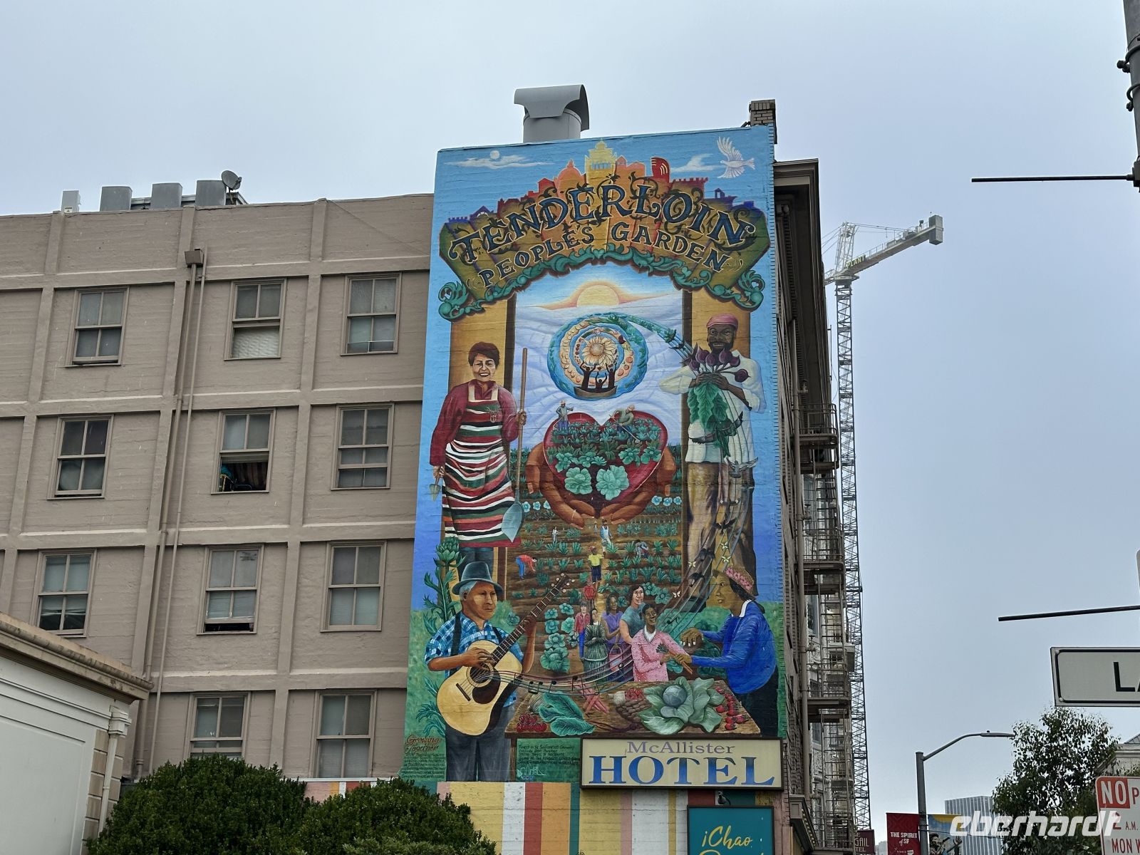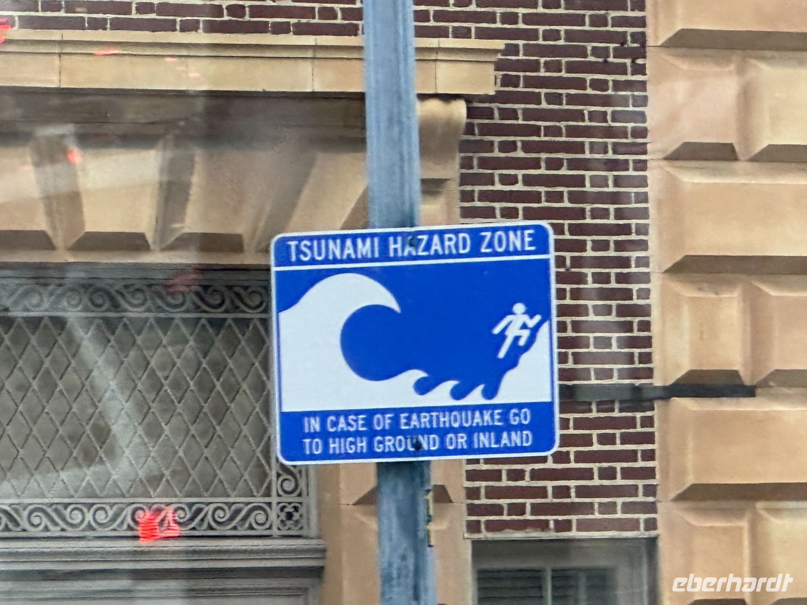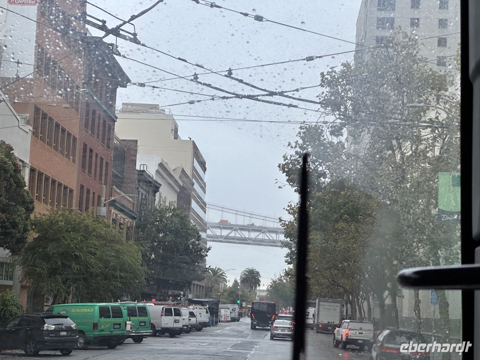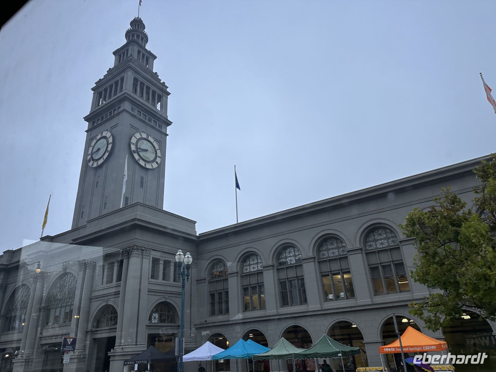 Heute sind wir den ganzen Tag in San Francisco unterwegs. Direkt neben unserem Bus fährt eine historische Straßenbahn, warum das so ist, erzählt uns Evelyn. Der Plan für eine historische Straßenbahnlinie auf der Market Street wurde bereits in den 1970er Jahren diskutiert. Die Idee wurde durch die „Trolley Festivals“ (Straßenbahn-Festivals) zum Leben erweckt, die von 1983 bis 1987 auf der Market Street stattfanden, um während der Sanierung des Cable Car Systems eine historische Nahverkehrsalternative zu bieten. Zu diesem Zweck wurden historische Straßenbahnen aus San Francisco, anderen US-Städten und dem Ausland (z. B. aus Hamburg oder Mailand) eingesetzt. Der Erfolg dieser Festivals führte zum Beschluss, einen permanenten historischen Straßenbahnbetrieb einzurichten. Die F-Linie wurde am 1. September 1995 als ganzjähriger Dienst eröffnet. Die F Market & Wharves Linie ist einzigartig, da sie fast ausschließlich historische Triebwagen aus der Zeit vor 1960 verwendet. Die Flotte besteht hauptsächlich aus Straßenbahnen, die in den Farben von Städten bemalt sind, in denen dieser Wagentyp einst fuhr, sowie aus historischen Straßenbahnen aus aller Welt (z. B. Mailänder Triebwagen von 1928). Sie dient somit als ein „Fahrendes Museum“.