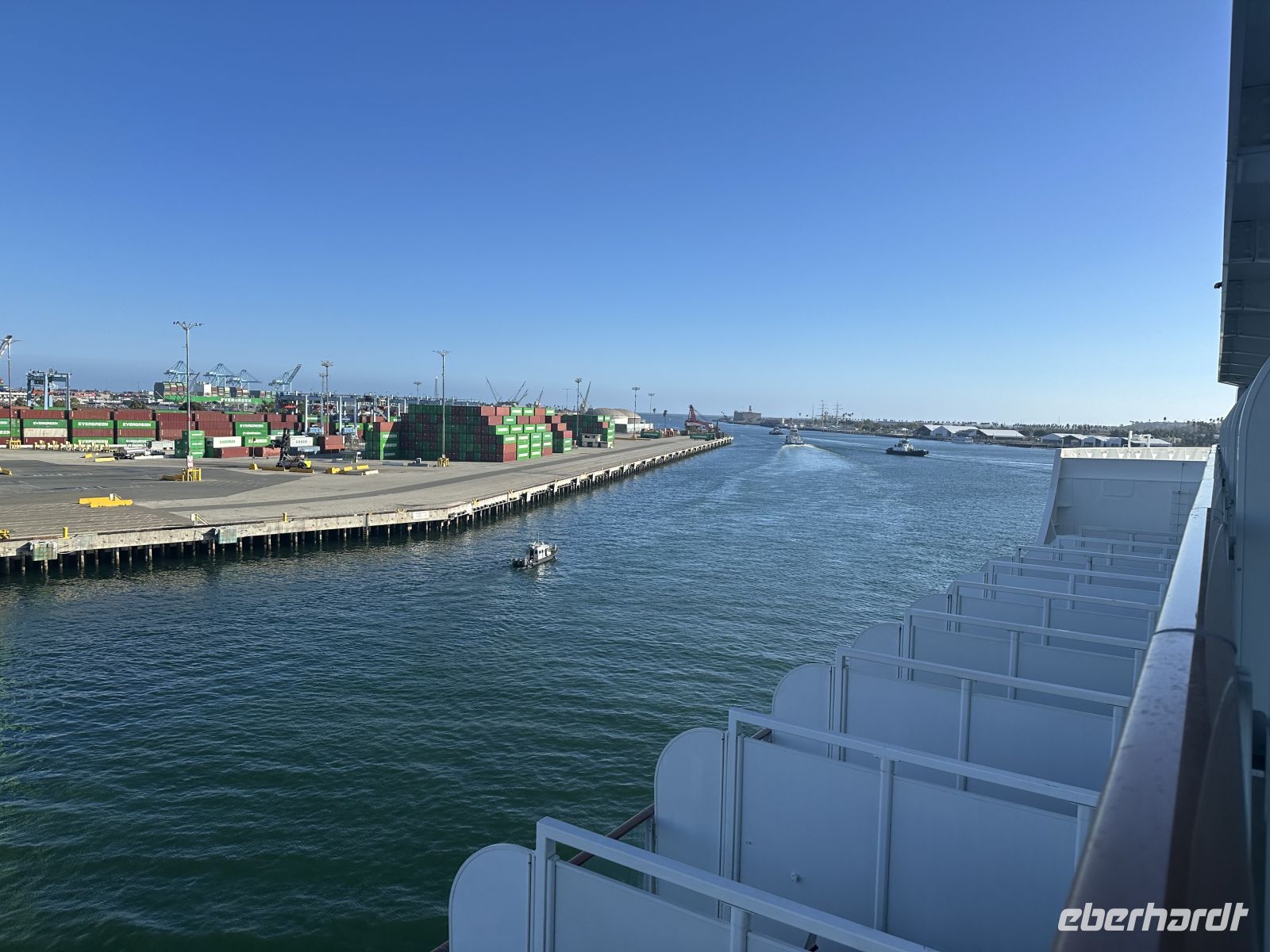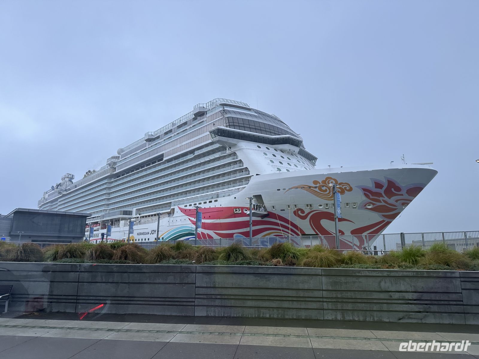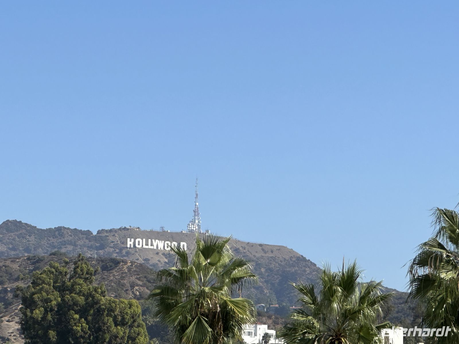Wir spazieren über den Rodeo Drive, eine rund 3,2 Kilometer lange und in einen nördlichen und südlichen Abschnitt untergliederte Straße, die seit den 1970er Jahren zu einer der exklusivsten Einkaufs- und Flaniermeilen der Welt avancierte und sind fast alleine hier. Nur ein Auto mit dröhnendem Motor braust an uns vorbei. Unser nächstes Ziel ist der Walk of Fame. Hier entdecken wir auf den Sternen viele bekannte Namen. Dieser Gehweg in Hollywood erstreckt sich über 15 Häuserblöcke zu beiden Seiten des Hollywood Boulevard und umfasst derzeit über 2.700 in den Boden eingelassene Sterne (Stand 2024), welche Prominente aus den Kategorien Film, Fernsehen, Musik, Radio und Theater ehren. Hier entdecken wir auf den Sternen viele bekannte Namen. Wir begegnen Spiderman und Thor, die sich bereitwillig fotografieren lassen und anschließend von jedem fünf Dollar kassieren. Wir besuchen das Dolby Theatre, in dem seit 2002 die jährliche Oscar-Verleihung der Academy of Motion Picture Arts and Sciences stattfindet. Das Theater, das über 3.400 Sitzplätze verfügt und ursprünglich als Kodak Theatre eröffnet wurde, ist speziell für die Gala konzipiert und befindet sich im Herzen des Ovation Hollywood Komplexes. Vom Balkon aus haben wir einen guten Blick auf die HOLLYWOOD Buchstaben. Diese berühmten weißen Großbuchstaben auf dem Mount Lee wurden ursprünglich 1923 als Werbung für ein Immobilienprojekt errichtet und standen zunächst für "HOLLYWOODLAND". Ein paar Minuten haben wir noch, um durch LaLa Land, einen großen Souvenirladen zu streifen oder individuell spazieren zu gehen. Zum Schluss fahren wir noch nach Down Town, werfen einen Blick auf die Wolkenkratzer und besuchen das älteste Haus in L.A.. Nun heißt es Abschied nehmen von Evelyn. Wir checken ein in die Norwegian Joy, unsere Kreuzfahrt beginnt.