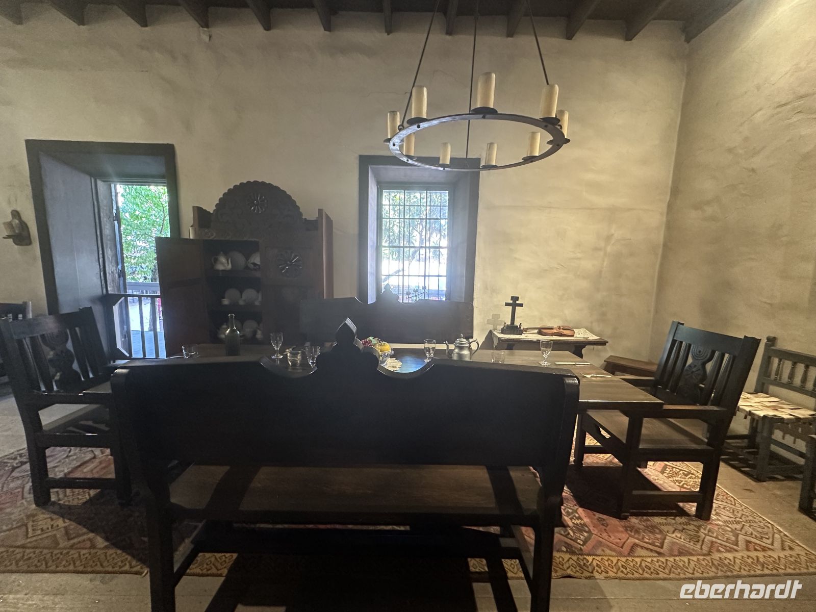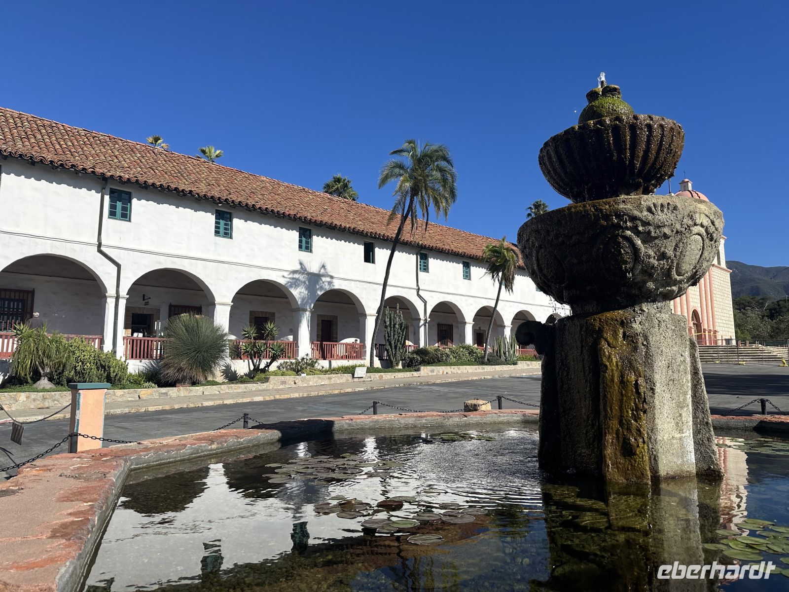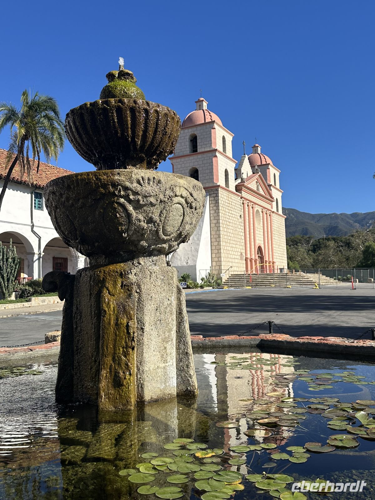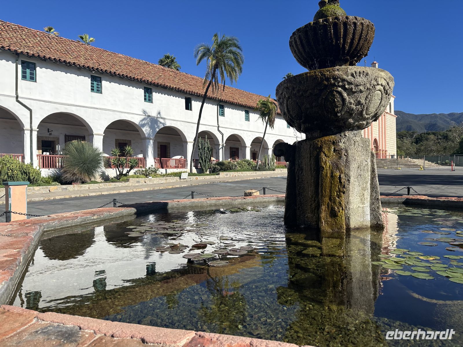 Am Vormittag besuchen wir die Mission von Santa Barbara. Eigentlich mehr zum Harmoniestopp, aber plötzlich taucht ein Mönch auf und überrascht uns mit Informationen. Die Mission wurde am 4. Dezember 1786 von Pater Fermín Lasuen, dem Nachfolger von Junipero Serra, gegründet und war die zehnte der 21 kalifornischen Missionen. Wie die anderen Missionen diente sie der Bekehrung der einheimischen Chumash-Bevölkerung zum katholischen Glauben, der Kolonisierung des Gebiets für Spanien und der Einführung spanischer Landwirtschafts- und Handwerkstechniken. Die getauften Chumash-Ureinwohner lebten in der Mission und leisteten den Großteil der Bau- und Arbeitsarbeiten, einschließlich der Errichtung eines komplexen Bewässerungssystems. Tausende Chumash sind auf dem Friedhof der Mission begraben. Die heutige große Steinkirche wurde nach einem Erdbeben im Jahr 1812 errichtet und größtenteils bis 1820 fertiggestellt. Die Mission Santa Barbara ist die einzige der 21 kalifornischen Missionen, die seit ihrer Gründung ununterbrochen vom Franziskanerorden geleitet und bewohnt wird. Sie dient heute als aktive Pfarrkirche der Erzdiözese Los Angeles und ist weiterhin die Heimat einer franziskanischen Gemeinschaft von Mönchen.