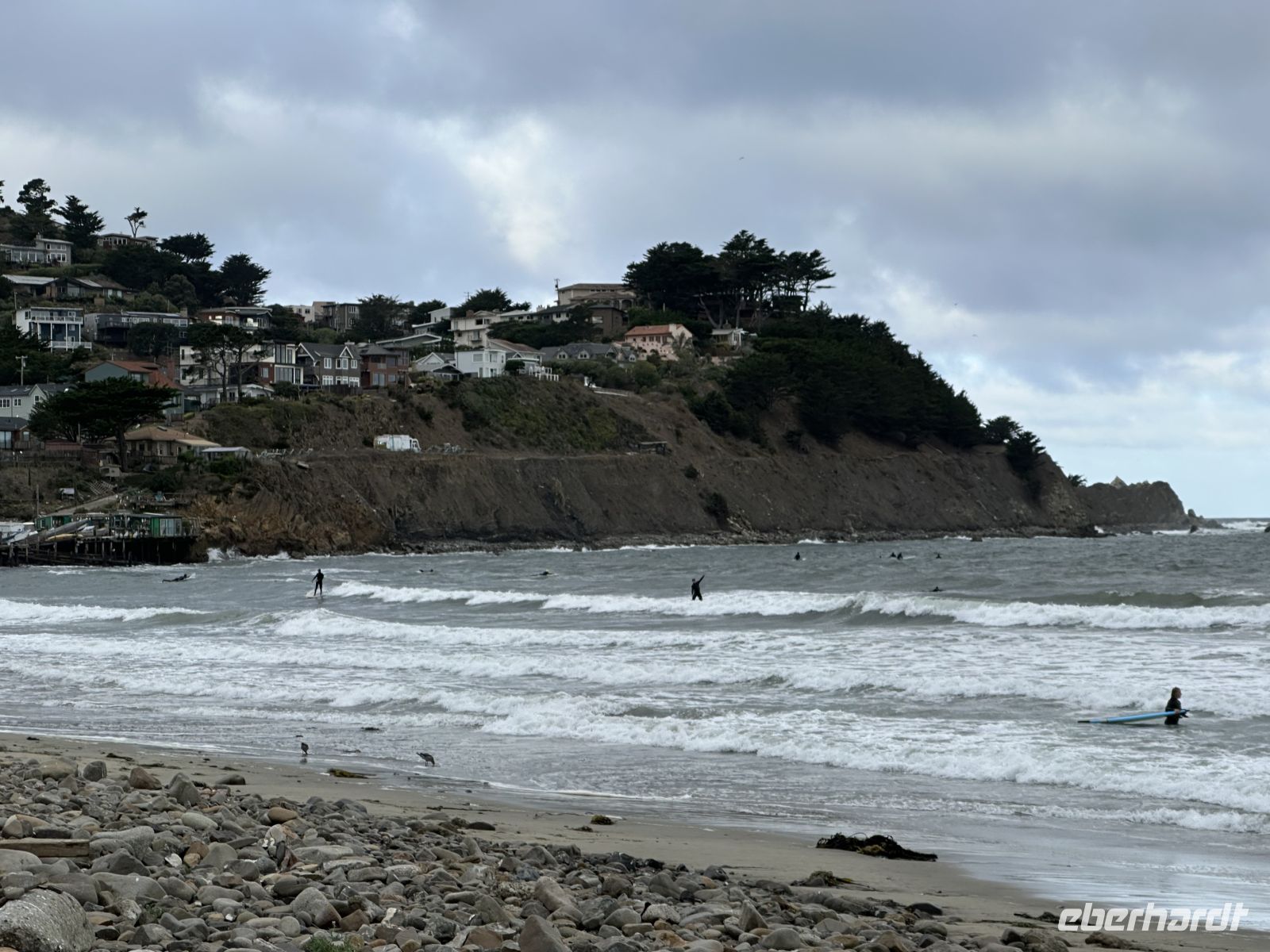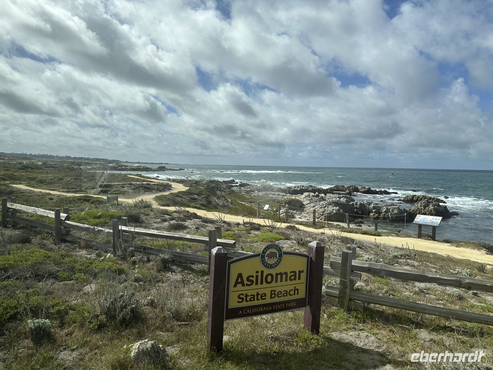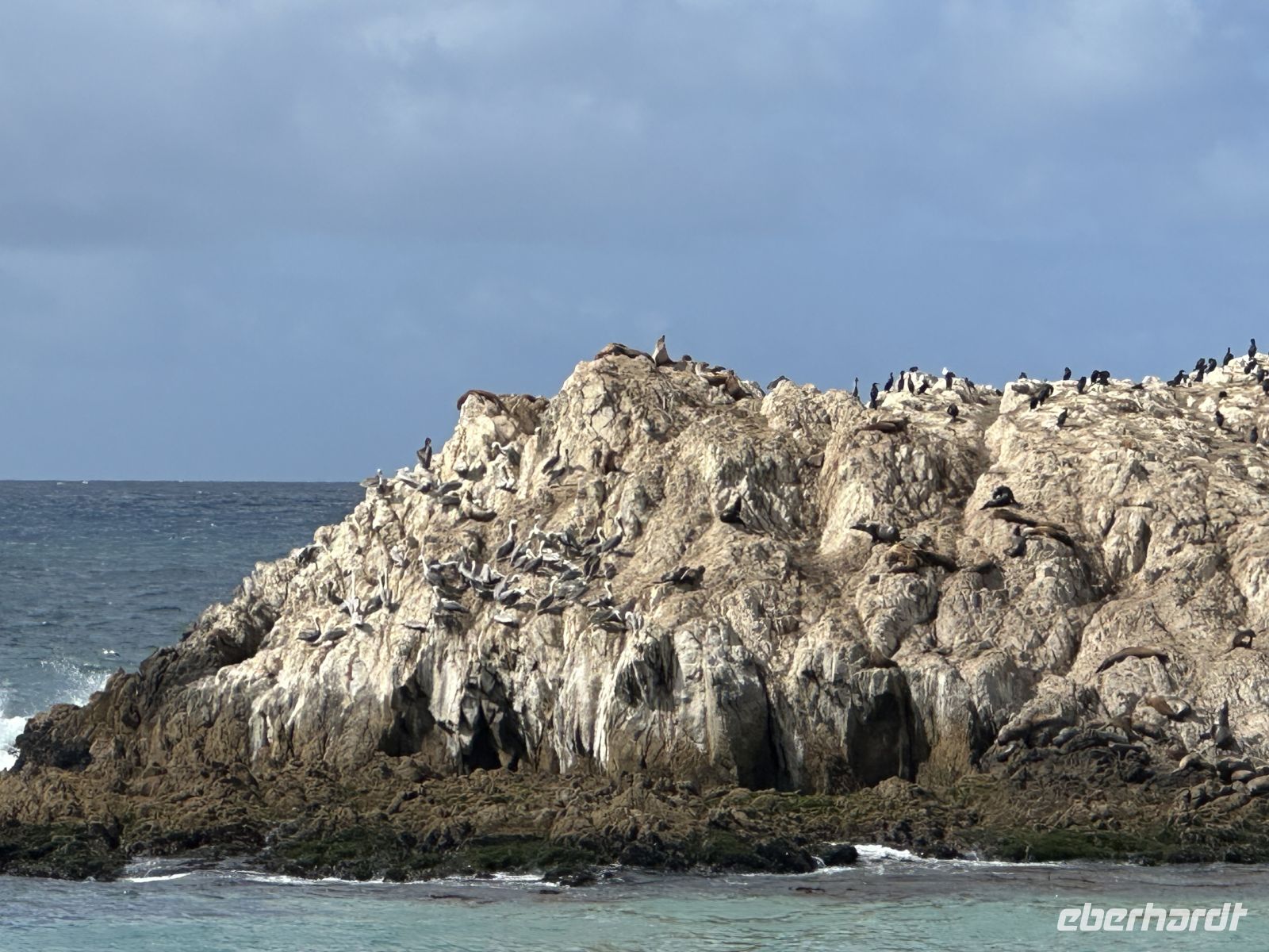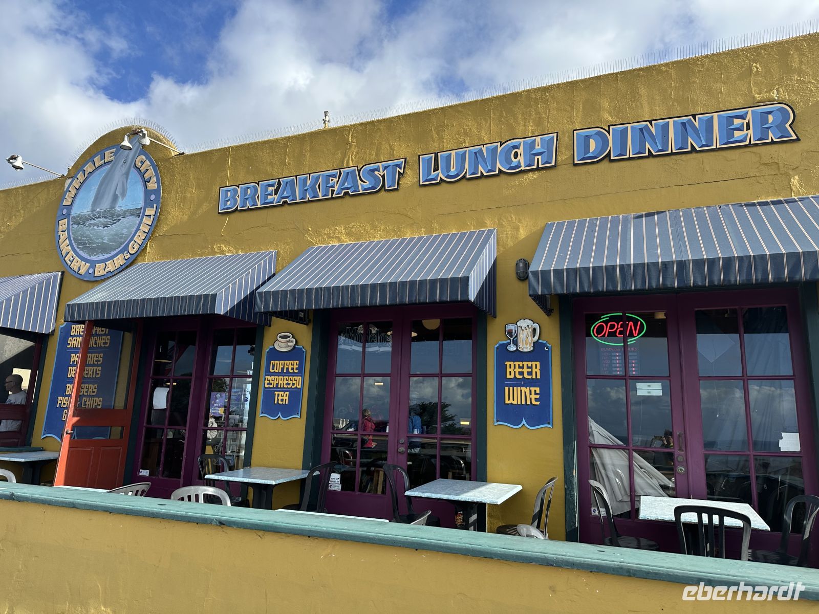 Wir starten nach dem Frühstück mit gepackten Koffern. Ein langer Reisetag liegt vor uns. Unser Fahrer muss tanken und so legen wir einen ungeplanten Fotostopp am Pazifik ein. In den rollenden Wellen tummeln sich mutige Wellenreiter. Wir haben ein paar Minuten Zeit, ihnen zuzusehen. Zwei Stunden später legen wir eine Rast in Davenport ein. Mittags erreichen wir Monterey und haben Zeit zum Mittagessen und Bummeln. Einige von uns folgen der Empfehlung von Evelyn und probieren Clam Showder, eine köstliche Muschelsuppe. Vor dem Restaurant Bubba Gump steht die berühmte Bank mit der ebenso berühmten Pralinenschachtel und wartet geduldig darauf, fotografiert zu werden. Denn: Das Leben ist wie eine Pralinenschachtel, man weiß nie, was man bekommt. Am Pebblebeach legen wir wieder einen Fotostopp ein, lauschen dem Gebrüll der Seelöwen und amüsieren uns über die zutraulichen Erdhörnchen.