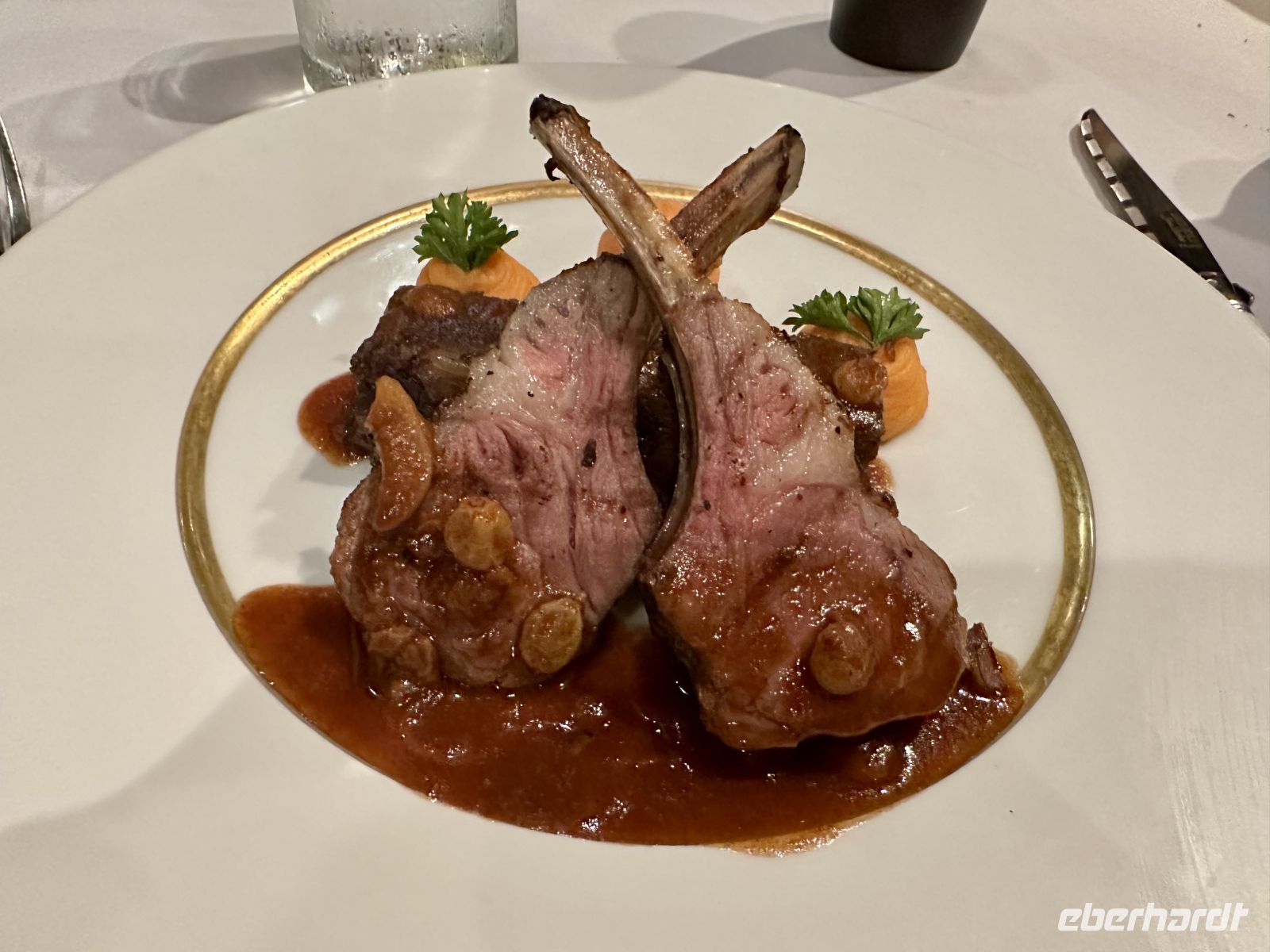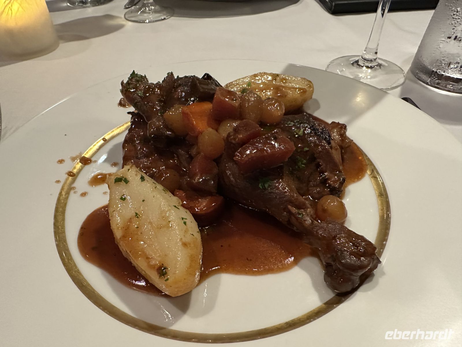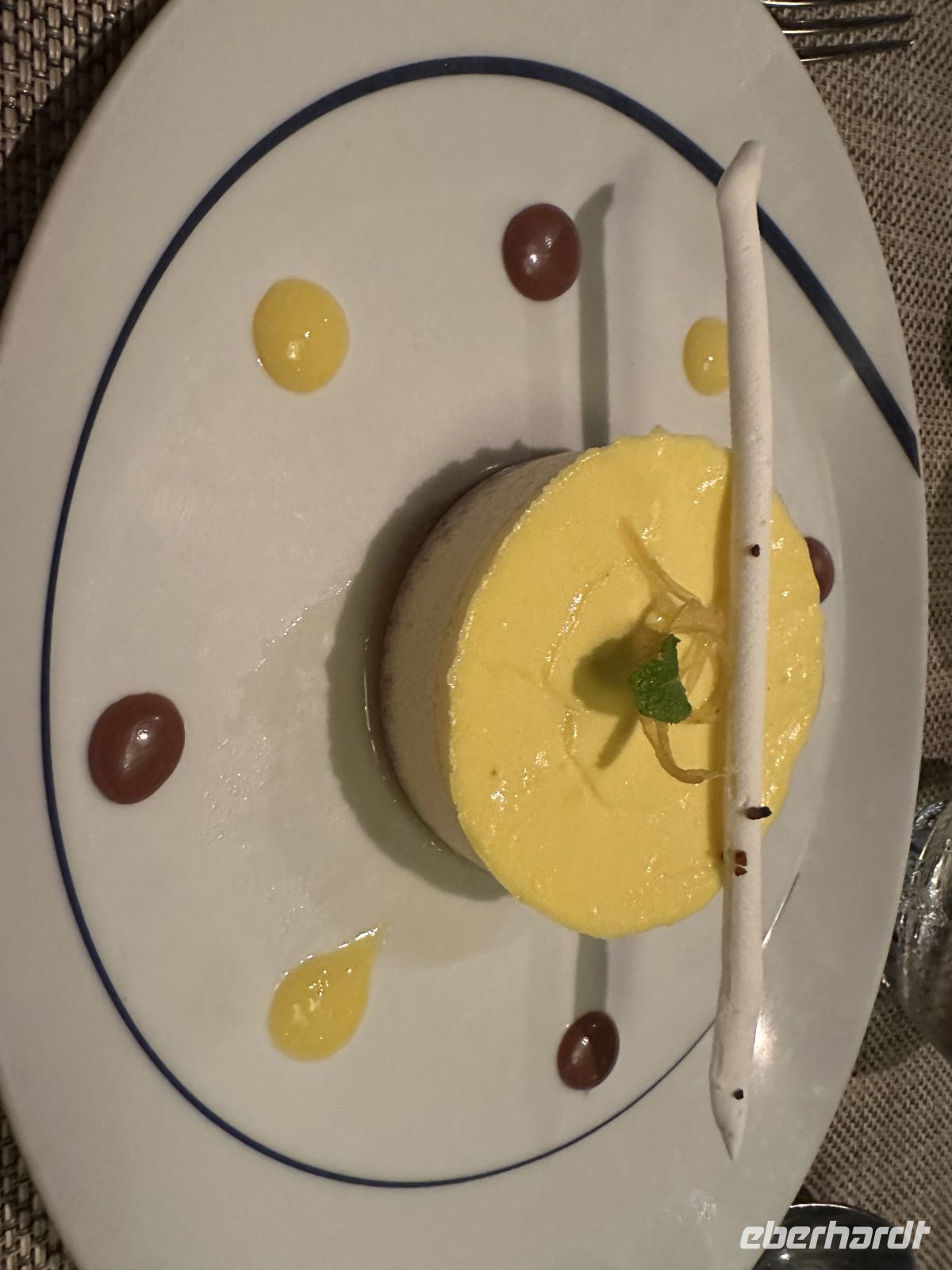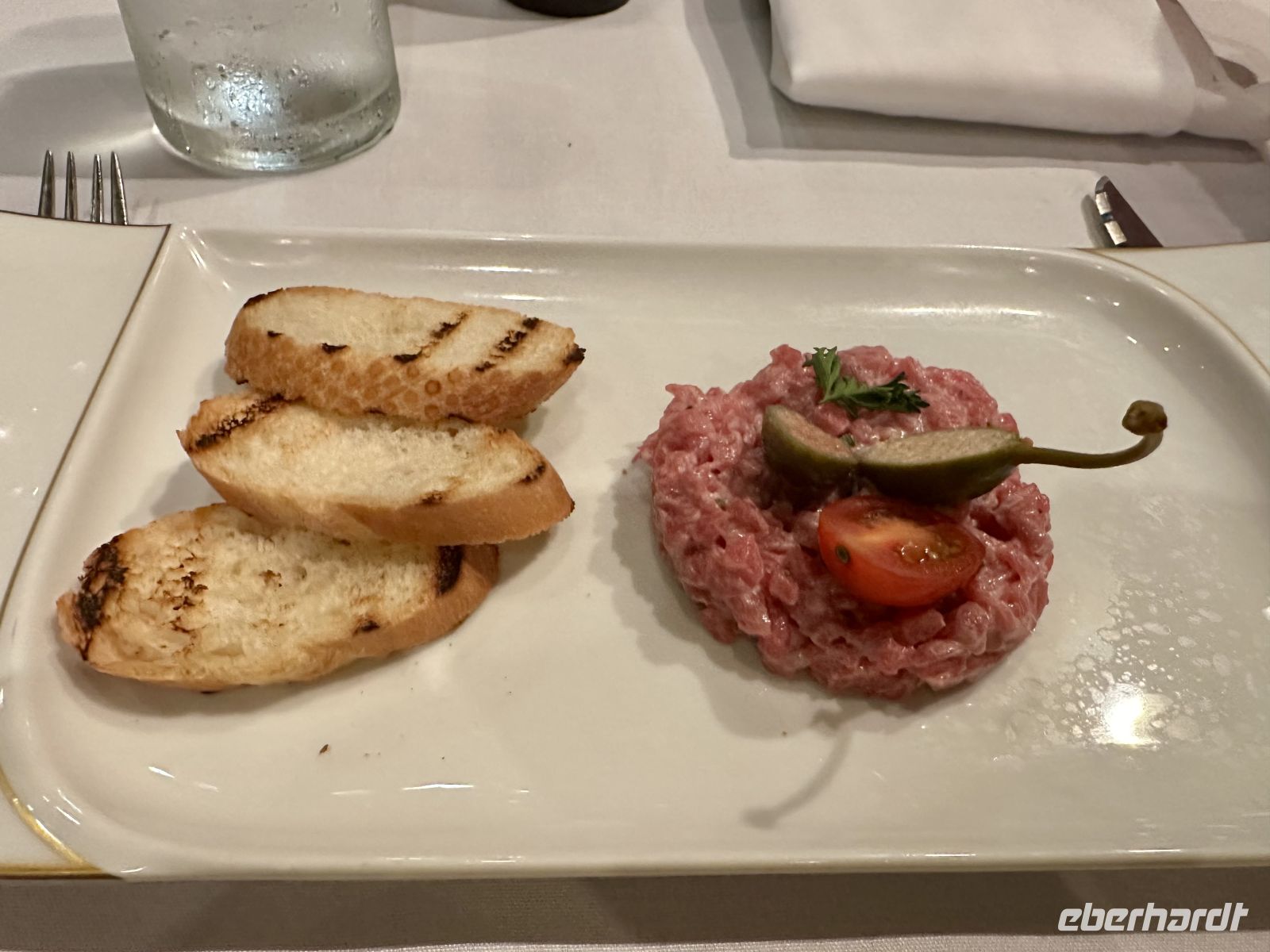 Alles Vorspeisen! Die Hauptgänge zeichnen sich durch reichhaltige, geschmorte Gerichte und perfekt zubereitetes Fleisch aus: Osso Buco Alla Milanese: Eine der am meisten gelobten Speisen – geschmorte Lammschulter, die so zart ist, dass sie vom Knochen fällt, serviert mit Safran-Risotto (göttlich). Oder wie wäre es mit Controfiletto Di Manzo Al Pepe Verde, ein New York Strip Steak, in einer grünen Pfefferkornsauce serviert und kombiniert mit Blauschimmelkäse-Ravioli. Oder Gamberi Fra Diavolo, gebratene Garnelen in einer pikanten Tomatensauce, serviert mit Linguine. Und noch besser: Pollo Cacciatore, Hühnchen, geschmort in einer aromatischen Rosmarin-Knoblauch-Sauce mit frischen Tomaten und Gemüse. Hier trifft eindeutig zu: wer die Wahl hat, hat die Qual. Wofür soll man sich nur entscheiden? Und nach dem Hauptgang geht es weiter mit Dolci, den Desserts: cremiges Tiramisu, Panna Cotta und Cannoli mit süßer Ricotta-Füllung. Bitte, wer rollt mich in die Kabine?
