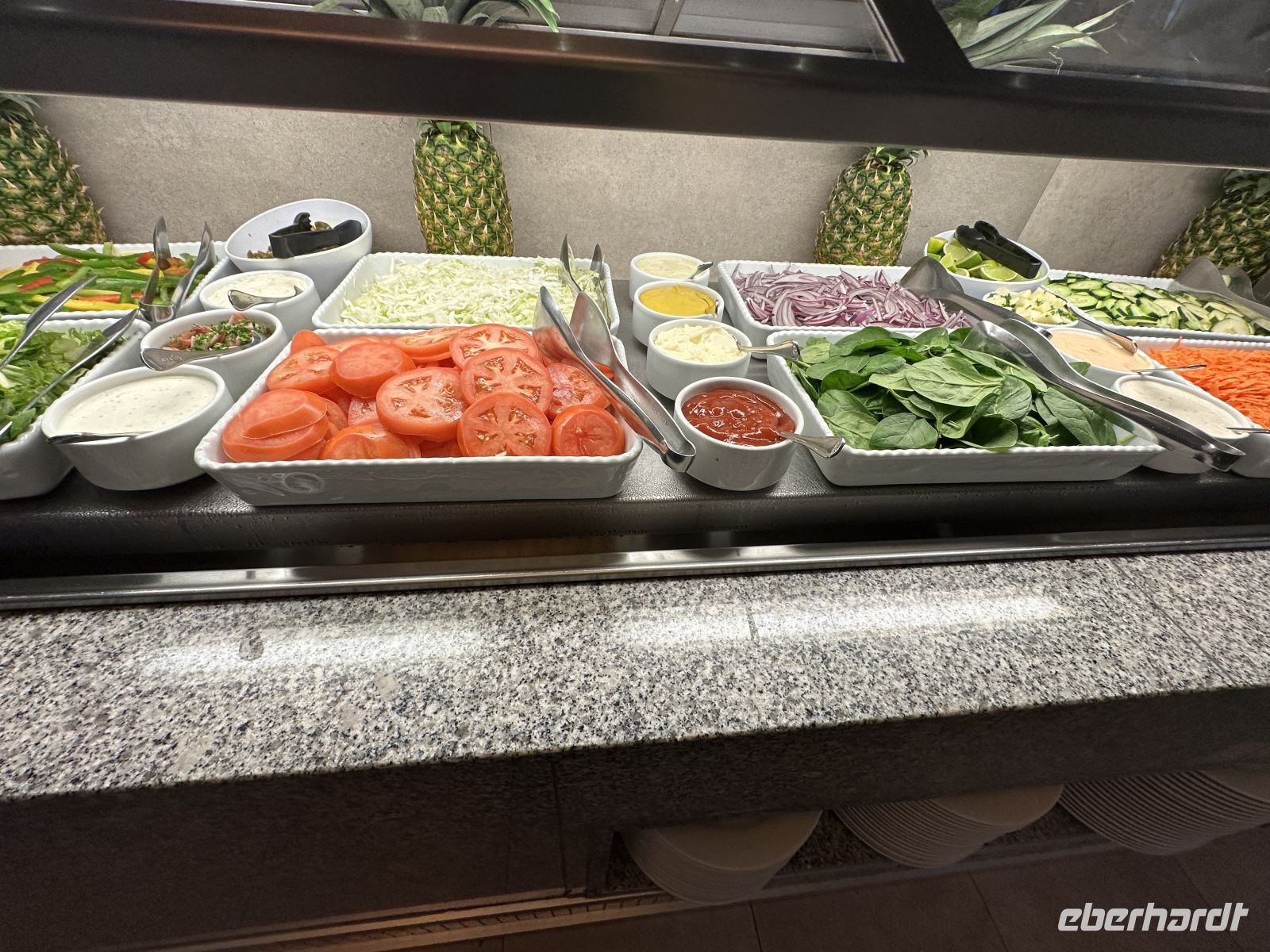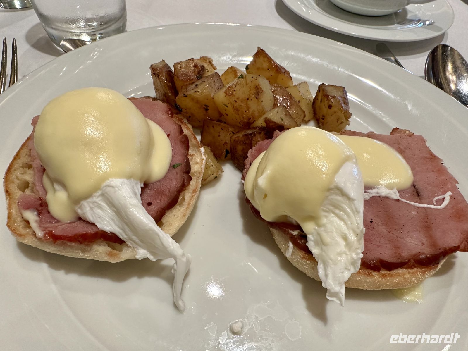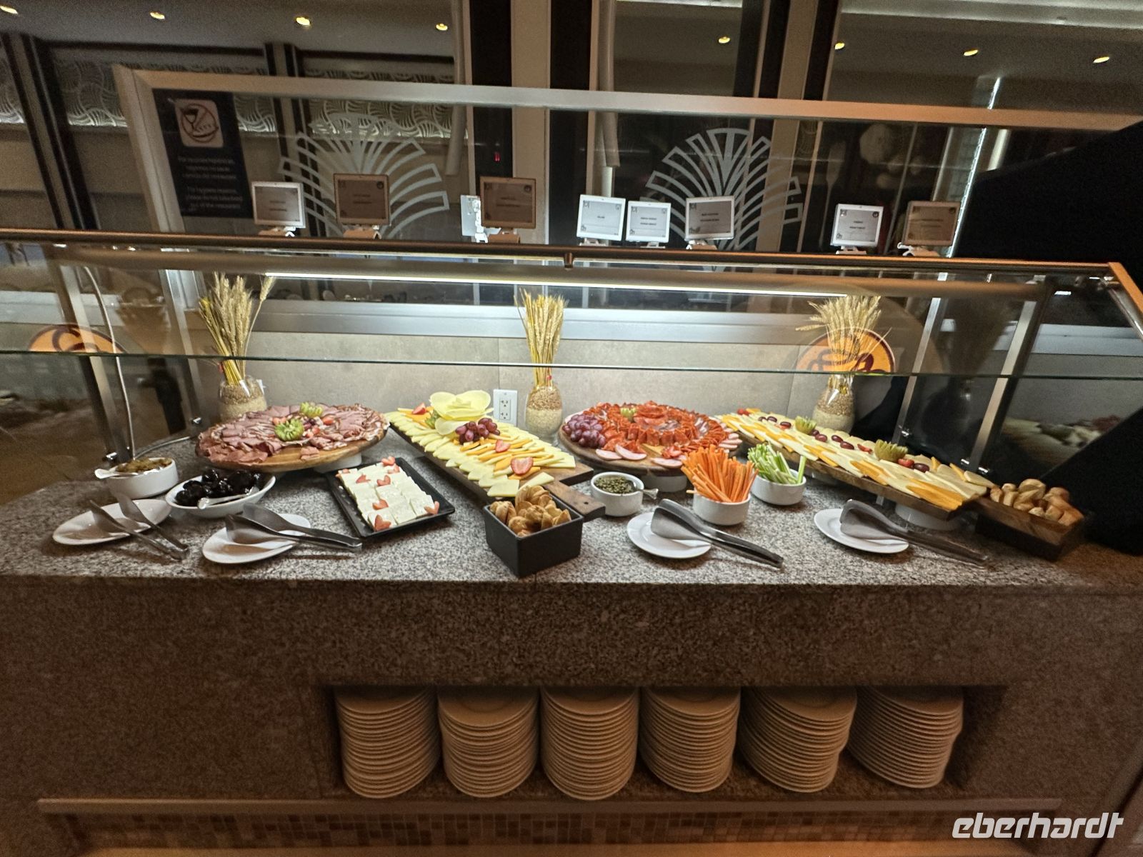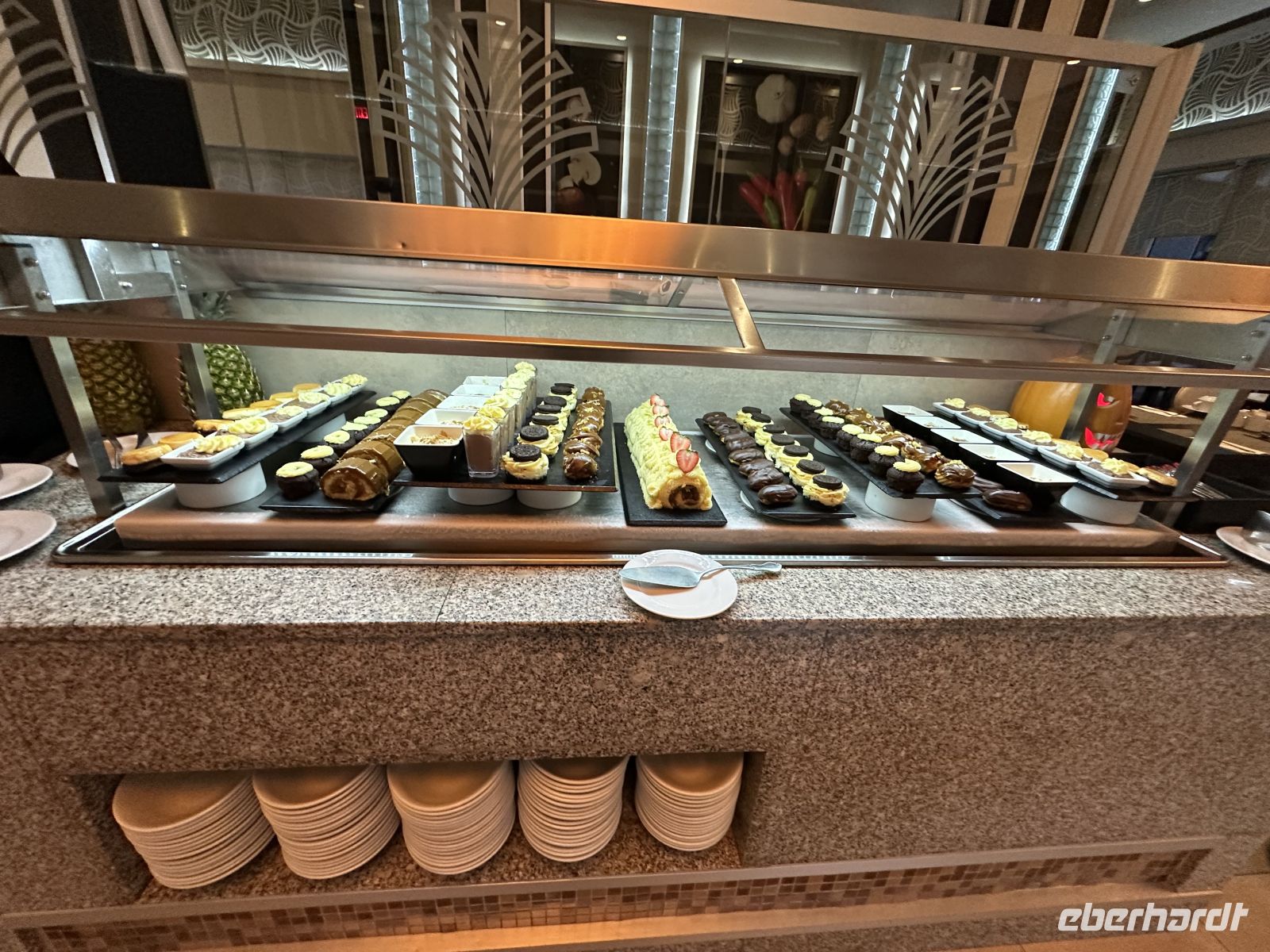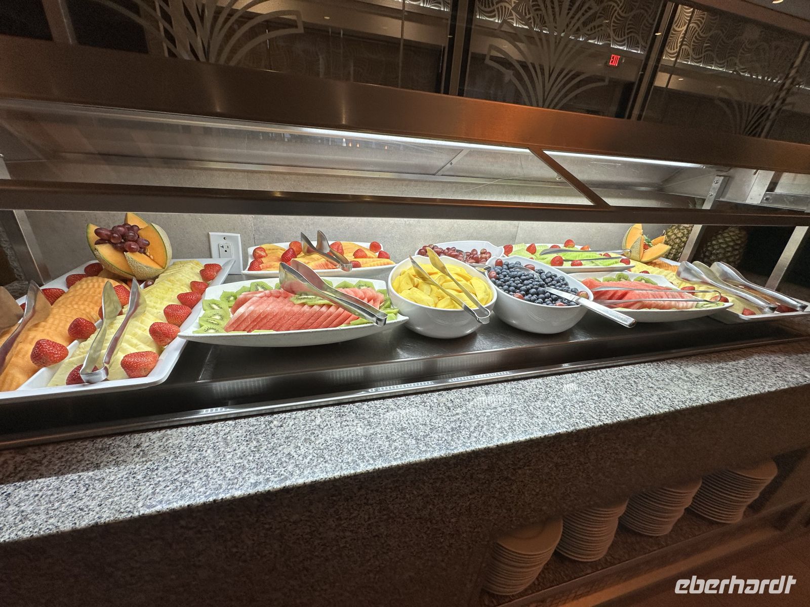 Bereits am frühen Morgen drehen die ersten Kreuzfahrer ihre Runden auf dem Joggingparcour. Im Gardencafé gibt es Frühstück mit Selbstbedienung von 07.00 - 10.30 Uhr. Frühaufsteher finden ein paar Kleinigkeiten und Kaffee schon ab 05.30 Uhr im Observatorium. Dieses befindet sich auf Deck 15 mit direktem Frontblick aufs Meer. In den Restaurants Taste und Savor lässt man sich das Frühstück servieren. Möglich ist das von 07.30 - 09.30 Uhr. Im Local, einem Schnellimbiss gibt es Fastfood am Morgen von 05.00 - 11.30 Uhr.