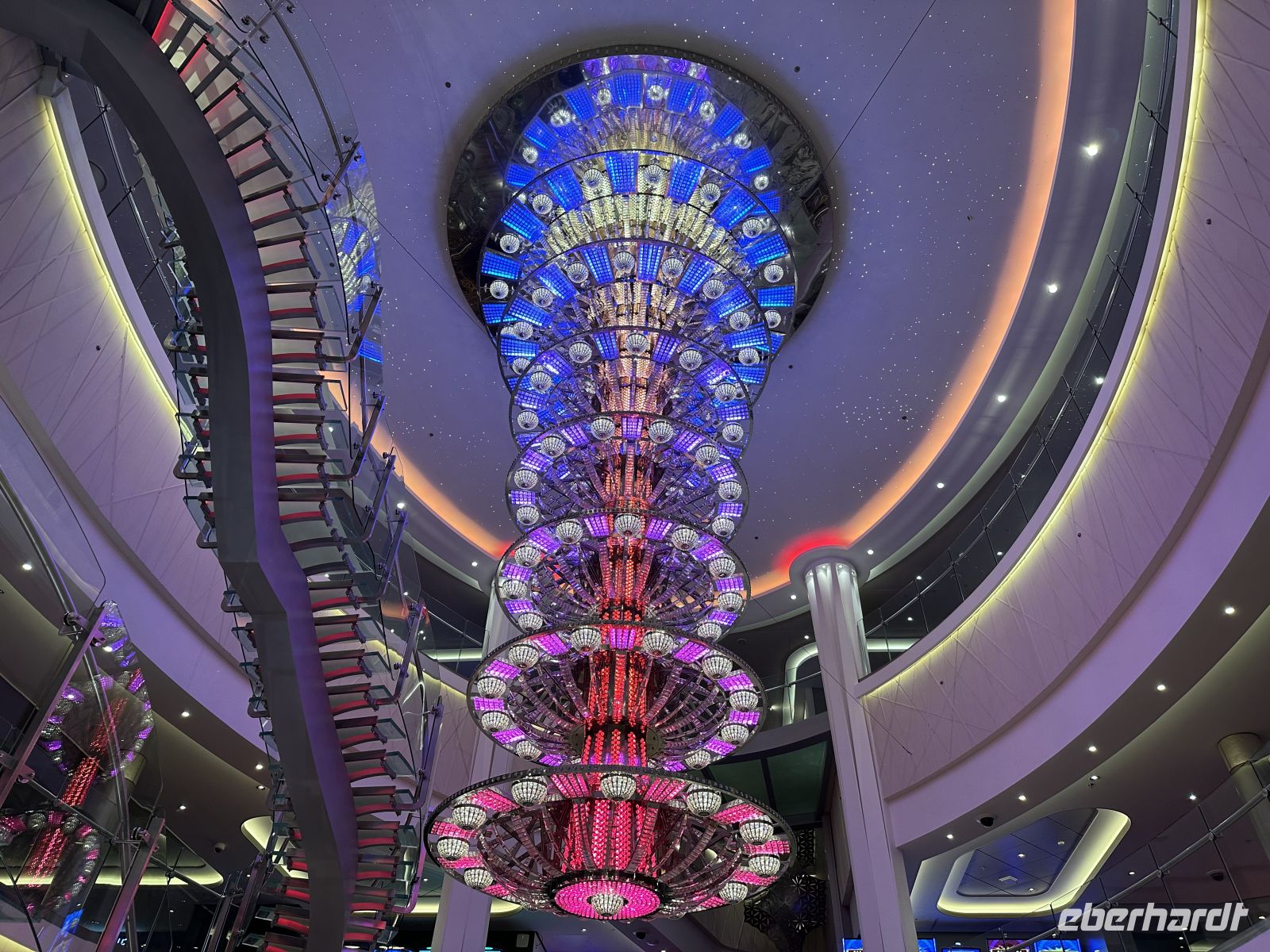 Am Abend treffen wir uns im Atrium. Wir wollen gemeinsam das Abendessen einnehmen und uns über den Tag austauschen. Das behalten wir auch in den nächsten Tagen bei. Im Theater läuft The Wild Cards, eine Show mit Tanz und Musik im Cabaret-Stil. Wer dann noch nicht müde ist, kann durch die diversen Bars streifen. Überall gibt es Musik, Tanz und Cocktails.
