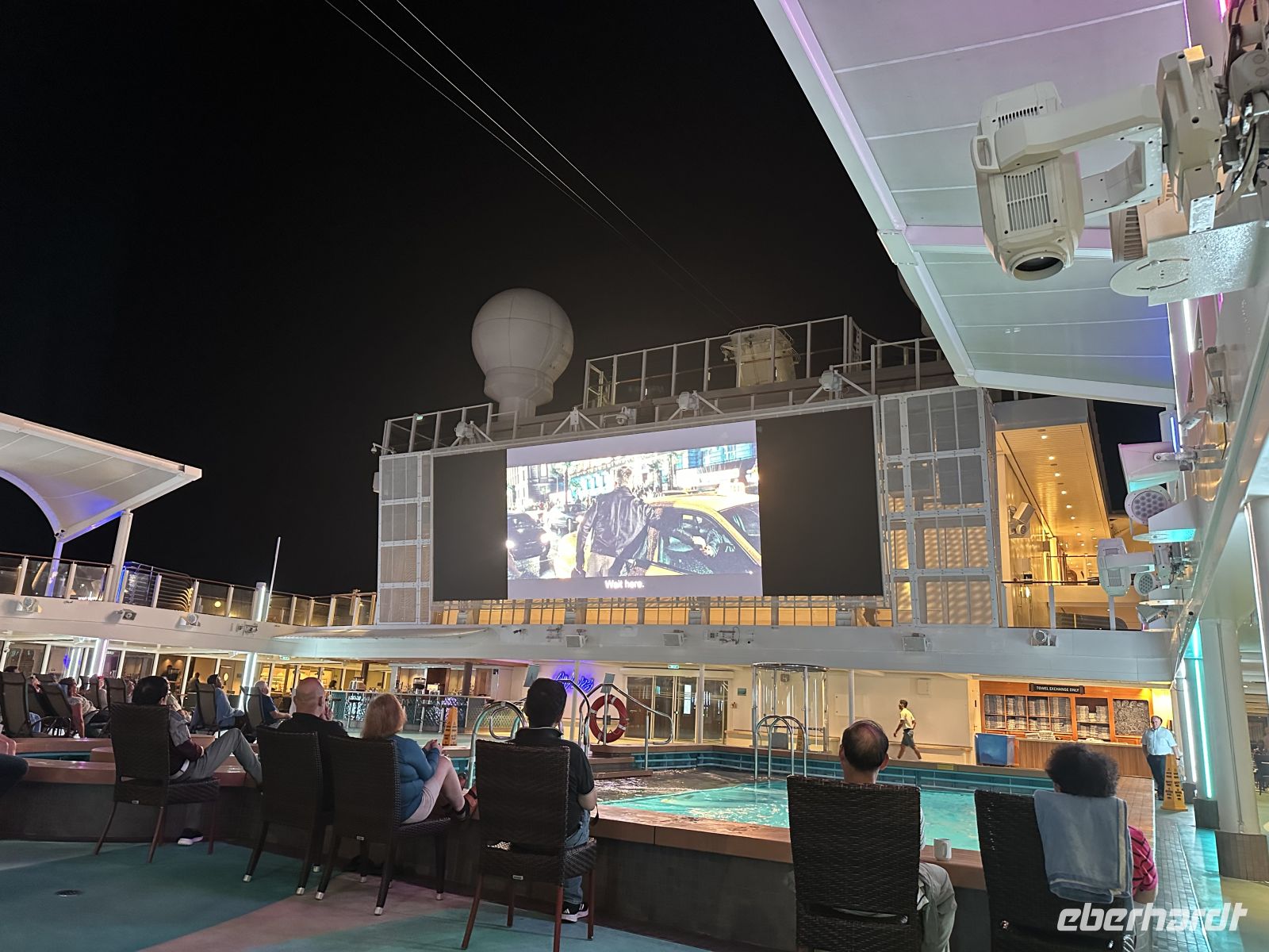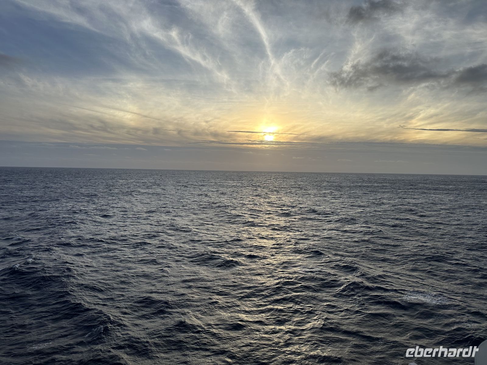 Das ist eine Nachricht, die schwer zu verdauen ist. Alle haben sich auf das Erlebnis Klippenspringer gefreut. Doch ein Gang über das Außendeck lässt uns fühlen, wie stürmisch der Wind ist und auch der Wellengang ist nicht unerheblich. Also studieren wir das Tagesprogramm und schauen, was an Bord los ist. Thematisch steht heute ABBA Musik im Mittelpunkt. Angeboten werden ein ABBA Quiz, ein ABBA Linedance Kurs und am späten Abend die ABBA Love Show am Pool. Zusätzlich ins Programm genommen wurde mittags eine weitere BeatlesStory: die Beatlemania. Wie erwartet, ist das Theater komplett voll. So vergeht ein weiterer Tag auf See. Ein Wechsel zwischen gutem Essen, Karten spielen, lesen, aufs Meer schauen oder am Unterhaltungsprogramm teilnehmen.
