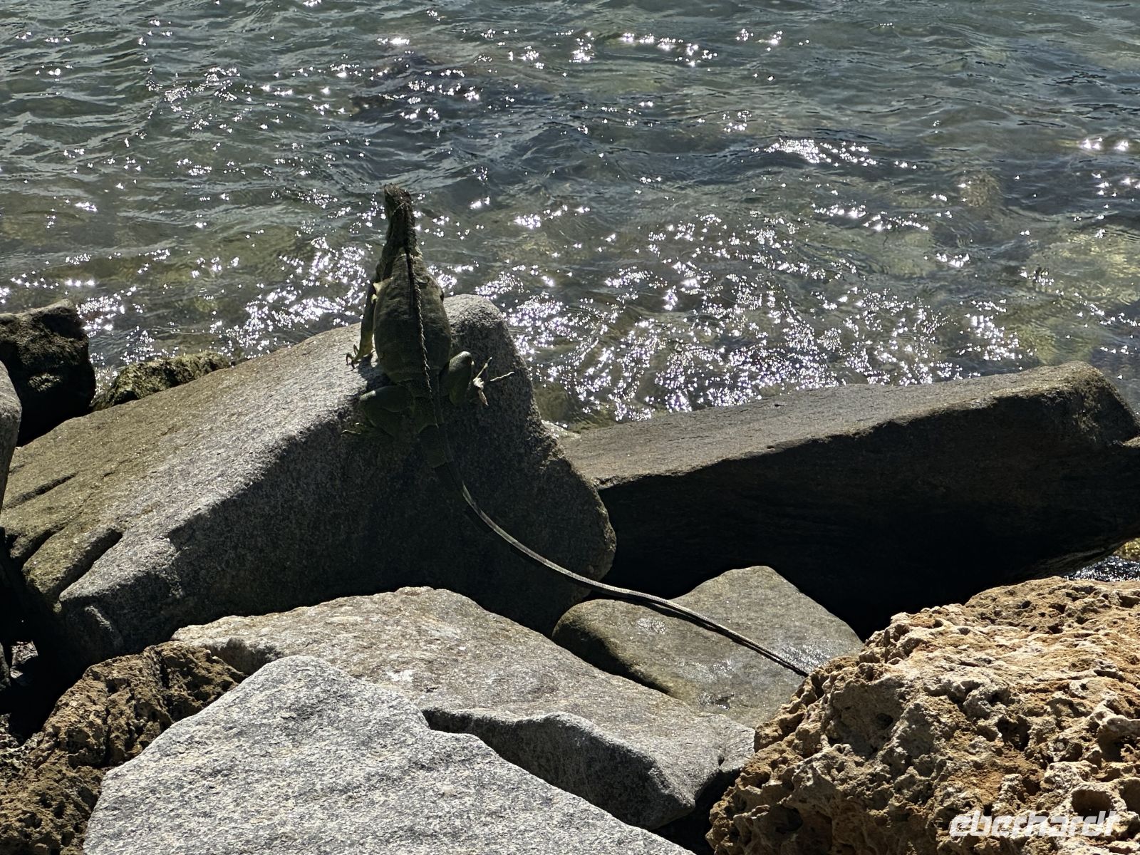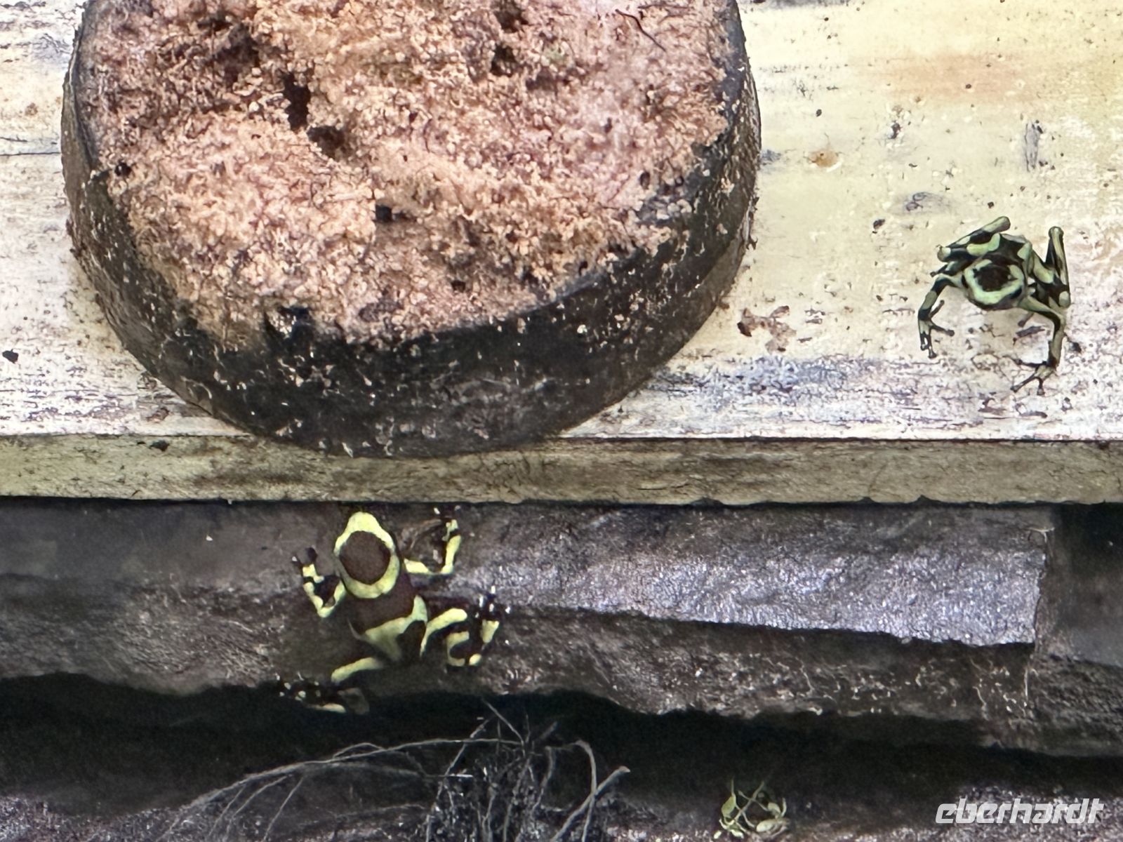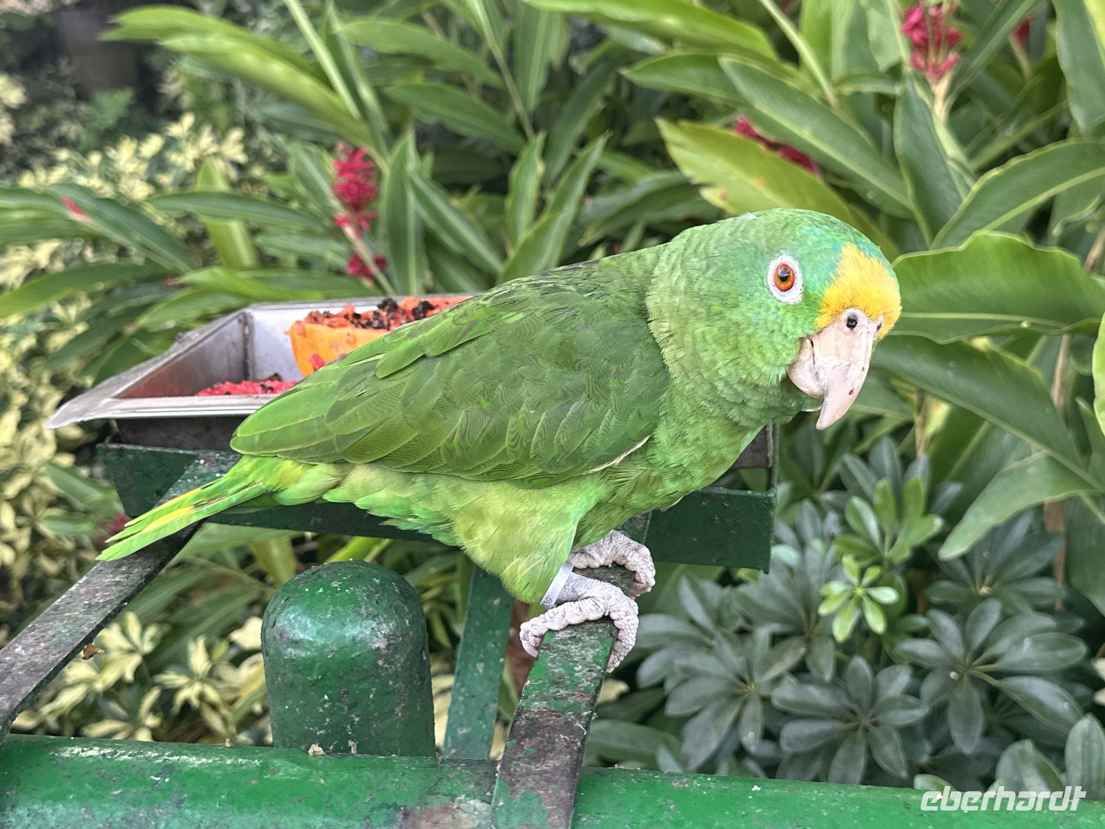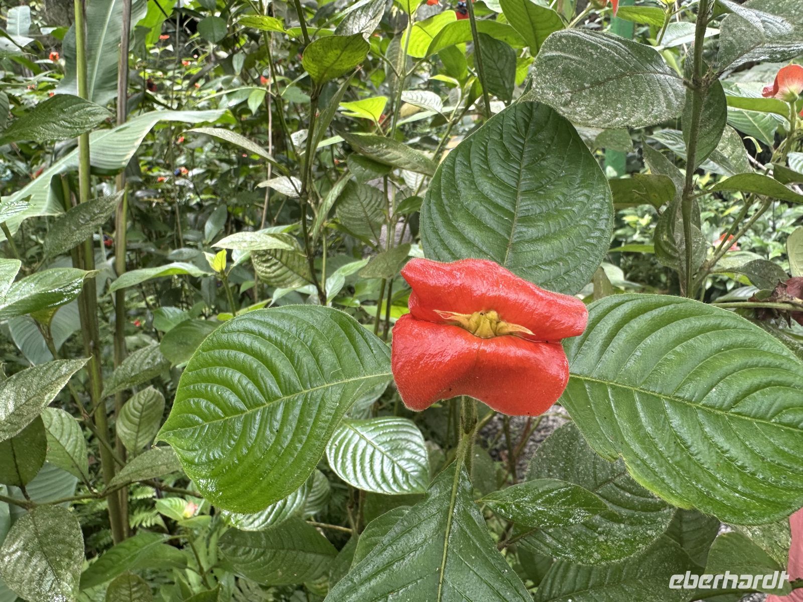 Unser Schiff hat in Panama eine Overnight eingelegt, was bedeutet, wir haben den Hafen nicht verlassen. So sind wir heute wieder im regulären Programm. Wir haben verschiedene Ausflüge gebucht. Einige Gäste nehmen an einer Stadtbesichtigung teil, andere lernen intensiv den Kanal und das Schleusensystem kennen und eine weitere kleine Gruppe fährt in den Dschungel, den Gamboa Rainforst Reserve. Auf dem Weg dorthin wird in einem Hotel eine Getränke und WC Pause eingelegt. Im Garten des Hotels erfreuen wir uns an einem Kapuziner Äffchen und einem uns unbekannten Tier. Gegen 09.30 Uhr erreichen wir die Seilbahn, die Gamboa Aerial Tram. Bei einer Fahrt in offenen Gondeln gleiten wir sanft über das Blätterdach des Regenwaldes. So haben wir eine einzigartige Sicht auf die verschiedenen Vegetationsschichten – vom schattigen Waldboden bis hin zur sonnendurchfluteten Baumkrone. Unsere Hoffnung, verschiedene Tiere in ihrem natürlichen Lebensraum zu beobachten, erfüllt sich nur bedingt, lediglich ein paar kleine Vögel geben uns die Ehre. Am Ende der Seilbahnfahrt gibt es einen Ausstieg, von der aus wir über einen kurzen Weg den 30 Meter hohen Aussichtsturm erreichen. Von der Spitze des Turms genießen wir den atemberaubenden 360-Grad-Blick auf den gesamten Soberania Nationalpark. Die Rückfahrt mit der Seilbahn dauert genauso lange wie die Hinfahrt, 40 Minuten. Das liegt vor allem daran, dass die Bahn bei jedem Ein- und Ausstieg angehalten wird. Der zweite Teil des Ausflugs wird dann interessanter, weil wir in verschiedenen Schutzzentren einheimische Tiere betrachten können. Den Anfang macht die Frosch-Ausstellung. In einem Rondell wohnen. grüngefleckte, braune, rote und andersfarbige Fröschlein. Sie scheinen zunächst erstarrt zu sein, aber dann beobachten wir doch einige Aktivitäten. Im darauf folgenden Orchideengarten gibt es nicht allzu viel überraschendes zu sehen. Anders sieht es im Schmetterlingshaus aus, hier umflattern uns viele farbenprächtige Schmetterlinge, vor allem die zahlreichen berühmten Blauen Morpho-Falter begeistern uns. Und zum Schluss kommt der unerwartete Höhepunkt: wir besuchen ein Faultier-Schutzzentrum: Hier sehen wir gerettete und rehabilitierte Faultiere und erfreuen uns daran, wie zwei von ihnen von einer Pflegerin gefüttert werden. Glücklich und zufrieden und mit vielen Faultierfotos im Gepäck kehren wir zurück zum Schiff. Unterwegs beobachten wir am Wegesrand in einem kleinen Tümpel einen Kaiman, der in friedlicher Gemeinschaft mit drei Schildkröten auf der Suche nach Futter ist.