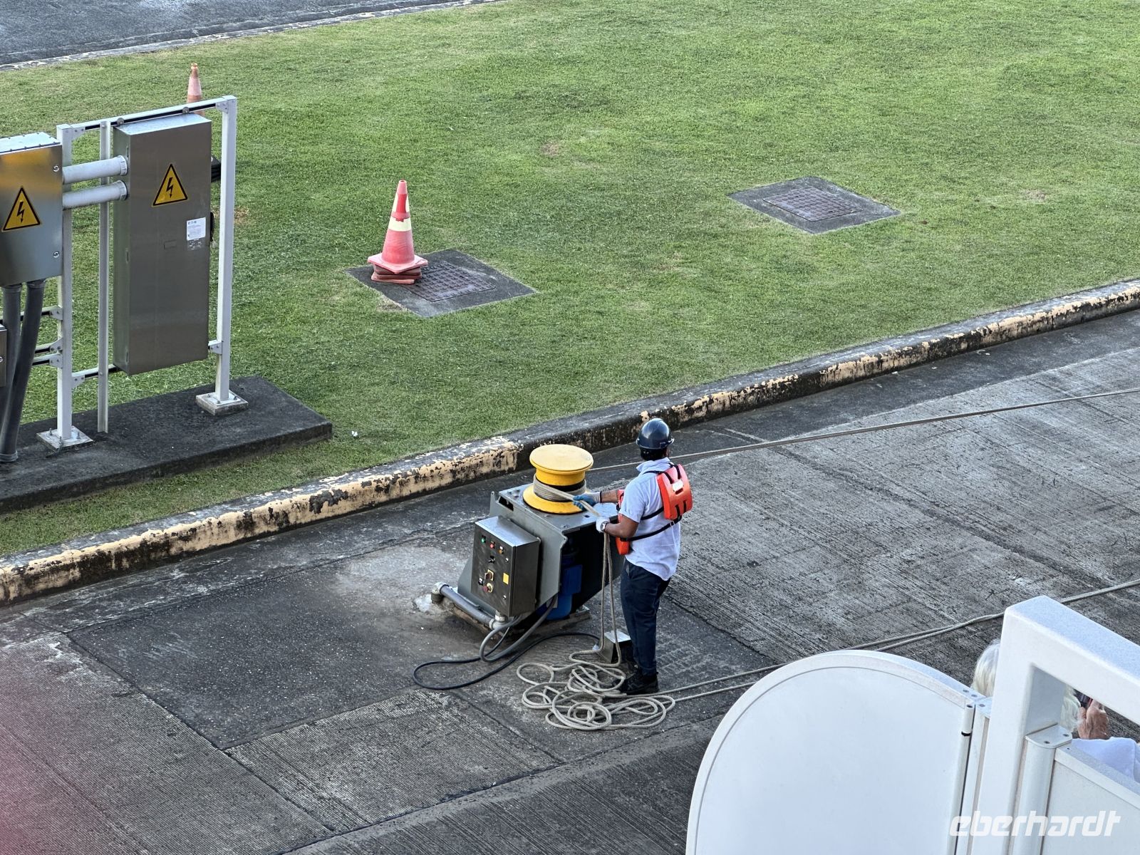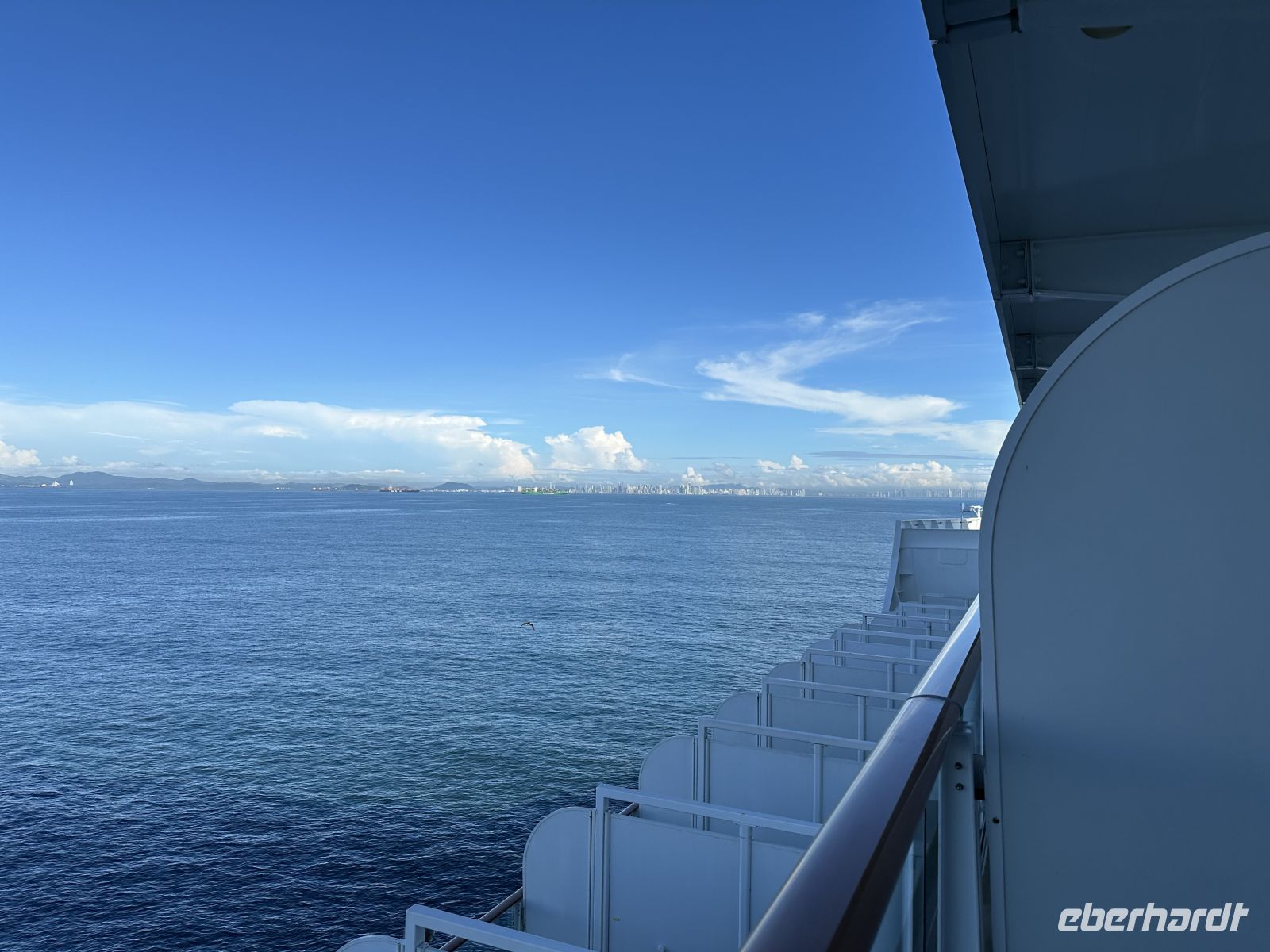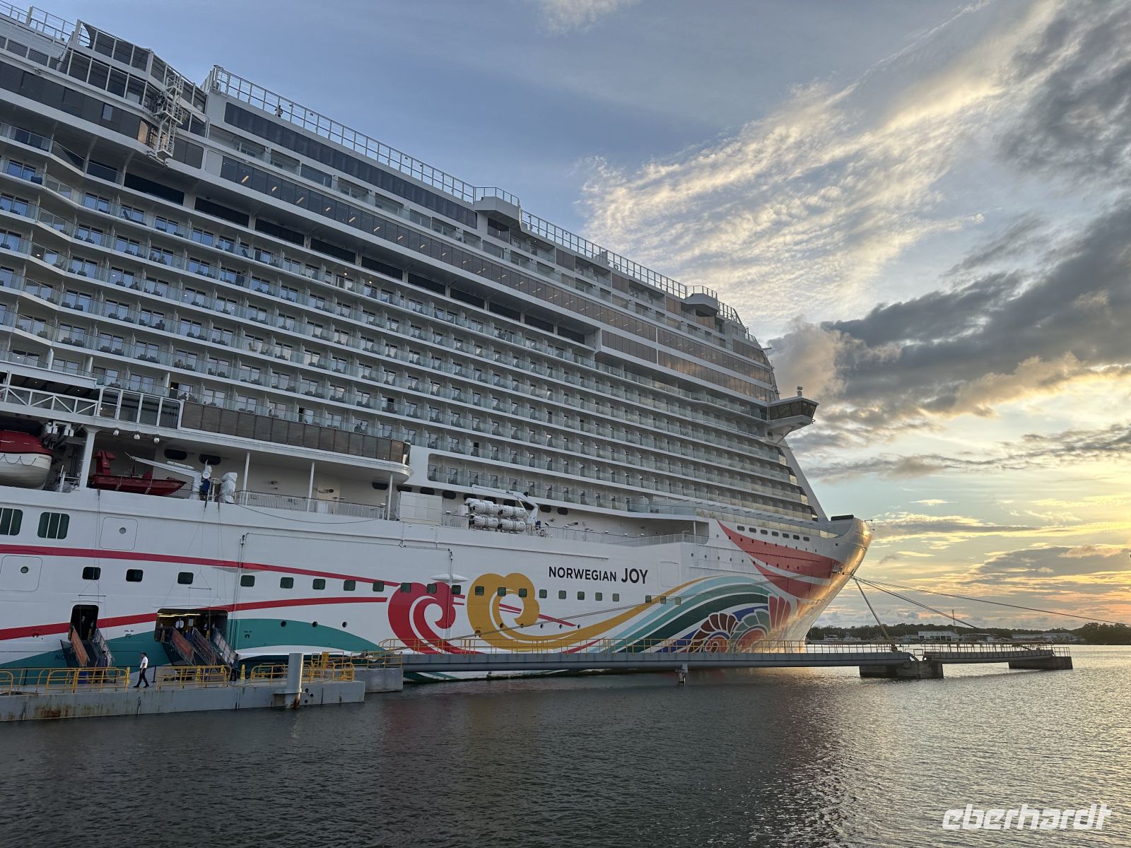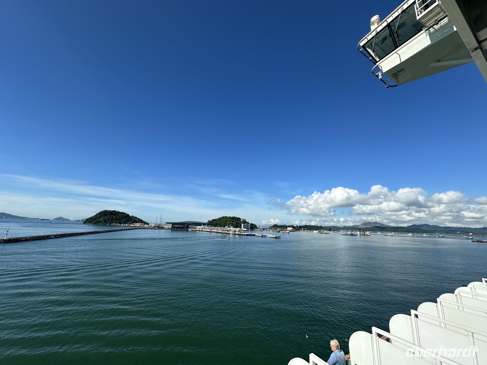 Die Koffer werden von fleißigen Händen aus dem Bus geladen und landen später tatsächlich in unseren Kabinen. Wir begeben uns zum Terminal, zeigen Bordkarte, Pass und Kreditkarte vor und bekommen im Gegenzug unsere Kabinenkarten.