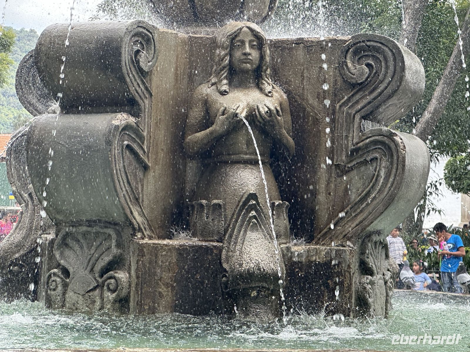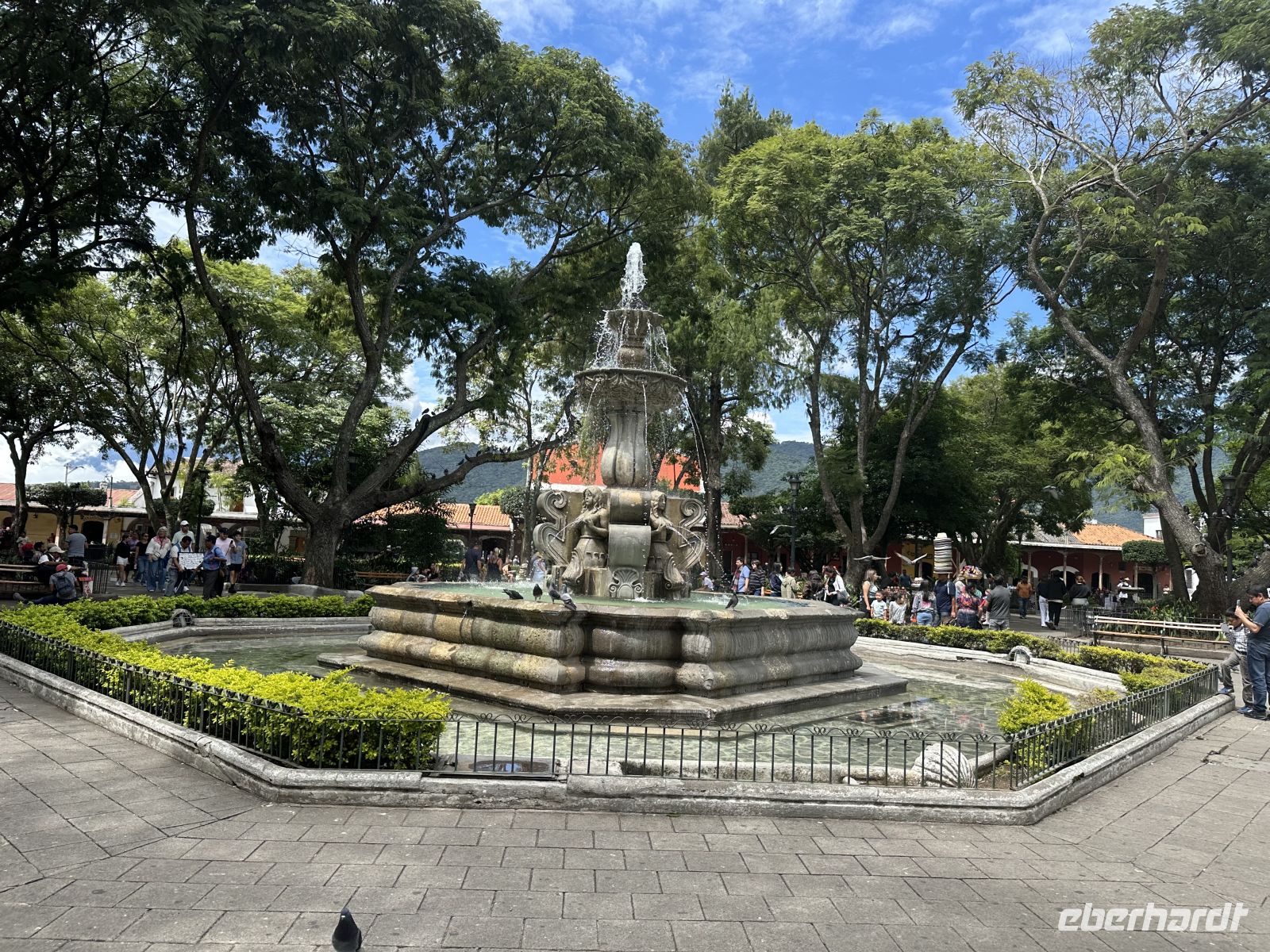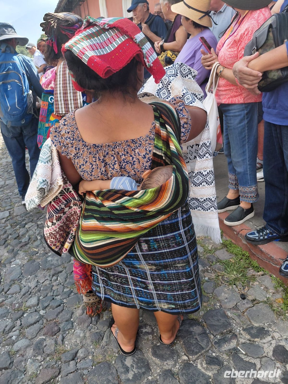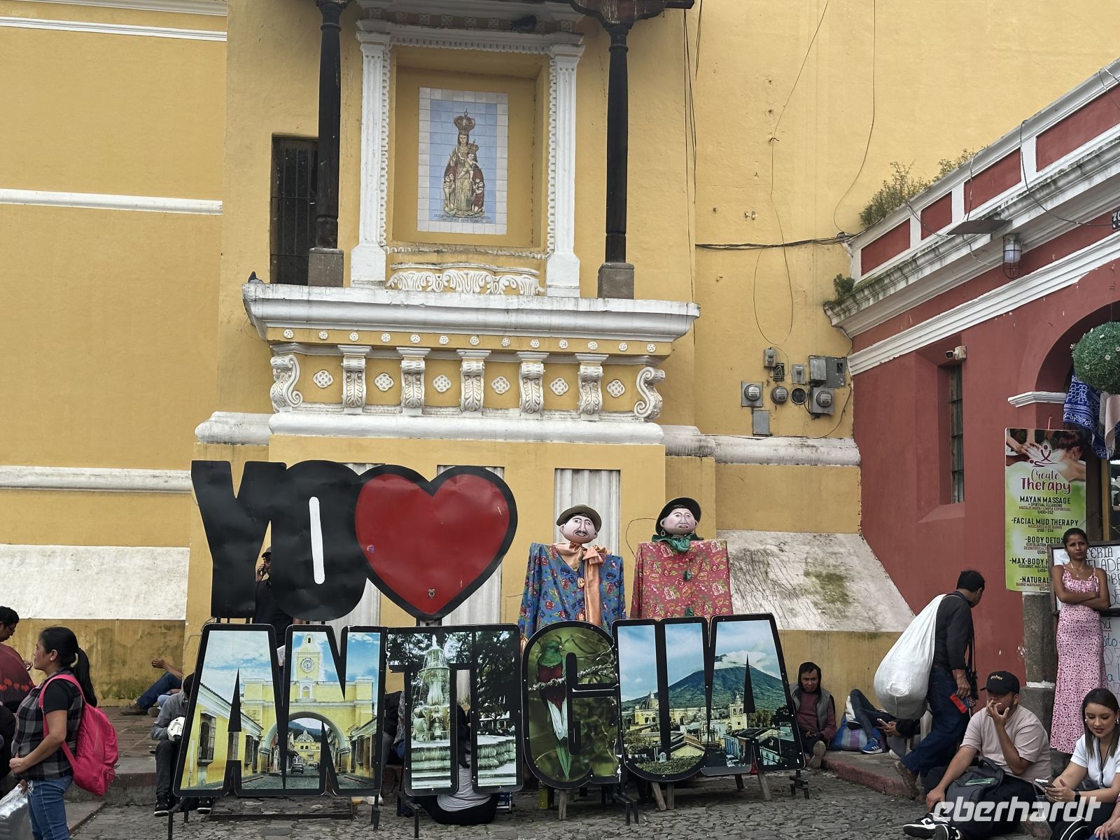 bekannt. Über mehr als 200 Jahre war Antigua das wichtigste religiöse, kulturelle und wirtschaftliche Zentrum der Region. Sie war die drittgrößte spanische Kolonialstadt in Lateinamerika und soll zeitweise über 50 Kirchen, Kapellen, Klöster, eine Universität und Krankenhäuser besessen haben. Die Stadt wurde nach einem strengen, am italienischen Renaissance-Ideal orientierten, Gitternetzmuster angelegt. Ihre Architektur ist ein herausragendes Beispiel für den Barroco Antigüeño (Barock von Antigua), einer regionalen Variante des Barockstils, die an die häufigen Erdbeben angepasst wurde. Typisch sind oft einstöckige Gebäude, dicke Mauern und reiche Stuckverzierungen. Antigua liegt in einem Tal, umgeben von den Vulkanen Agua, Acatenango und dem aktiven Fuego. Zahlreiche Erdbeben prägten ihre Geschichte. Das verheerendste war das Santa-Marta-Erdbebenim Jahr 1773, das die Stadt größtenteils zerstörte. Nach dem Erdbeben von 1773 beschloss die spanische Krone die Verlegung der Hauptstadt in ein sichereres Gebiet, das heutige Guatemala-Stadt. Antigua wurde verlassen und verlor ihren politischen Status. Obwohl die Stadt aufgegeben wurde, blieben viele der beschädigten Gebäude als eindrucksvolle Ruinen erhalten. Aufgrund ihres einzigartigen Charmes und des gut erhaltenen kolonialen Stadtbildes wurde Antigua Guatemala 1979 von der UNESCO zum Weltkulturerbe erklärt. Zu den bekanntesten Bauwerken zählen der Santa Catalina-Bogen (Arco de Santa Catalina), der einst zwei Teile eines Klosters verband, die Ruinen der Kathedrale San José, das Kloster La Merced mit seiner prächtigen Fassade und die Ruinen des Convento de Las Capuchinas. Unser Stadtrundgang endet nach dem Besuch des Jademuseums in einem Restaurant, wo wir das Mittagessen einnehmen. Serviert wird ein schmackhafter Schwazbohnenmus mit Hühnchen , Reis, Kochbananen und Tortillas begleitet von einer einheimischen Musikband. Anschließend fahren wir zurück zum Schiff. Ein Tropenregen hat eingesetzt, der aber als wir ankommen wieder aufgehört hat. So können wir noch über den Markt schlendern und Einkäufe tätigen.