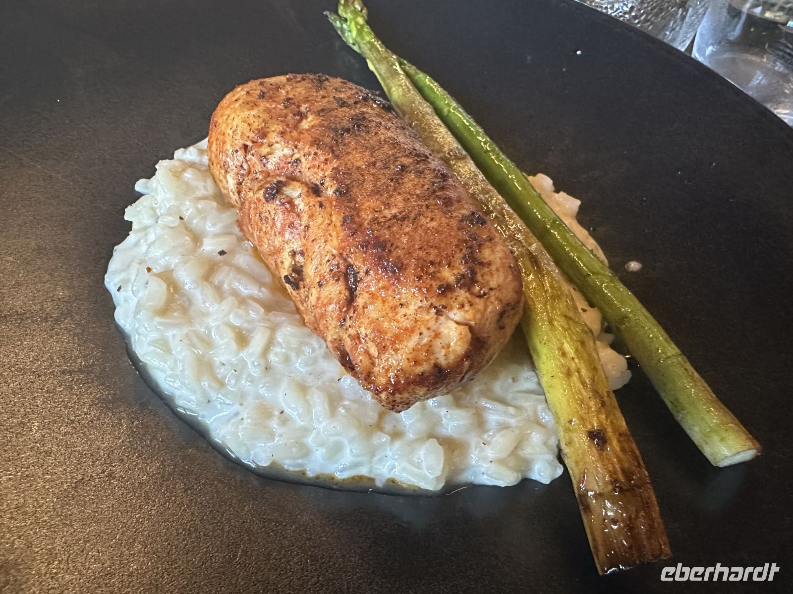 Zum Hauptgang wählen wir eine Hauptspeise aus, die dann auf dem Grill zubereitet wird. Beliebte Optionen sind: Filet Mignon, Hähnchenbrust, Jakobsmuscheln oder Jumbo-Garnelen.