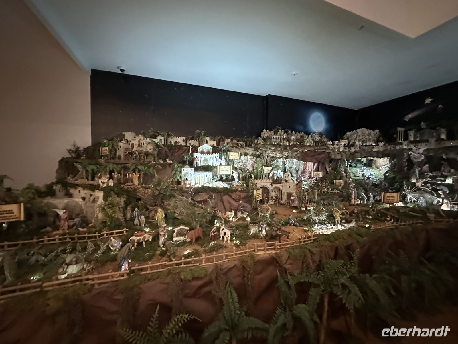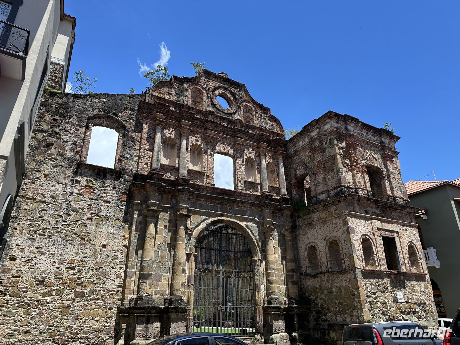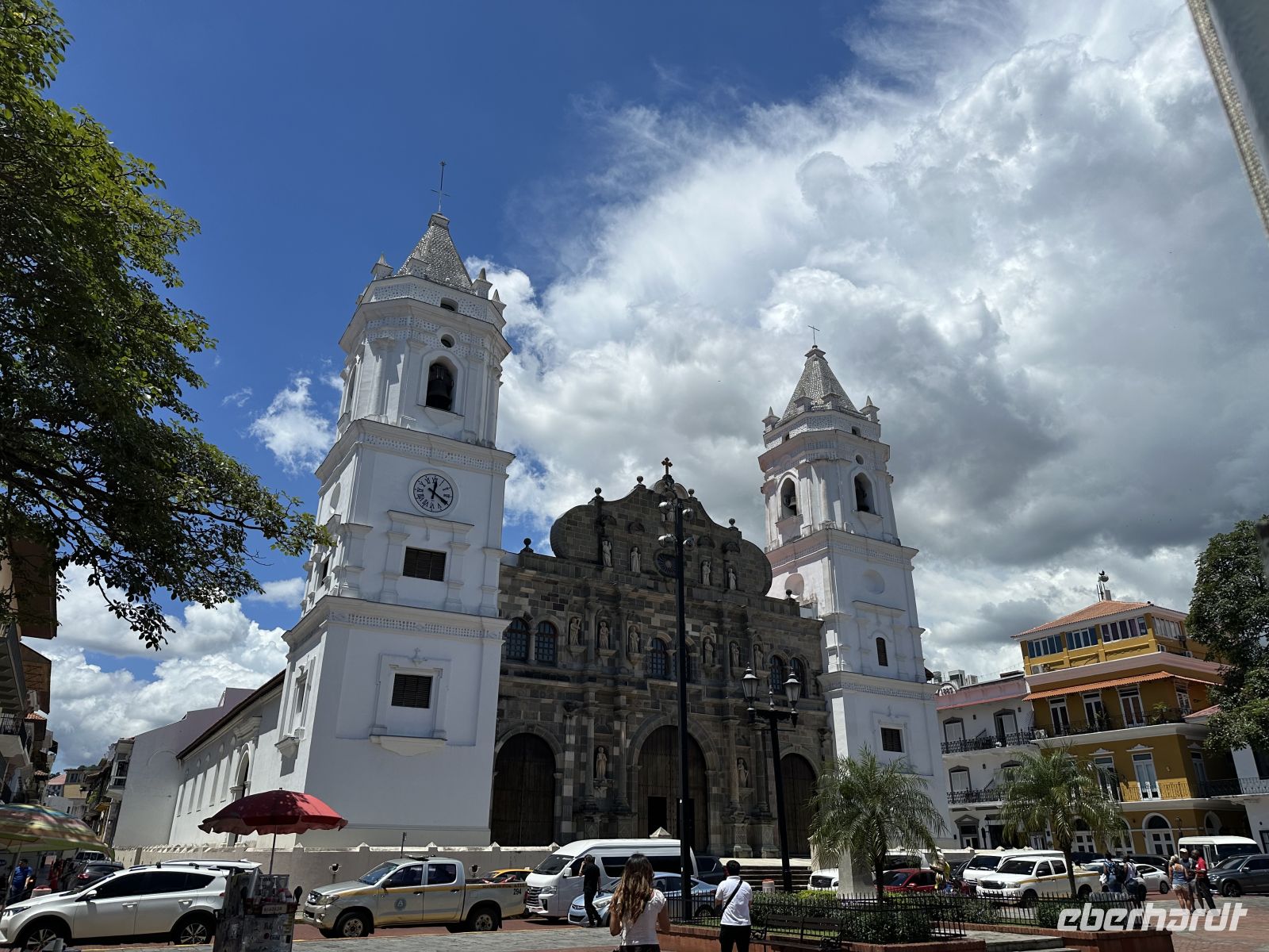 Die Änderungen im Reiseverlauf haben zur Folge, dass wir einen zusätzlichen Tag in Panama verbringen. Unser Reiseveranstalter Eberhardt TRAVEL hat es geschafft, in kürzester Zeit ein Tagesprogramm für uns zu organisieren. Victor, unser örtlicher Reiseleiter erwartet uns am Ausgang vom Terminal und Olga ist unsere freundliche Busfahrerin. Den ersten Fotostopp legen wir ein, um uns gegenseitig vor den großen bunten PANAMA Buchstaben zu fotografieren. Wir befinden uns auf der Isla Flamenco am Amador Causeway. Hier haben wir eine der besten Fotokulissen der Stadt. Der Causeway selbst ist eine malerische Dammstraße, die aus dem Aushubmaterial des Panamakanals errichtet wurde und vier kleine Inseln verbindet. Schon die Anfahrt vom Schiff bietet einen wunderschönen Blick auf das Meer und die Skyline. Während wir Richtung Altstadt fahren, erhalten wir von Victor viele Informationen zu Panama und den Panama Kanal. Zu Fuß geht es in die Iglesia San José im historischen Viertel Casco Viejo erkundet. Die Kirche ist zwar von außen eher schlicht, birgt aber einen der wertvollsten und legendärsten Schätze des Landes: den Altar de Oro (Goldener Altar). Die bekannteste Geschichte besagt, dass der Altar das einzige bedeutende Relikt ist, das 1671 die Plünderung von Panama Viejo durch den Piraten Henry Morgan überlebte. Ein cleverer Priester soll ihn komplett schwarz angemalt und Morgan vorgelogen haben, der echte Altar sei gestohlen worden. Der Pirat glaubte die List und verschonte das vermeintlich wertlose Stück. Nach dem Wiederaufbau der Stadt wurde der Altar in die neue Kirche San José gebracht. In einem Nebenraum treffen wir auf eine riesige Weihnachtskrippe. Ein großes Diorama zeigt detailliert das Dorf Bethlehem und seine Umgebung. Neben den klassischen Figuren wie Maria, Josef und den Heiligen Drei Königen stellt die Krippe auch den Alltag der einfachen Menschen dar. Man könnte Stunden hier verbringen, um jedes kleine Detail zu erkunden.