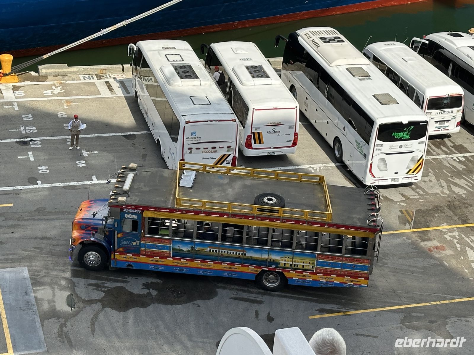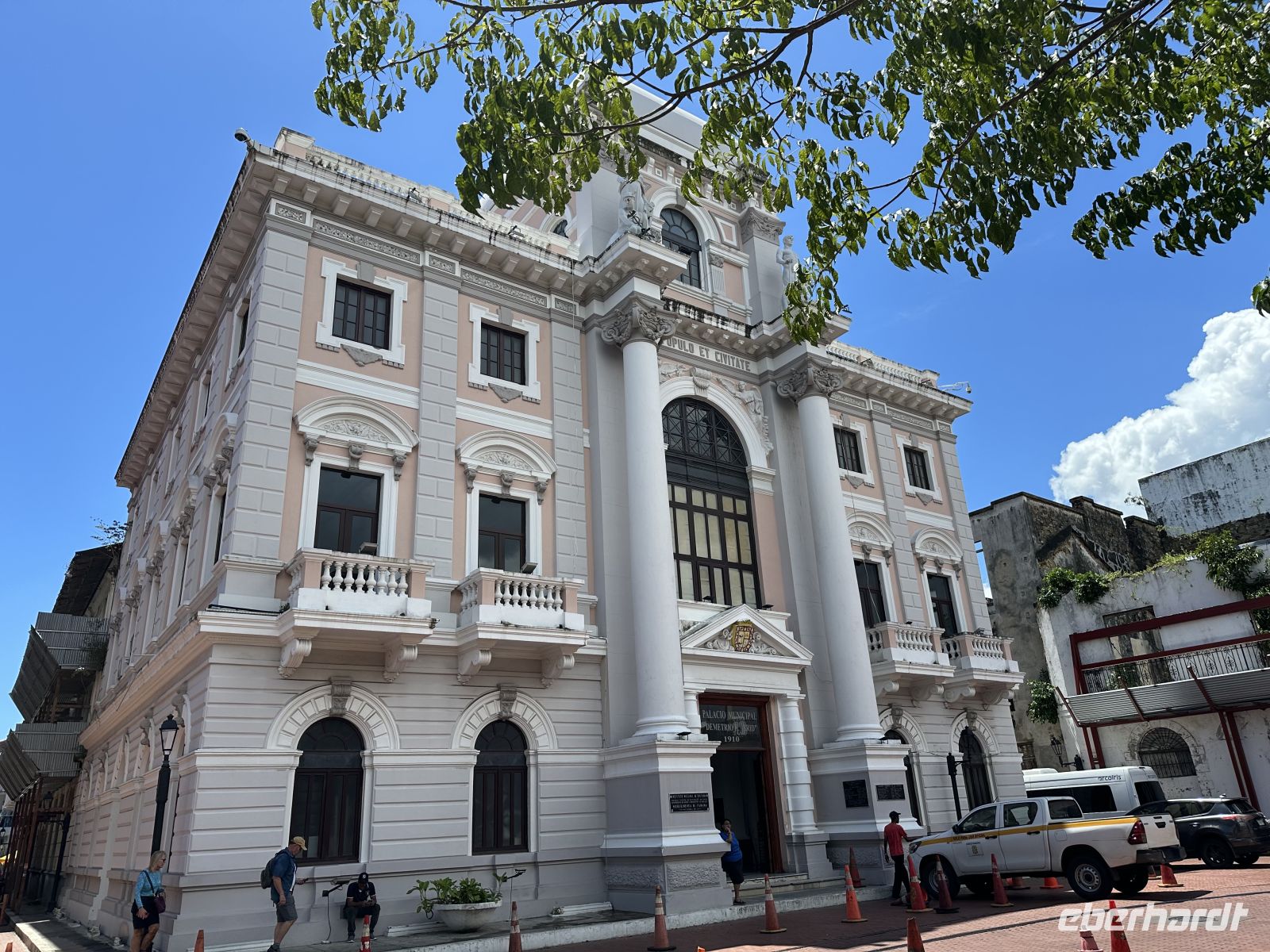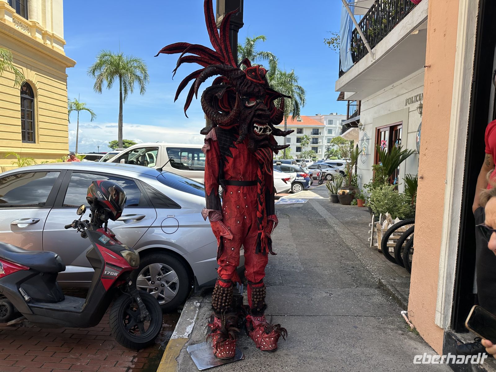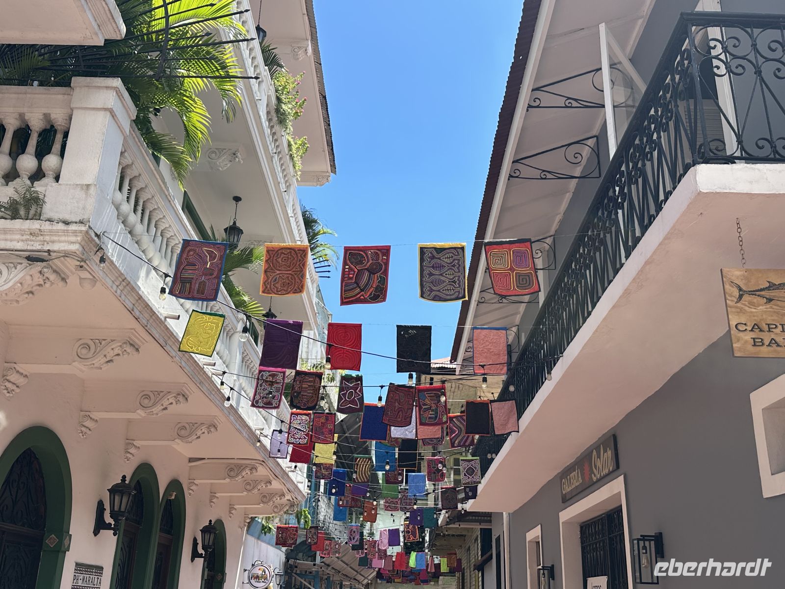 Die Änderungen im Reiseverlauf haben zur Folge, dass wir einen zusätzlichen Tag in Panama verbringen. Unser Reiseveranstalter Eberhardt TRAVEL hat es geschafft, in kürzester Zeit ein Tagesprogramm für uns zu organisieren. Victor, unser örtlicher Reiseleiter erwartet uns am Ausgang vom Terminal und Olga ist unsere freundliche Busfahrerin. Den ersten Fotostopp legen wir ein, um uns gegenseitig vor den großen bunten PANAMA Buchstaben zu fotografieren. Wir befinden uns auf der Isla Flamenco am Amador Causeway. Hier haben wir eine der besten Fotokulissen der Stadt. Der Causeway selbst ist eine malerische Dammstraße, die aus dem Aushubmaterial des Panamakanals errichtet wurde und vier kleine Inseln verbindet. Schon die Anfahrt vom Schiff bietet einen wunderschönen Blick auf das Meer und die Skyline. Während wir Richtung Altstadt fahren, erhalten wir von Victor viele Informationen zu Panama und den Panama Kanal. Zu Fuß geht es in die Iglesia San José im historischen Viertel Casco Viejo erkundet. Die Kirche ist zwar von außen eher schlicht, birgt aber einen der wertvollsten und legendärsten Schätze des Landes: den Altar de Oro (Goldener Altar). Die bekannteste Geschichte besagt, dass der Altar das einzige bedeutende Relikt ist, das 1671 die Plünderung von Panama Viejo durch den Piraten Henry Morgan überlebte. Ein cleverer Priester soll ihn komplett schwarz angemalt und Morgan vorgelogen haben, der echte Altar sei gestohlen worden. Der Pirat glaubte die List und verschonte das vermeintlich wertlose Stück. Nach dem Wiederaufbau der Stadt wurde der Altar in die neue Kirche San José gebracht. In einem Nebenraum treffen wir auf eine riesige Weihnachtskrippe. Ein großes Diorama zeigt detailliert das Dorf Bethlehem und seine Umgebung. Neben den klassischen Figuren wie Maria, Josef und den Heiligen Drei Königen stellt die Krippe auch den Alltag der einfachen Menschen dar. Man könnte Stunden hier verbringen, um jedes kleine Detail zu erkunden.