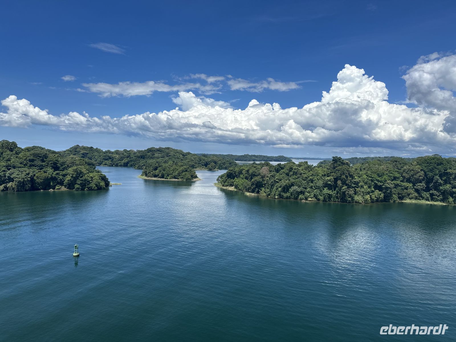 Langsam und mit äußerster Präzision navigiert der Lotse das riesige Schiff in die erste Kammer. Die Distanz zu den massiven Schleusenwänden beträgt manchmal nur wenige Meter – wahrlich Millimeterarbeit. Dann beginnt das Spektakel: Riesige Ventile öffnen sich, und das Wasser aus den oberen Becken strömte in die Kammern. Innerhalb weniger Minuten werden wir stufenweise um insgesamt 26 Meter auf das Niveau des Gatunsees angehoben. Mit jeder Stufe ändert sich der Ausblick: Wir lassen das geschäftige Pazifik-Niveau hinter uns und tauchen ein in die grüne, feuchte Welt des Regenwaldes. Nach den Schleusen beginnt die längste Etappe: die Fahrt über den Gatunsee. Der Kanal schlängelt sich durch dichten, unberührten Regenwald. Die Spitzen ehemaliger Hügel ragten nun als Inseln aus dem Wasser – ein Paradies für Tierliebhaber.