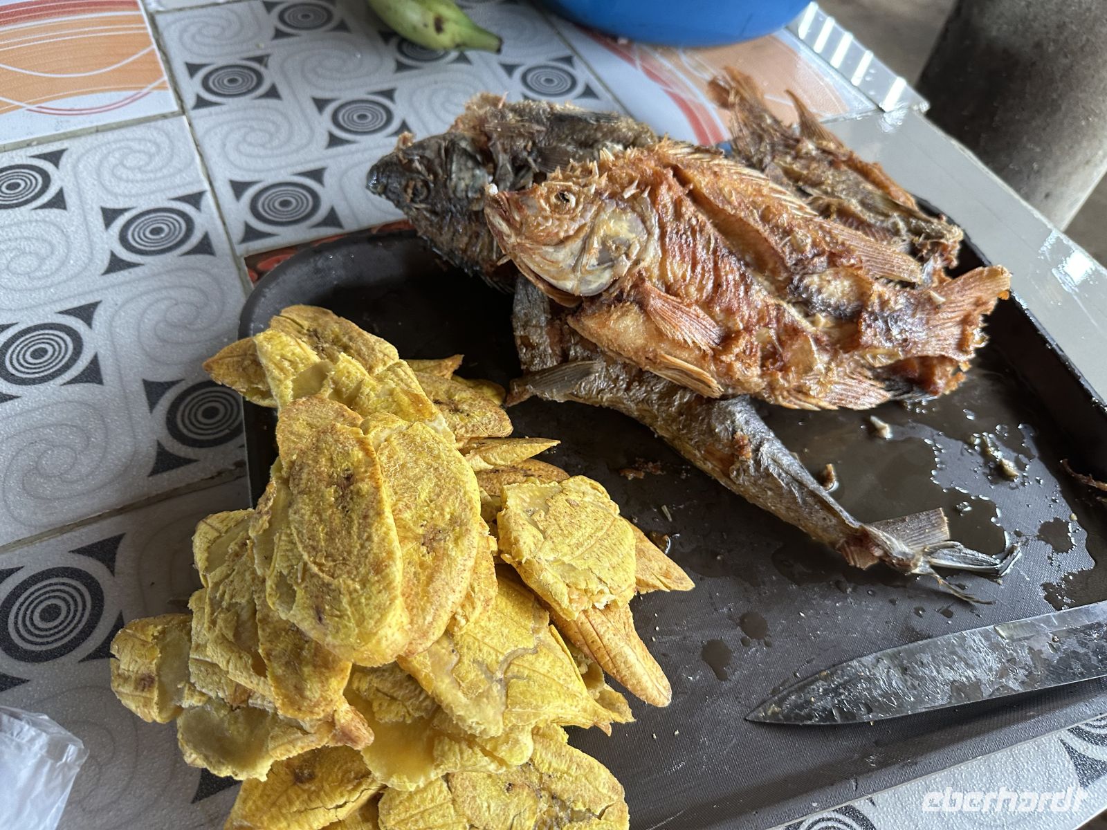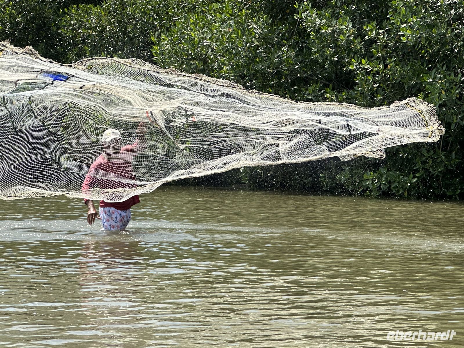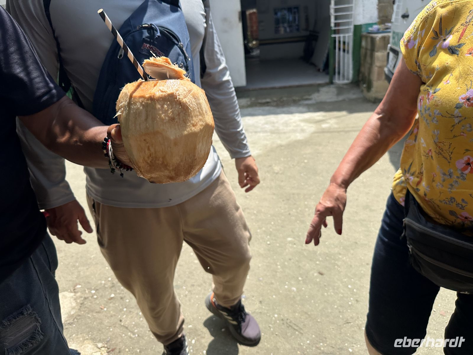 Heute steht wieder ein Eberhardt Ausflug auf dem Programm. Das bedeutet, wir sind nur in unserer Gruppe unterwegs und haben einen privaten Ausflug. Wir frühstücken gemütlich und treffen uns gegen 10 Uhr im Atrium. Das Schiff wird frei gegeben und wir machen uns auf den Weg. Auf Deck 4 werden unsere Kabinenkarten gescannt und damit wird registriert, dass wir von Bord gegangen sind. Der Weg zum Ausgang führt durch da Cruisecenter. Am Eingang zum Cruisecenter steht Angelica, die Vertreterin der Eberhardt Agentur vor Ort, die den Ausflug organisiert hat. Bei ihr ist eine Assistentin, die uns zu unserem Guide Carlos bringen soll. Das ist gut so, denn der Weg durch das Cruisecenter führt vorbei an laut krächzenden farbenfrohen Papageien, die über unsere Köpfe fliegen, rosafarbenen Flamingos und blaubunten Pfauen. Kreuz und quer laufen wir, ehe wir den Ausgang erreichen. Auch von hier ist es noch ein Stück Weg bis uns Carlos begrüßt. Unser Bus gerät in einen unfassbaren Stau, der für Cartagena nicht unüblich sein soll. Irgendwann haben wir uns da durch gequält. In der Zwischenzeit unterhält uns Carlos mit Geschichten aus der Geschichte der Stadt. Er berichtet von Piraten, die zweimal die Stadt ausraubten und zerstörten und vom Bau der Festung, an der wir einen Fotostopp einlegen. Bunt gekleidete Palenquitas versuchen, uns zum Fotografieren zu verleiten, selbstverständlich nicht ohne Obolus. Man muss zugeben, fotogen sind sie schon. Wir fahren weiter und erreichen bald den Strand von La Boquilla. Hier steigen wir in Kanus ein, jeweils vier bis fünf Personen haben Platz. Unsere Bootsführer, die die Kanus staken, sprechen kein Englisch und wir kein Spanisch. Nachdem sie das herausgefunden haben, sorgen sie dafür, dass die Kanus soweit es geht, nebeneinander fahren, damit Carlos für alle seine Erklärungen geben kann. Lautlos gleiten die Kanus durch die engen Kanäle zwischen den Mangroven. Wir erreichen eine Stelle, an der sich ein See gebildet hat. Hier steht ein Fischer, der sein Geld damit verdient, Touristen zu zeigen, wie ein Fischernetz ausgeworfen wird. Auch seine in einer Reuse gefangenen Krebse dürfen wir fotografieren. Freiwillige Spende: 1$ pro Person. Wieder zurück am Ufer werden uns Kokosnüsse serviert, aus denen wir erfrischendes Kokoswasser trinken. In einem der vielen (heute leeren) Strandrestaurants kehren wir zum Mittagessen ein. Alles geht sehr lokal zu, wir dürfen sogar in die Küche schauen, wie der Fisch, den wir gleich verspeisen werden, am offenen Feuer zubereitet wird. Nach dem Mittagessen fahren wir in die Altstadt. In den Stuben einer ehemaligen Kaserne befinden sich heute Souvenirläden, keine Frage, dass wir uns dort eine Weile aufhalten. Anschließend spazieren wir durch die Stadt, bewundern alte Häuser und Kirchen und besuchen ein Kaffeegeschäft. Selbstverständlich gibt es dort den besten Kaffee der Welt, den wir auch kaufen dürfen. Bevor wir zum Schiff zurückkehren, kommen wir an einem Park vorbei, in dem junge Leute mit viel Temperament regionale Tänze aufführen. Der Weg zum Schiff führt erneut durch das Cruisecenter. Ein paar Minuten bleiben auch zum Fotografieren. Sogar ein ganz kleines Faultier entdecken wir noch. An der Gangway tanzt heute die Crew und begrüßt uns lautstark zurück an Bord. Ein erlebnisreicher Tag neigt sich dem Ende zu.