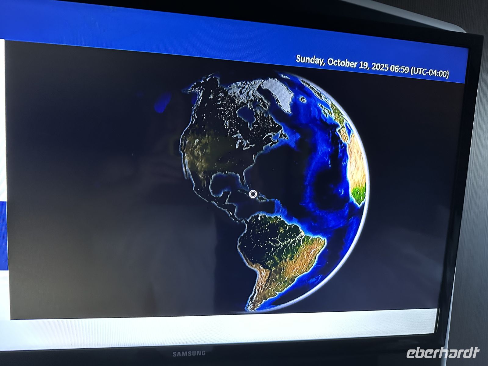 Wieder einmal müssen wir die Zeit umstellen. Damit wir es nicht vergessen, erinnert ein Zettel auf der Kabine daran. Heute ist der letzte Tag an Bord. Ein guter Zeitpunkt unser Bordguthaben zu checken. Vielleicht schaffen sind noch ein paar Dollar übrig, die im Shop ausgegeben werden können. Wir werden daran erinnert, konfiszierte Gegenstände, wie Kerzen, Elektrogeräte oder Alkohol vor dem Verlassen des Schiffes morgen abzuholen.