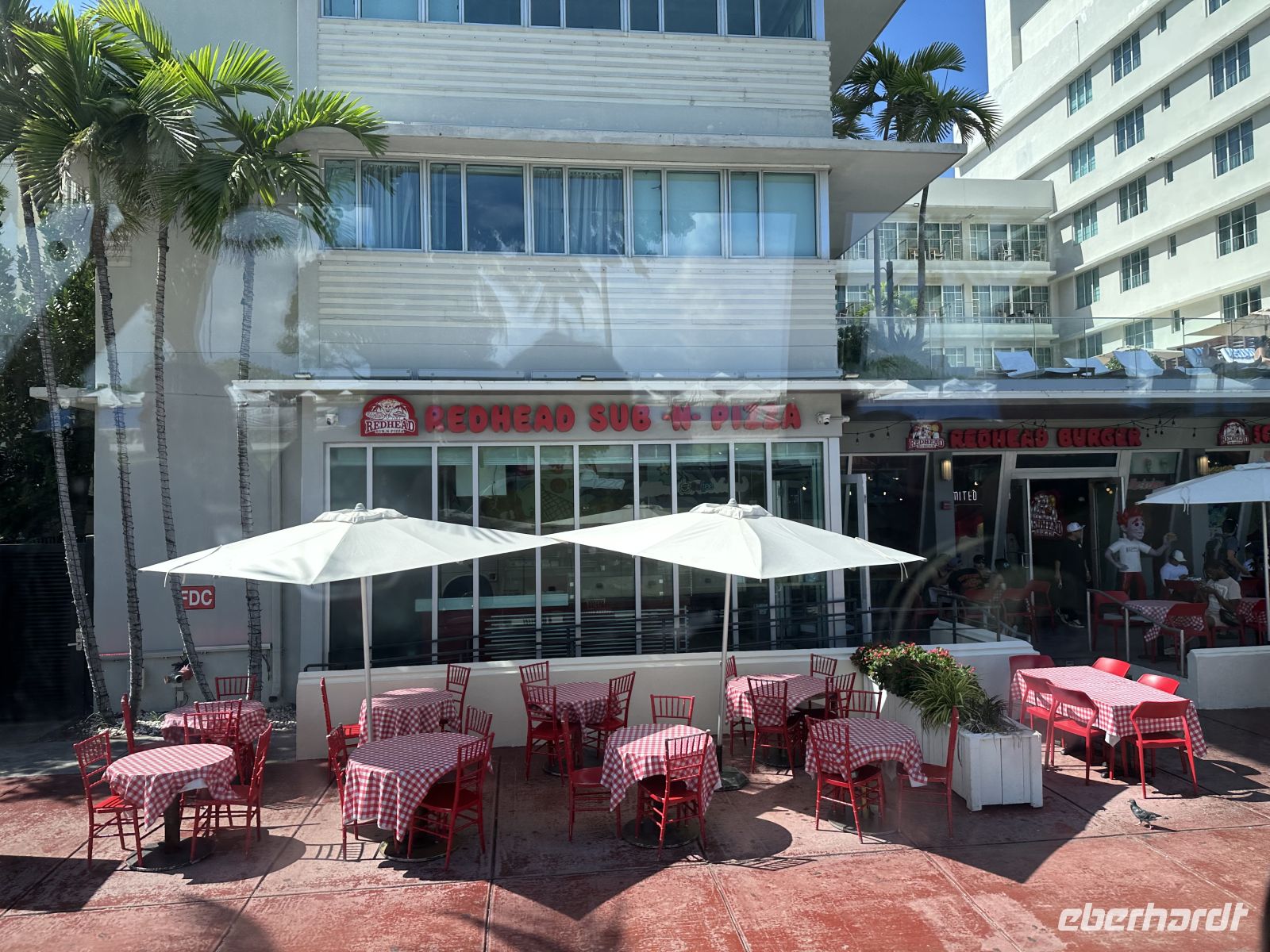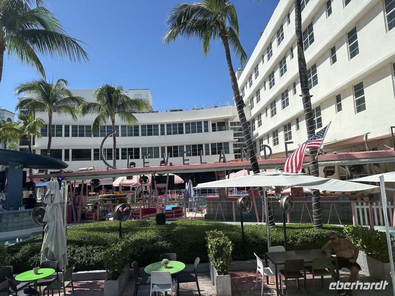 Weiter geht es ins Herz von Miami Downtown. Hier pulsiert das moderne Geschäftsviertel, dominiert von gläsernen Wolkenkratzern. Doch der wahre Höhepunkt wartet im kubanischen Viertel, genauer gesagt in Little Havana. Wir machen einen Spaziergang entlang der Calle Ocho. Im Domino Park sehen wir, wie ältere Damen und Herren hochkonzentriert ihre Dominosteine auf den Tisch knallen lassen – eine faszinierende Szene des Alltags. Auf dem Weg zum Hotel fahren wir zum berühmten Ocean Drive in South Beach. Die Art-Deco-Gebäude leuchten in Pastellfarben unter der warmen Nachmittagssonne. Der Ocean Drive in Miami Beach, insbesondere der Abschnitt zwischen der 5. und 15. Straße, ist das Herz des berühmten Art-Deco-Historic Districts. Die wichtigsten Häuser sind hier weniger einzelne Villen als vielmehr eine Reihe von historischen Boutique-Hotels und Gebäuden, die diesen einzigartigen architektonischen Stil repräsentieren. Die meisten Gebäude stammen aus den 1930er und frühen 1940er Jahren und zeigen den sogenannten Streamline Moderne-Stil, eine Weiterentwicklung des Art Deco. Die Fassaden sind typischerweise in leuchtenden Pastelltönen wie Rosa, Hellblau, Mintgrün und Gelb gehalten. Klare, strenge Linien, abgerundete Ecken und Augenbrauen, horizontale Linien über den Fenstern.Viele Details sind vom Meer und von Ozeandampfern inspiriert (z. B. Bullaugenfenster, Symmetrie, geschwungene Linien). Am Abend werden die architektonischen Linien durch bunte Neonröhren hervorgehoben, was dem Ocean Drive seinen berühmten, filmischen Glanz verleiht. Um Kosten für Aufzüge zu sparen, sind die meisten der historischen Hotels nur drei oder vier Stockwerke hoch.