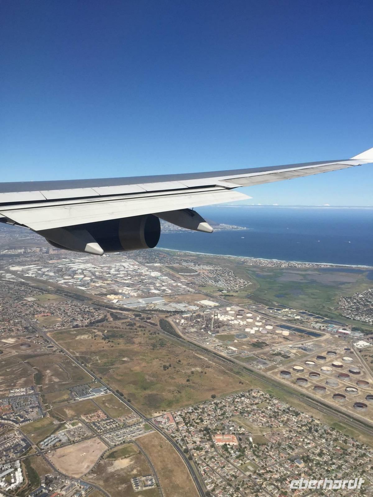 Mit 14 Gästen und mir als Eberhardt-Reisebegleitung treten wir nun erwartungsvoll den ersten Langstreckenflug an, der uns über Nacht nach Kapstadt bringen wird.