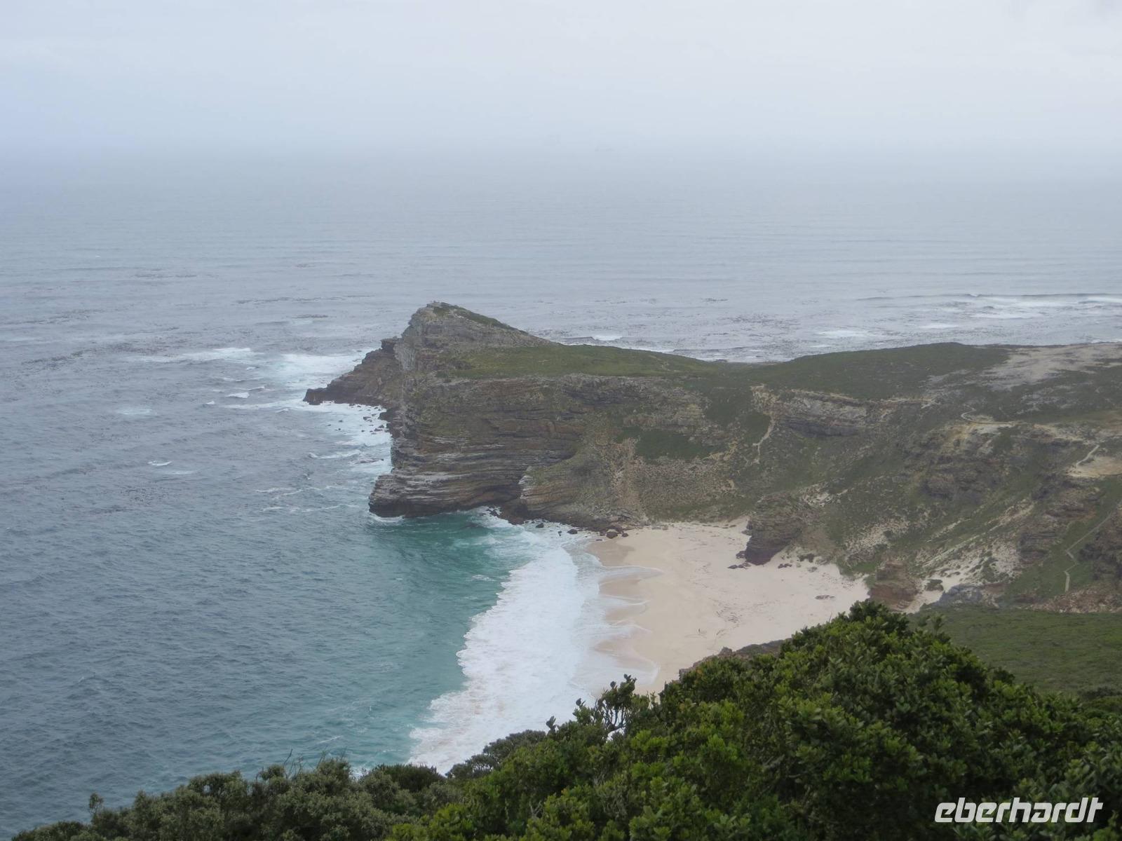 Nach ca. 2 Stunden Fahrt mit einigen Stopps erreichen wir das Cape Point. Alle Gäste fahren mit der Zahnradbahn zum alten Leuchtturm hinauf und unternehmen trotz windigen Nieselwetters hier oben einen kleinen Spaziergang, um den Ausblick hinab auf die berühmte Kapspitze genießen zu können. Wir entdecken außerdem die ersten Proteen aus der Nähe. Anschließend geht es wieder hinab zur Talstation und nach kurzer Busfahrt machen wir den obligatorischen Fotostopp am „Kapschild".