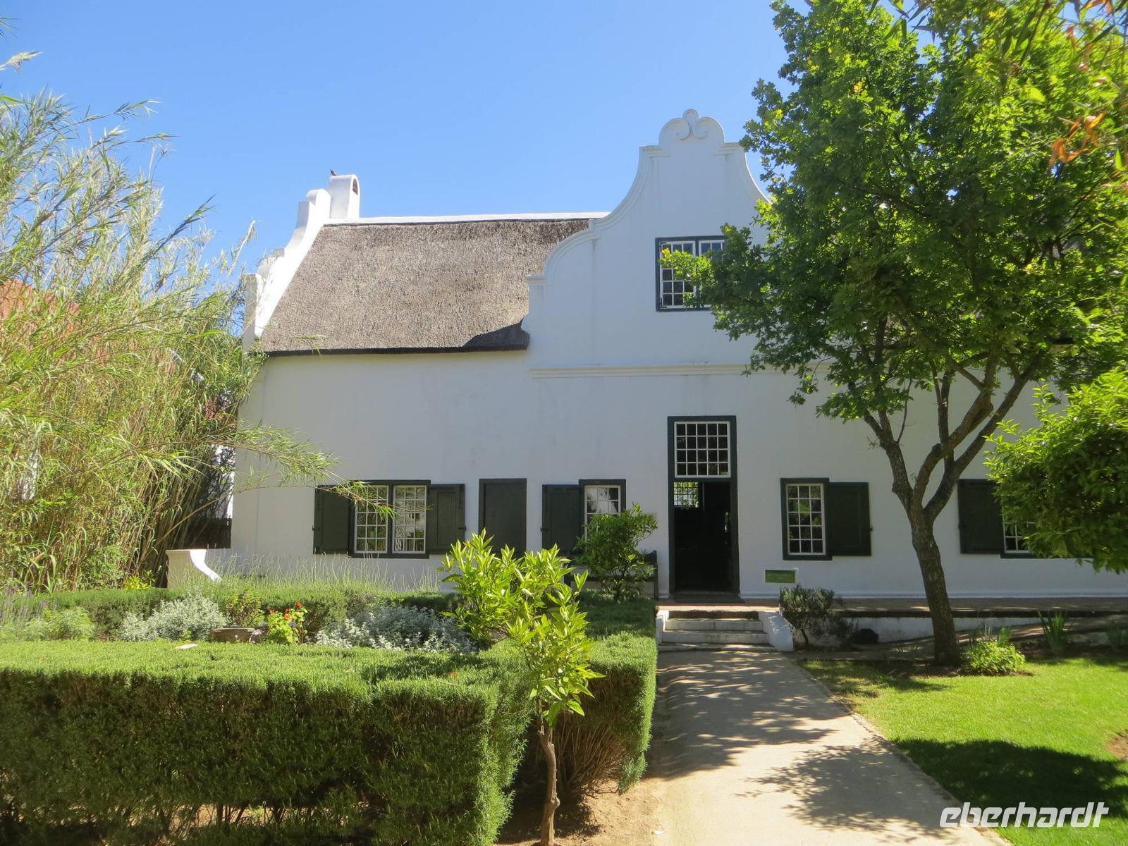 Wir haben etwas Freizeit, bummeln durch die beschaulichen Gassen oder besuchen das aus mehreren Häusern aus verschiedenen Zeitepochen bestehende „Stellenbosch-Museum". Anschließend fahren wir zum „Morgenhof-Weingut". Wir unternehmen eine Führung durch den imposanten Weinkeller, spazieren durch die wunderschön angelegten Außenanlagen und natürlich verkosten wir die guten Weine des Hauses, u.a. einen Pinotage, der nahezu ausschließlich in Südafrika angebaut wird.