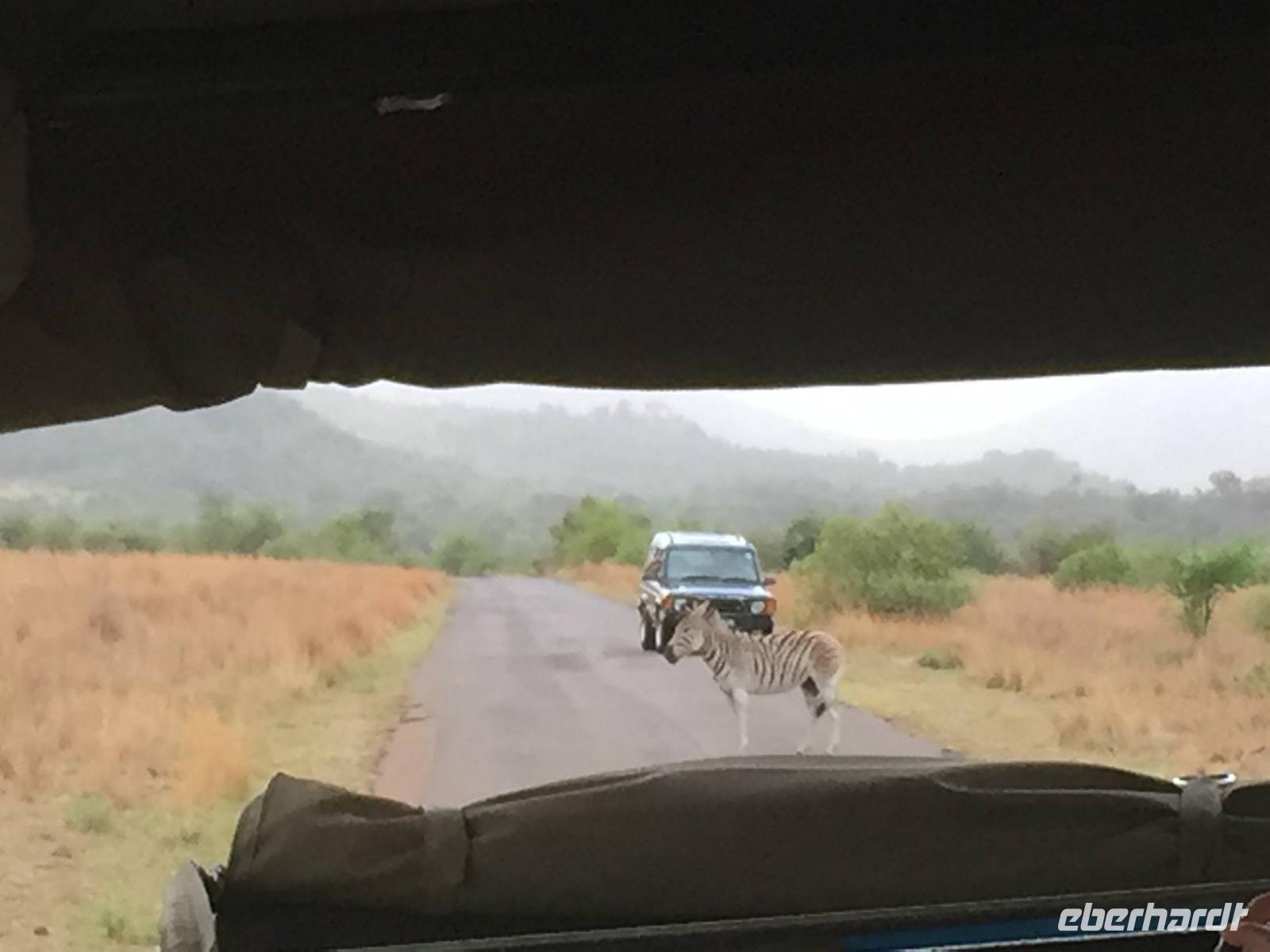 Am späten Nachmittag startet die erste von 3 Pirschfahrten und wir sind schon sehr gespannt, wieviel Glück wir haben werden, alle Tiere der „Big Five" zu entdecken.