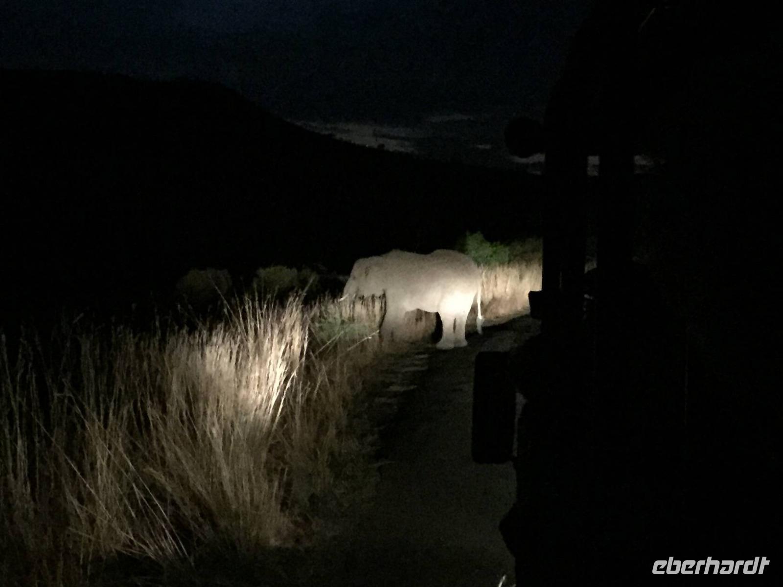 Am Nachmittag kehren wir zurück zur Lodge und ruhen uns etwas aus, bevor unsere dritte Pirschfahrt startet. Elefanten, Giraffen, Gnus, Zebras, Nashörner u.v.m. sehen wir, als Jeremi per Funk zu Löwen gerufen wird. Wir erleben heute Abend tatsächlich, wir mehrerer dieser imposanten Tiere auf Jagd gehen, sich Stück für Stück an ahnungslose Zebras heranpirschen. Das Ganze dauert gefühlte Ewigkeiten, aber ist spannend und für und alles ein beeindruckendes Erlebnis. Und ja, die Löwen sind leer ausgegangen?In der Dunkelheit fahren wir wieder zurück. Elefanten überqueren unsere Straße, wir warten geduldig und machen zum Abschluss noch einmal tolle Fotos. Nach dem umfangreichen Buffet zum Abendessen heißt es dann wieder Koffer packen.
