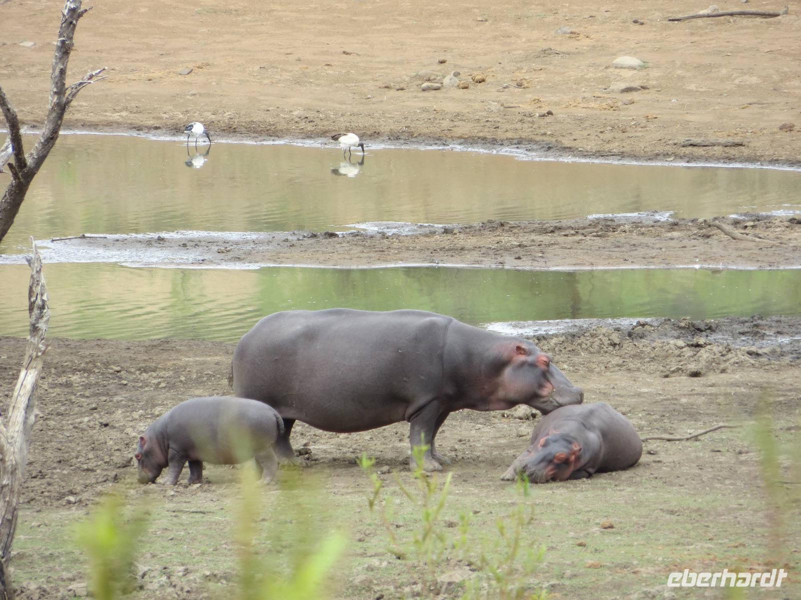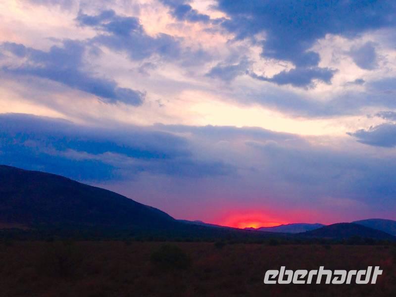 04:30 Uhr werden wir geweckt, trinken einen Kaffee und unsere 2. Safari kann beginnen. Im Morgenlicht begegnet uns wieder die imposante Tierwelt: dieses Mal sehen wir auch Spitz- und Breitmaulnashörner, Flusspferde und als besonderen Höhepunkt (wenn er sich auch gut getarnt hat) entdecken wir einen Geparden!