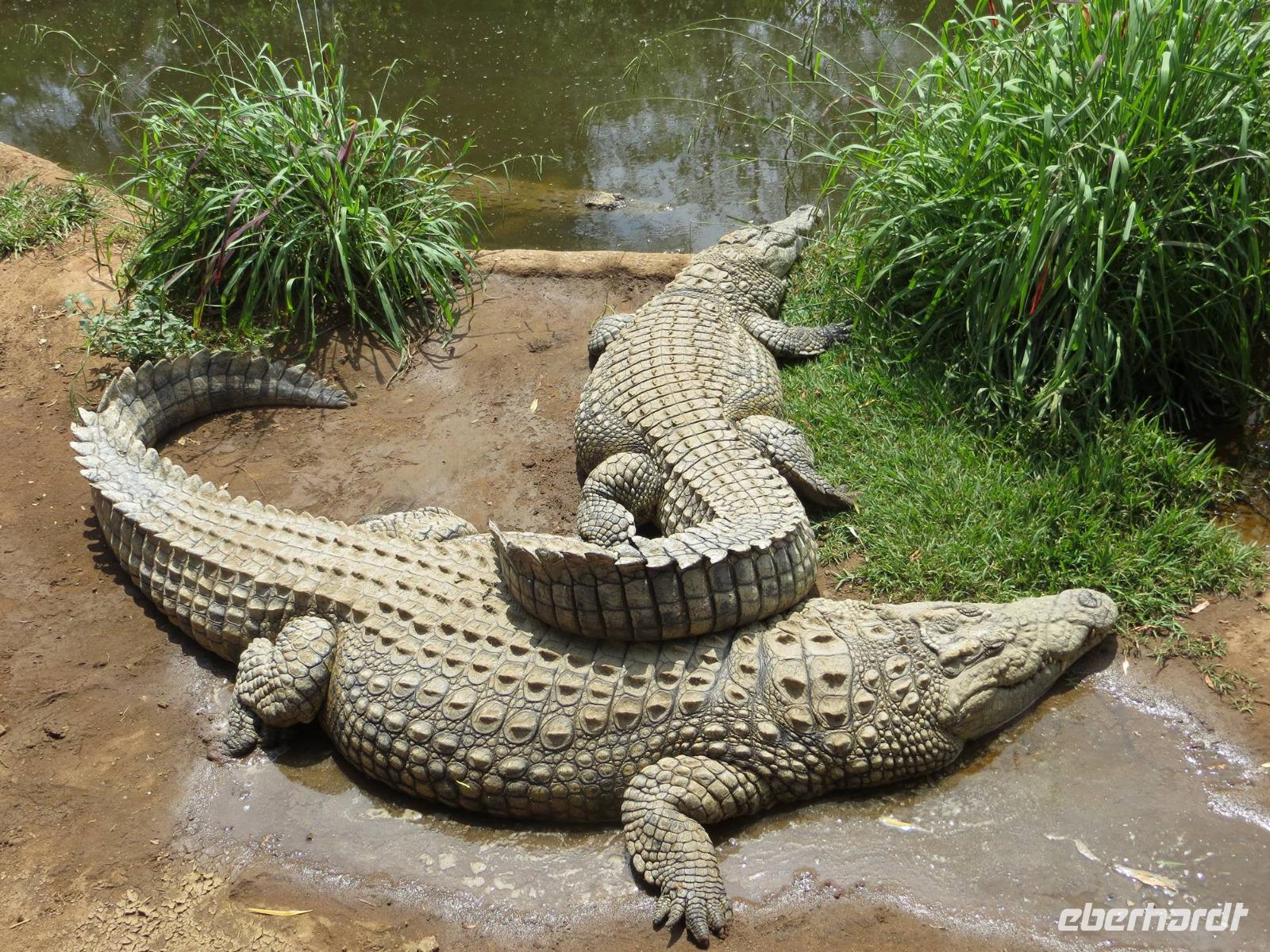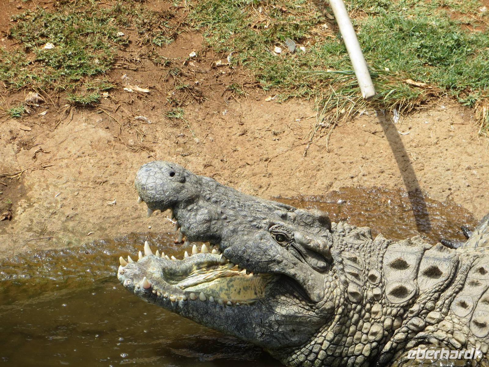 Wir besuchen gemeinsam die Kwena-Krokodilfarm, wo uns ein Führer viel Interessantes zur Aufzucht und Haltung erzählte und wir Krokodile in allen Größen- und Altersstufen erlebten. Am Ende der Besichtigung ließen wir es uns nicht nehmen, Erinnerungsfotos mit einem kleinen Krokodil im Arm zu machen.