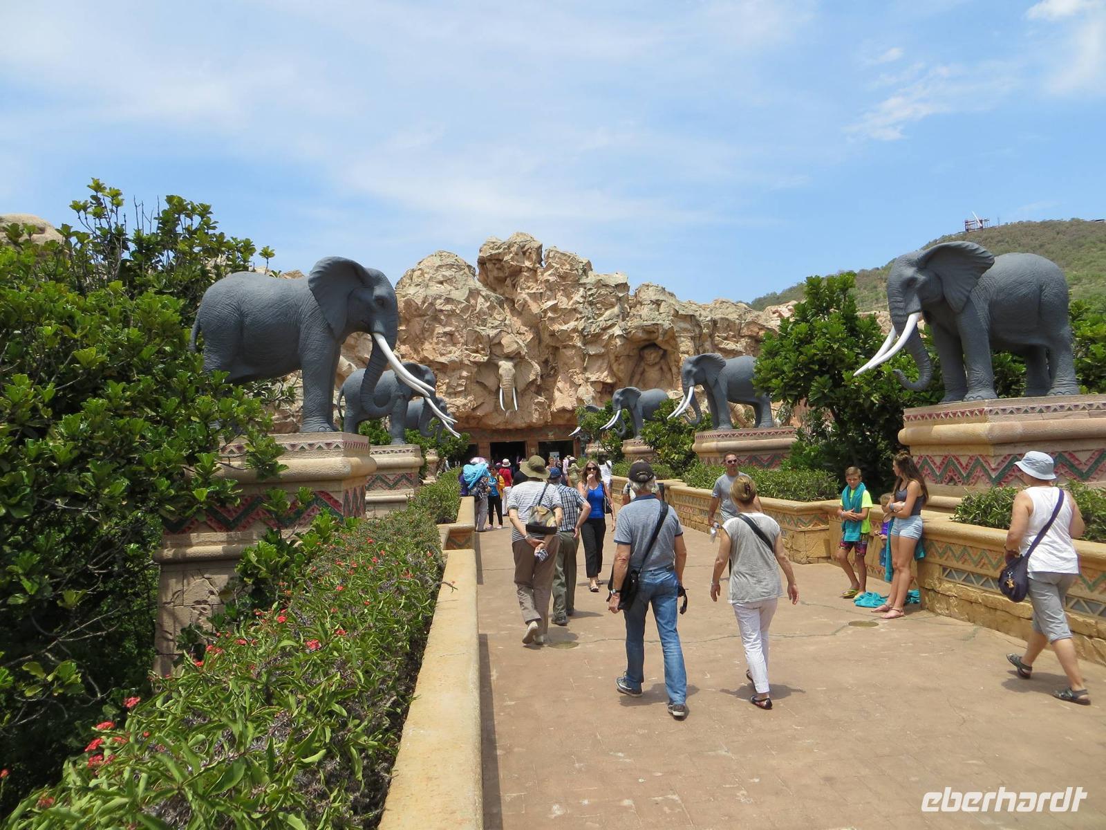 Zurück in der Lodge genießen wir ein ausgiebiges Frühstück. Anschließend unternehmen wir einen Ausflug ins Freizeit und Vergnügungsresort Sun City. Größer konnte t. der Kontrast zum morgendlichen Programm nicht sein und das nur eine halbe Fahrtstunde entfernt.