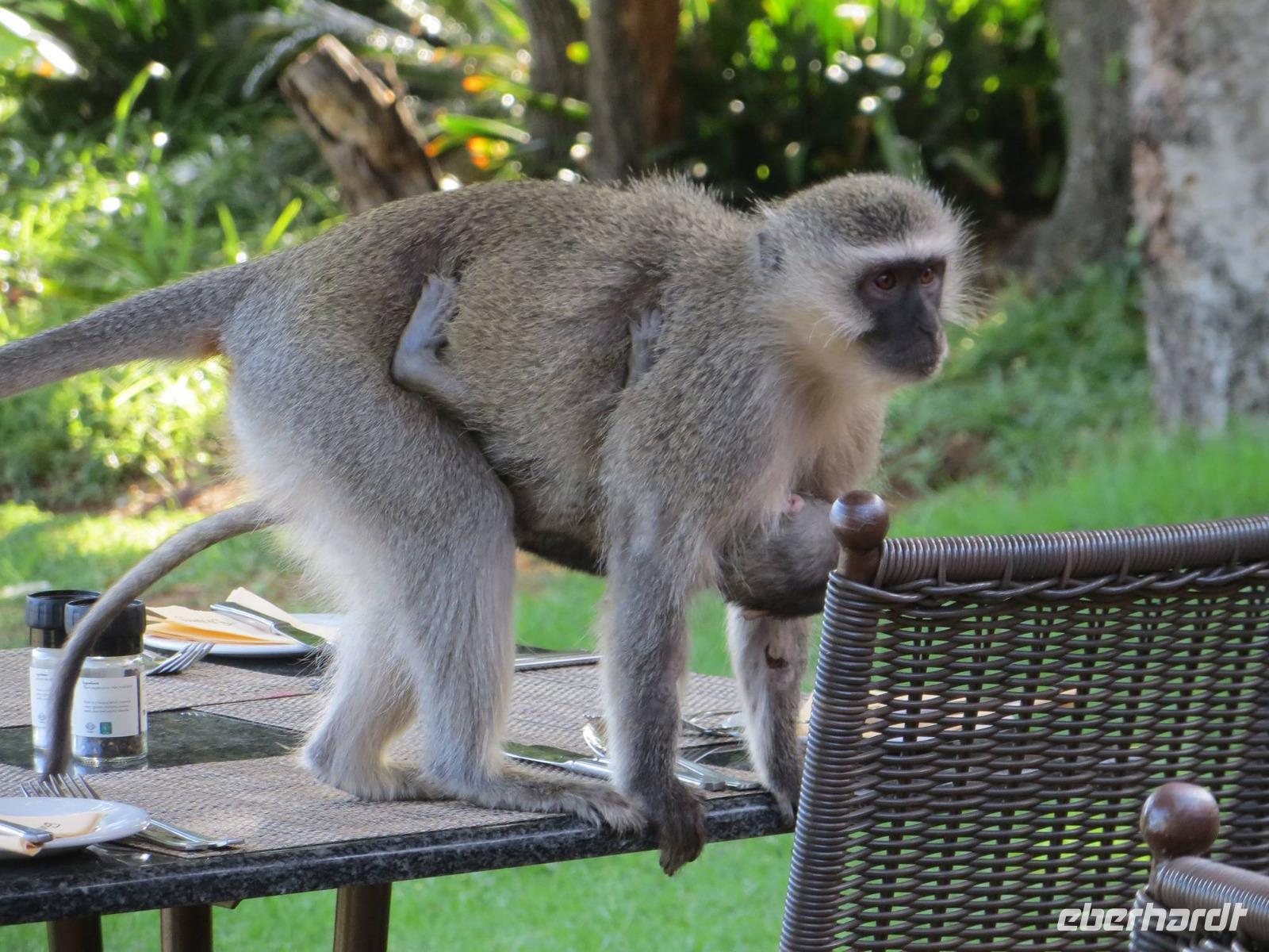 Nach dem Check In und der ersehnten Dusche fahren wir zum Moyo Restaurant am gegenüberliegenden Blouberg Strand. Wir genossen ein afrikanisches Abendessen mit verschiedenen Köstlichkeiten. So probierten wir auch „Mopane Worms" - also gegrillte Würmer und eine Art Ragout Fin mit Krokodilfleisch. Die Restaurantmitarbeiter brachten Christine ein musikalisches Geburtstagsständchen, das uns viel Spaß bereitete ?
