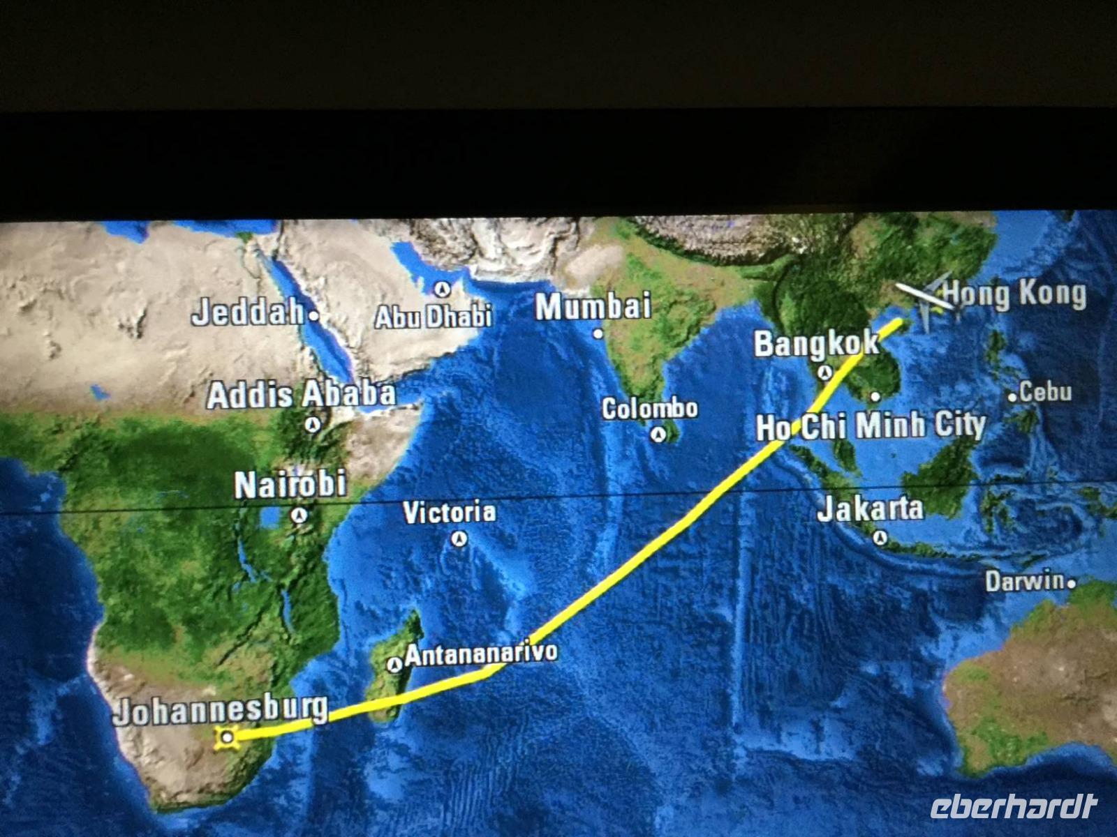 Nach dem Frühstück fahren wir zurück nach Johannesburg, verabschieden und von Heinz und von Afrika im Ganzen. Vor uns liegen 12,5 Stunden Flug nach Hongkong. Diese Metropole in Asien ist unsere nächste Weltreisestation.