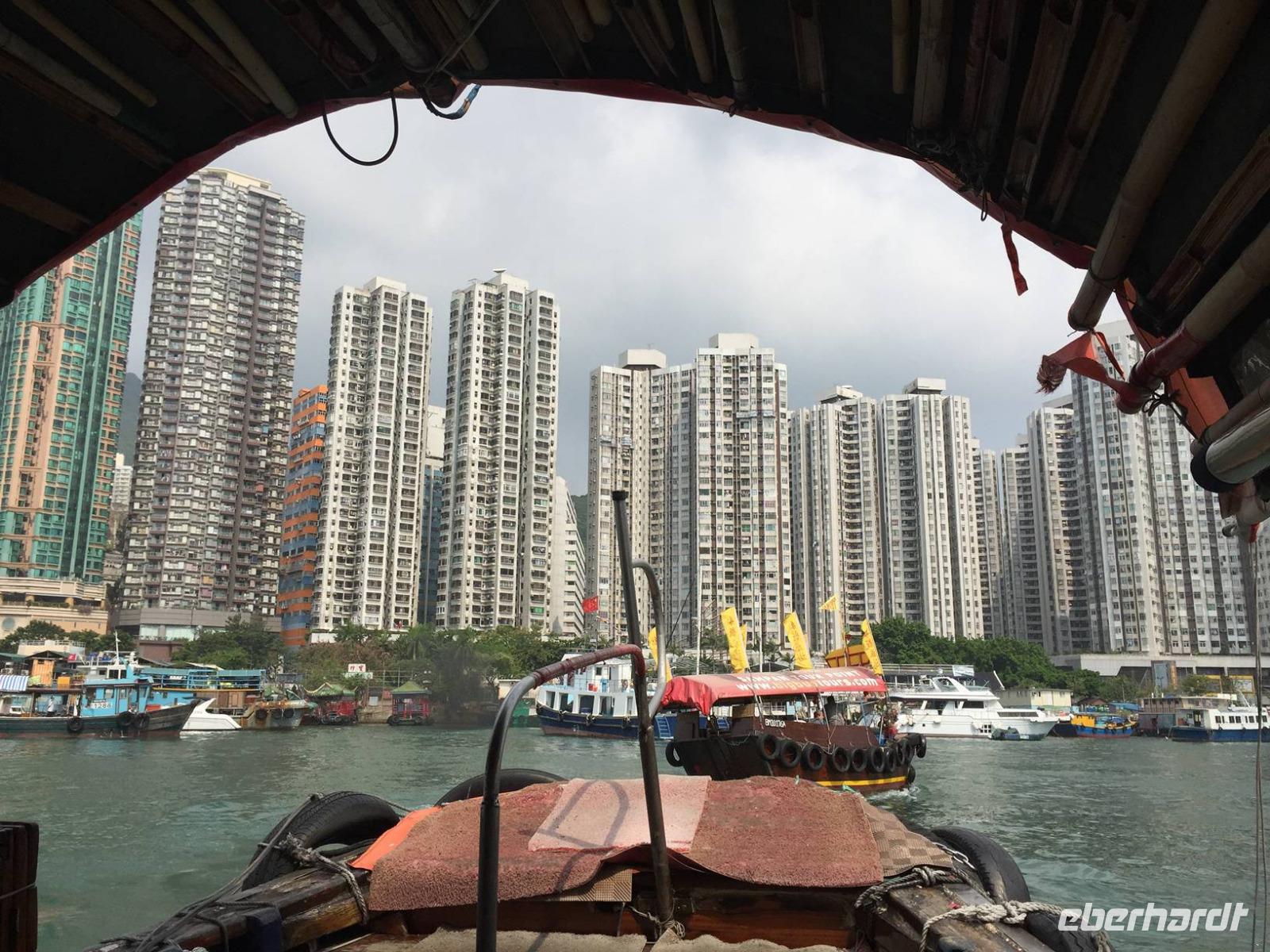 Anschließend fahren wir nach Aberdeen und unternehmen eine lustige Bootsfahrt. Größer können die Kontraste nicht sein: am Ufer Wolkenkratzer neben Wolkenkratzer, auf dem Wasser: alte Hausboote, kleine Fischerboote und protzige Yachten.