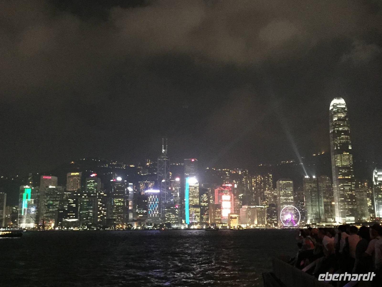 Zum Abendessen kosteten wir in einem Restaurant am Victoria Harbour die hiesige chinesische Küche und standen pünktlich um 20:00 Uhr am Ufer um die
