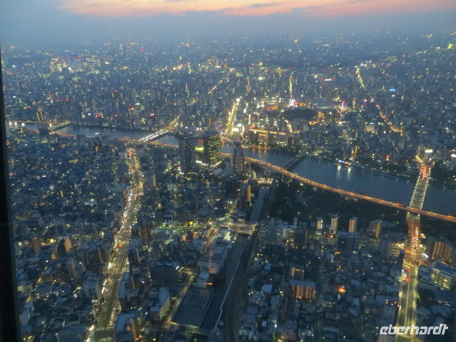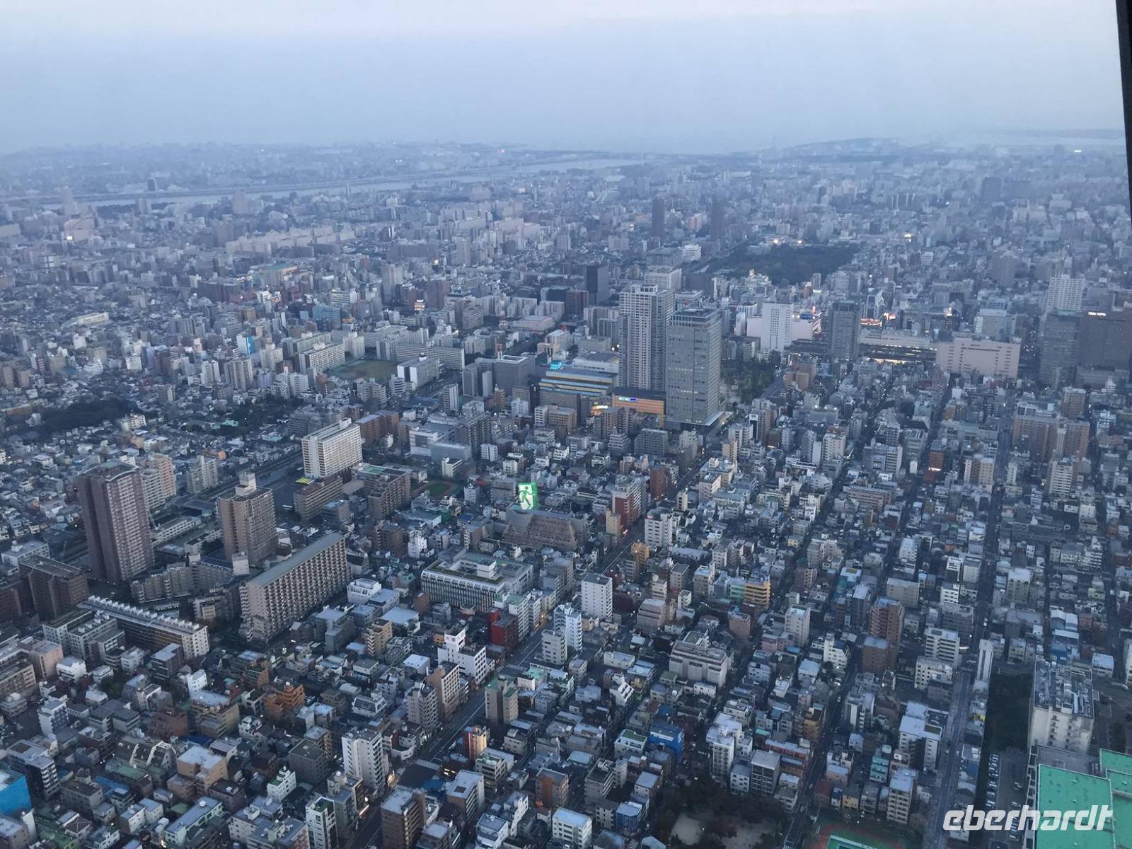 Am Vormittag starten wir unser ganztägiges Tokio-Programm. Unser erstes Ziel ist der Meji-Schrein. Wir spazieren durch die weitläufige Parkanlage, erfahren von Stan viel Interessantes zum Kaiserhaus, bewundern die Tempel und schauen bei einer traditionellen Trauung zu. Dann geht es weiter zum „Happoen Garten". Hier lernen wir eine traditionelle Teezeremonie kennen. Wir genießen wir einen Matcha-Tee, der mit einem Bambusbesen ön schaumig geschlagen wird. Anschließend spazieren wir durch die wunderschön angelegten Garten mit vielen Bonsai und einem großen Teich mit unzähligen Kois. Im Kontrast dazu - unser nächster Stopp: die Einkaufsmeile im Stadtteil Ginza mit viele Edelboutiquen und Luxus-Kaufhäusern. Nach einer Mittagspause wird es wieder traditionell, denn wir besichtigen die Anlagen des Kannon-Tempels. Das buddhistische Heiligtum ist der Göttin der Barmherzigkeit gewidmet. Zum Abschluss fahren wir zum Tokioer Fernsehturm „Sky Tree". Mit 634 m ist es derzeit das zweithöchste freistehende Gebäude der Welt. Mit dem Aufzug gelangen wir auf die Aussichtsetage in 350 m Höhe. Wir genießen von hier den Sonnenuntergang und anschließend das bunt funkelnde Häusermeer Tokios.