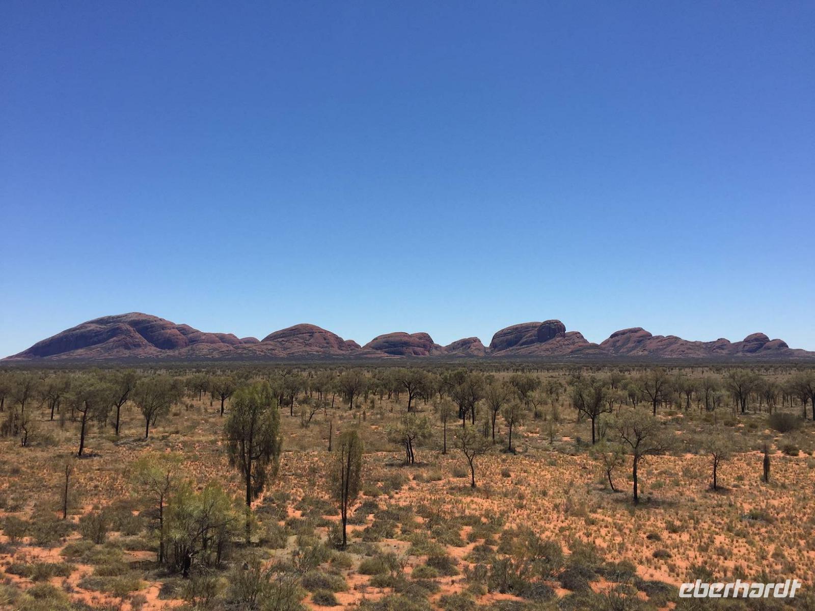 Anschließend gelangen wir mit dem Bus zu einigen Aussichtspunkten von denen wir die beeindruckenden Formationen der Kata Tjuta gut fotografieren können.